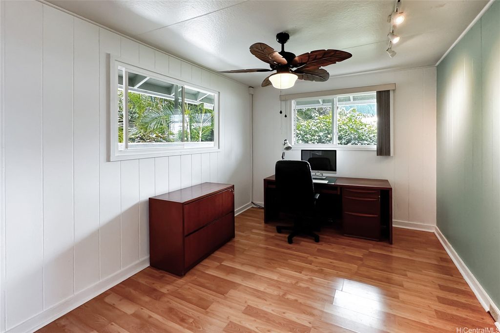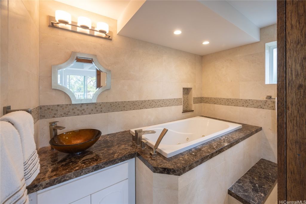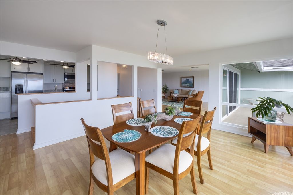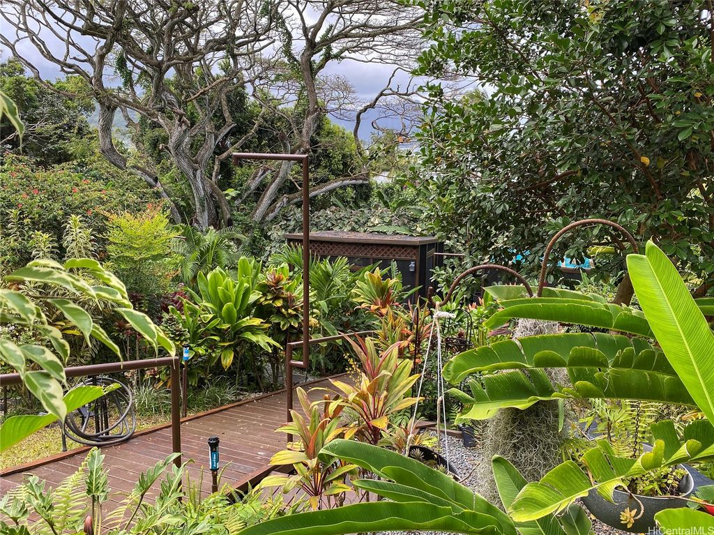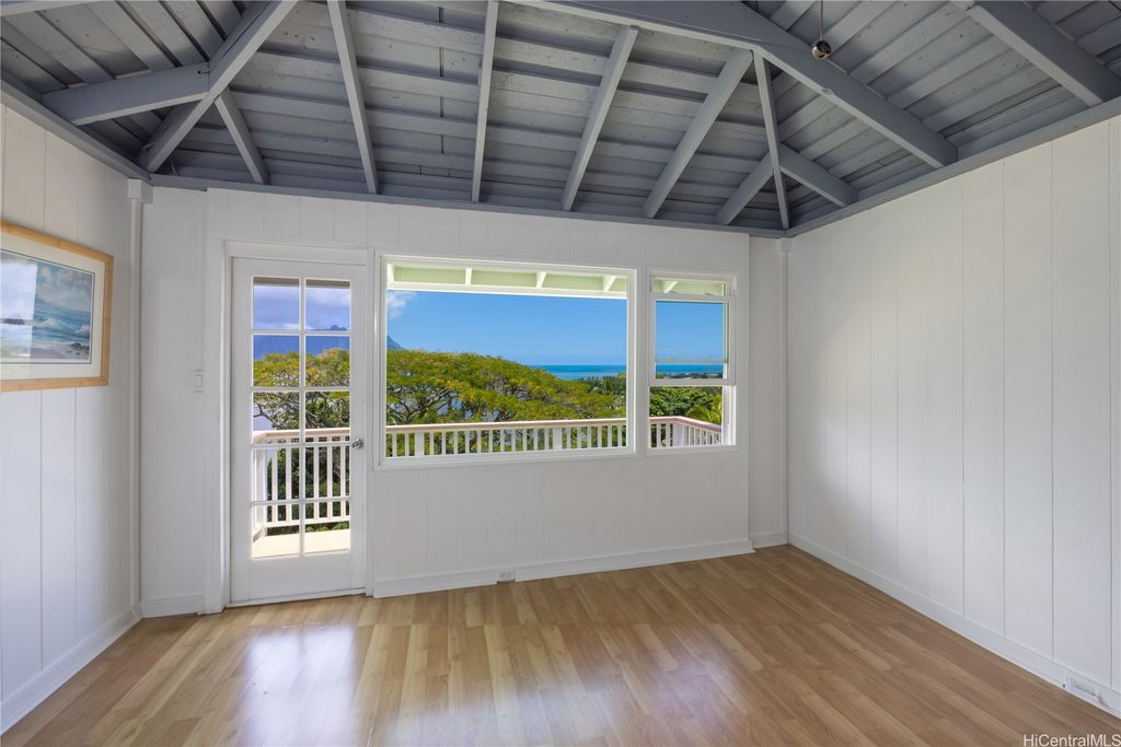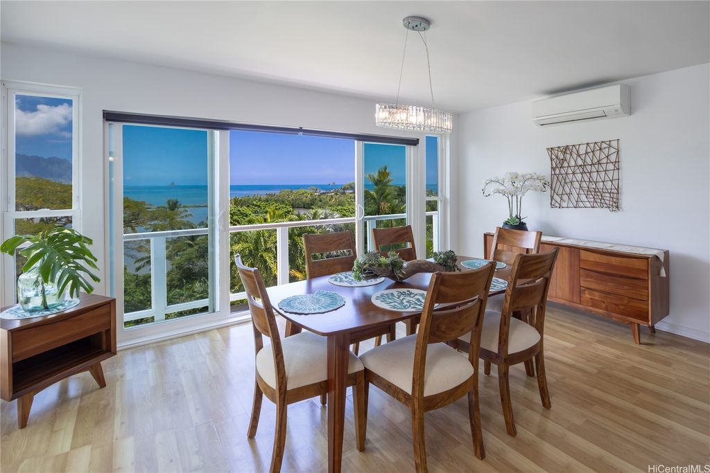 Welcome to beautiful Lulani, a quiet loop above the ocean, where panoramic ocean and mountain views (no wires!) are part of daily life. This property has a special rim lot location and charming setting overlooking one of the few remaining ancient Hawaiian fishponds on Oahu. Rare level entry (no stairs!) into the main living space which opens through walls of glass to wide decks and postcard views. This floor has large living/dining area, kitchen, 2 bedrooms (possible 3rd) and 2 baths. The primary ensuite bedroom opens to private ocean view lanai. Wide interior stairs lead to the lower level containing 2 bedrooms, 2 baths, living area and large deck. Ideal for multi-generation living. On this level, a second primary suite also opens to an ocean view lanai. Professionally landscaped, the backyard is a stunning botanical garden complete with walkways, railings, waterfall, screened high ceilinged gazebo, and gardening shed. Recent renovation of kitchen, updated electrical service, two of the 4 baths, windows and decks. Just 4 miles to major shopping centers, restaurants and stores in Kaneohe town.