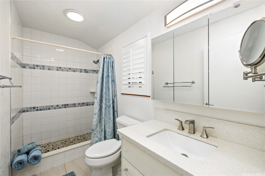 Situated in a prime location, this freshly painted home is just a short distance from the main street, with easy access to charming cafes, great restaurants, and essential shops. Despite the convenience, the home offers a peaceful and private environment with no through-traffic and minimal outside noise. The remodeled kitchen provides ample cabinet space and a spacious layout, while the remodeled bathrooms add a modern touch. The house enjoys a nice breeze throughout the day, often making air conditioning unnecessary. It features two convenient laundry rooms on both floors and an extra room downstairs perfect for a home theater or entertainment space. Solar panels and backup batteries help keep electricity costs low, adding to the home's energy efficiency. Beautiful wooden shutters are featured throughout the home, offering both style and functionality. From the front porch, enjoy breathtaking sunrises and sunsets overlooking Diamond Head Crater. This combination of convenience, tranquility, and thoughtful upgrades makes it an ideal place to call home.