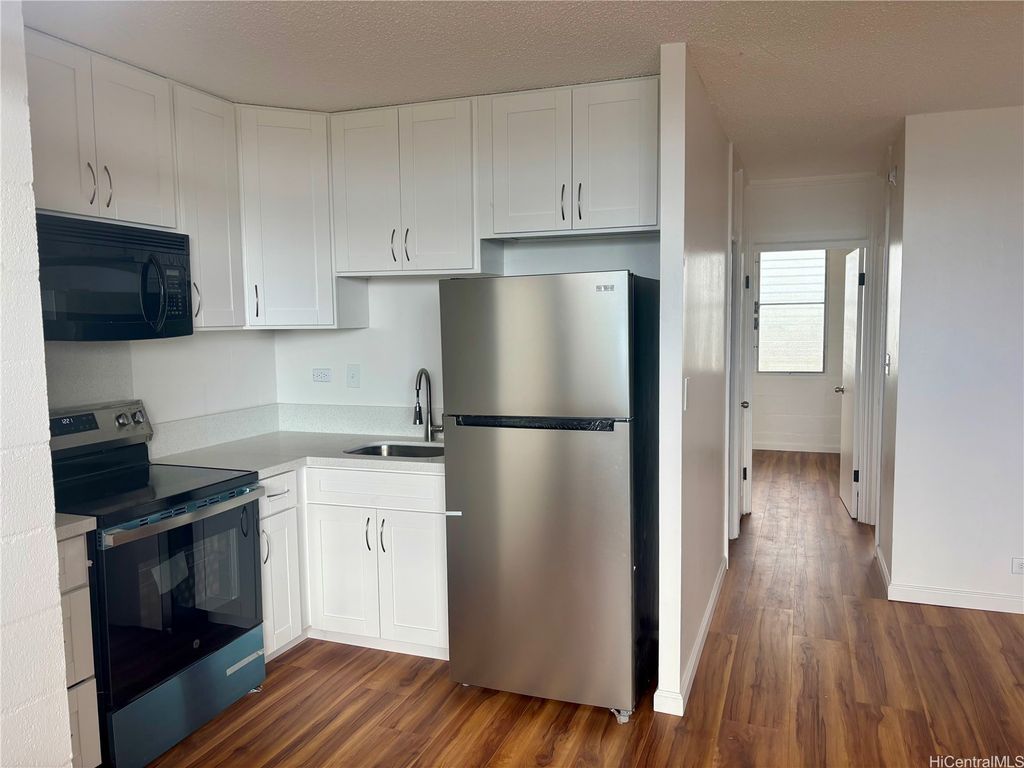 Fully remodeled and ready to move into your new home here at Plantation View Hale. Unit is located on the diamond head side of the building featuring its views. The modern 2 bedroom, 1 bathroom unit feature new flooring, upgraded kitchen with open layout, newly remodeled bathroom, new ceiling fans, window AC in living room and freshly painted throughout. Unit comes with 1 assigned parking stall and offers 3 guest parking and ample street parking. Conveniently located near bus stops, grocery stores, schools and freeway.