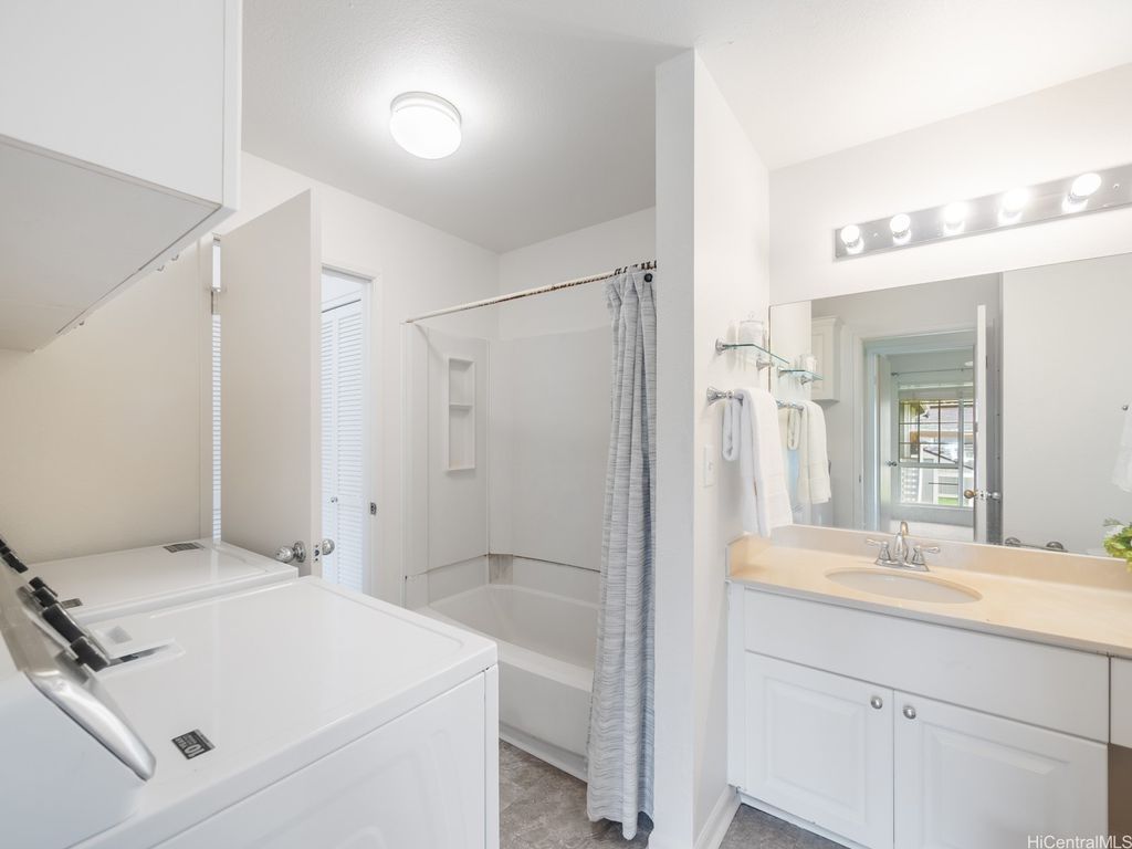 This beautifully updated 2-bedroom, 1-bathroom townhome is located on the second floor and offers comfort, convenience, and value. Enjoy cooking in your newly renovated kitchen featuring sleek quartz countertops and brand-new cabinets. In-unit washer and dryer, and a covered parking stall for your convenience. Take advantage of the community amenities including a swimming pool, BBQ area, and guest parking. Ideally situated near shopping, dining, and parks.