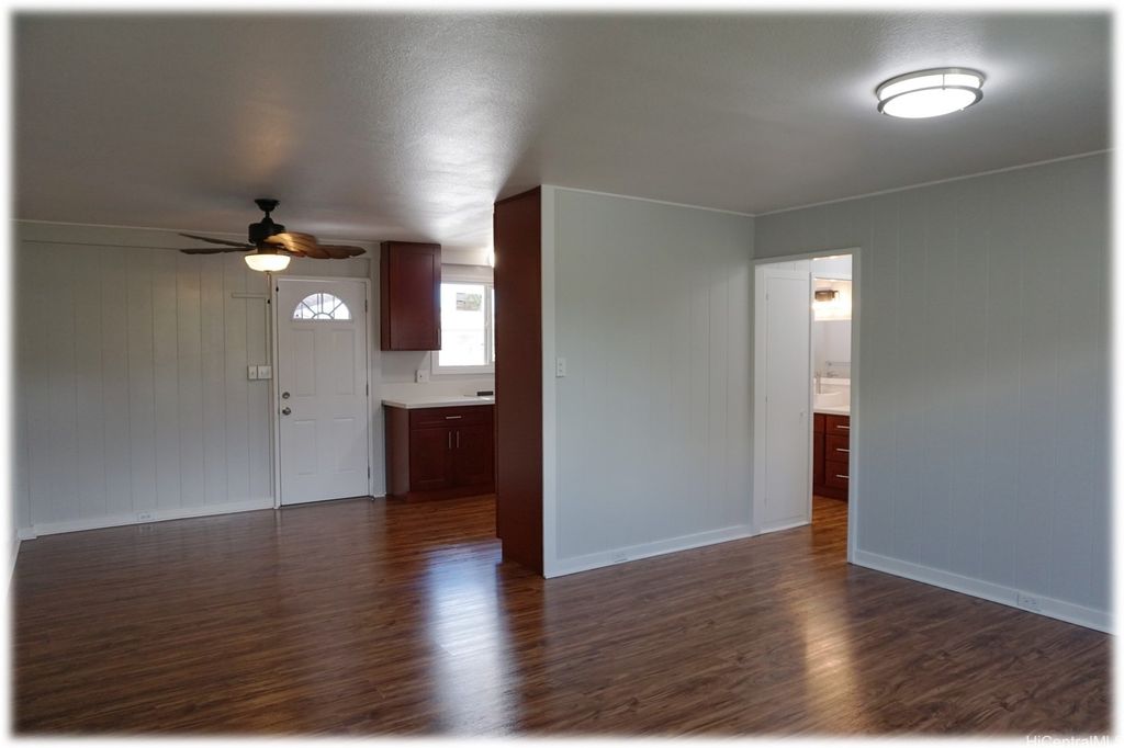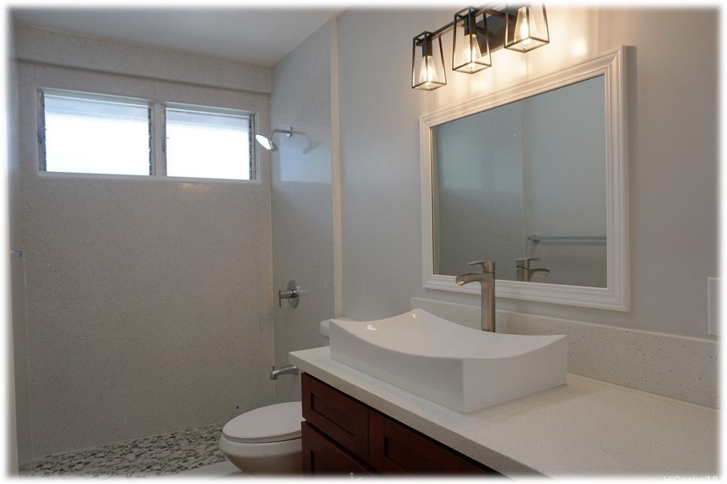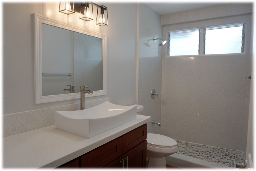Fully renovated with new flooring, kitchen cabinets, appliances, bathroom vanities, showers, windows, paint, etc.! First floor features 3 bedrooms, 2 full baths, kitchen, dining room, living room and bonus room with large walk-in storage closet. Second floor features a large multipurpose room that can be used as a bedroom with a private lanai, closet and half bath. 1-car carport with space for 3 additional cars. Covered full size washer and dryer located on the side of the house with easy access directly from the dining room or bonus room. No pets and no smoking. Available after 8/31/2025. Please email derek.lau@reshawaii.com with any questions and for all showing requests.