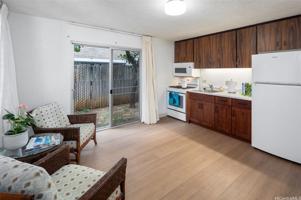 Conveniently located in Makiki, this 1-bedroom, 1-bathroom ground-floor unit offers 429 sq. ft. of interior living space, plus a large, gated, private outdoor area perfect for gardening, entertaining, or extending your indoor-outdoor lifestyle. Access to your private yard is available from either your living room sliding door or the primary bedroom. The functional layout includes a complete kitchen, washer/dryer, and easy ground-floor access. New vinyl floors and carpet have just been installed, along with a new water heater. The sale includes one covered parking stall. Located near Downtown, Ward, and Ala Moana, this property offers both convenience and comfort. An excellent opportunity for investors or first-time buyers.