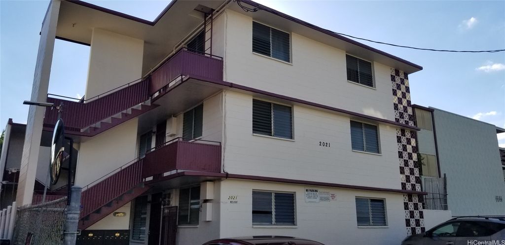 HUGE $100,000 PRICE REDUCTION FOR QUICK SALE! $14,400/month current scheduled Income. 9 (large approx. 640sf) 2-bedroom units with 5 parking stalls. Most units are fully renovated (1 unit is vacant and needs renovation). Opportunity exists to raise rents on remaining under-market units and charge back for UTILITIES. NEW $70,000 ROOF/ROOF HATCH (installed 11-2022 by Kapili Construction). Spall Repairs completed and NEW water main shutoff valve installed in 2022. Residential Property Tax Rate. Self-Managed. All units have lanai with washer hookups and sinks. Ground Floor units have fenced-in backyards. Recently installed Hawaiian Tel FIBER OPTIC lines in each unit. Owner receives 10% share of income from subscribers.
