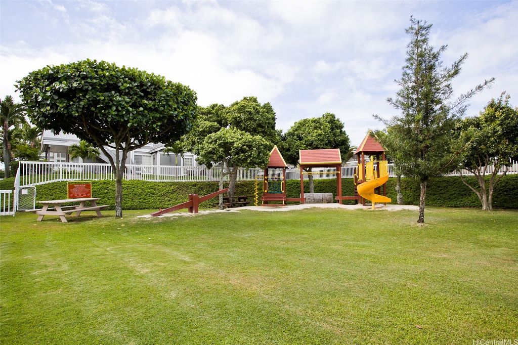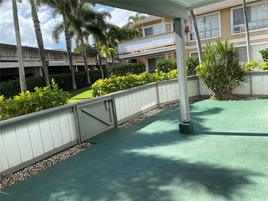 This most desirable 2-bedroom 2 bath and 2 parking stalls on the ground floor corner end unit. Come with a Large courtyard, quiet from the main road and freeway noise. Great amenities include an Exercise room, Swimming Pool, Hot Tub, BBQ, a Sandy Volleyball and Children Playground. Super convenient, close to everything. Navy Exchange Commissary., Military bases Camp Smith, Pearl Harbor Hickam and Tripper Medical Center. 24 hours security. Was renovated in 2009. Still in excellent condition. Sold "AS IS" Good investment with great income. Tenant occupies 48 hours' notice to show,