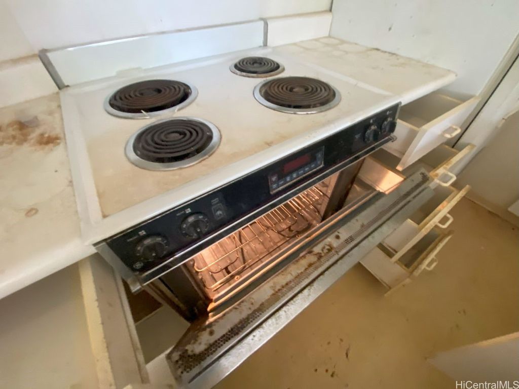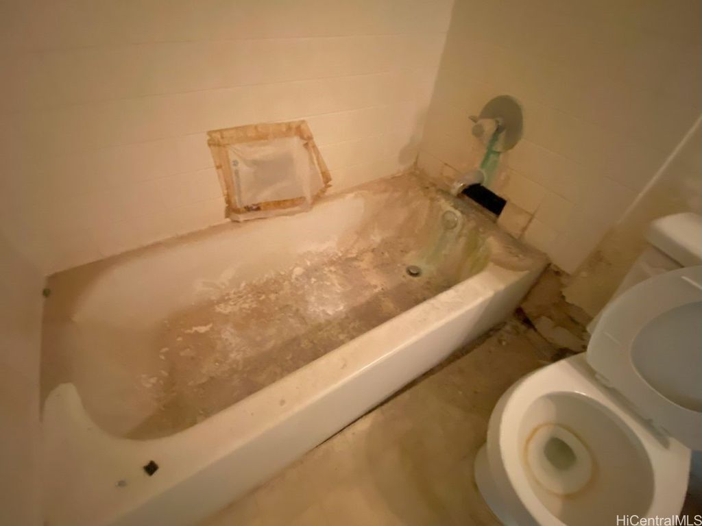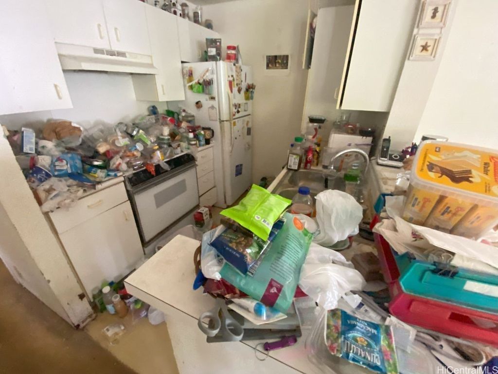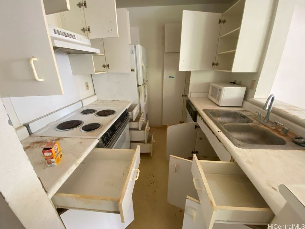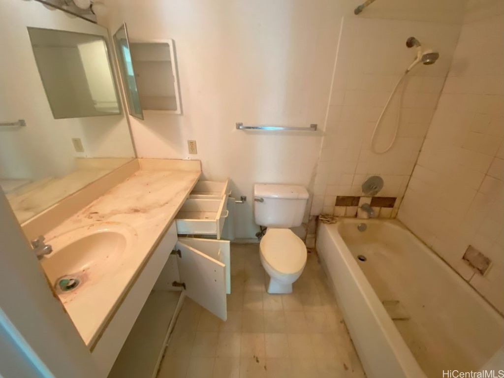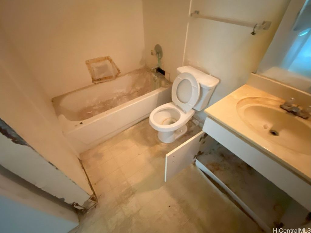 Investor Special! Rare Mililani Launani Valley 2B/2B/2P unit in complete fixer-up condition. Low starting price and accepting final and best bids through mid August. Stacked washer Ok, all other appliances bad, both tubs bad, flooring bad, walls bad, cabinets bad. Vacant with lockbox. Cash only. Serious inquiries only.