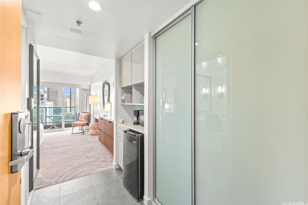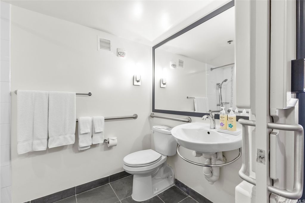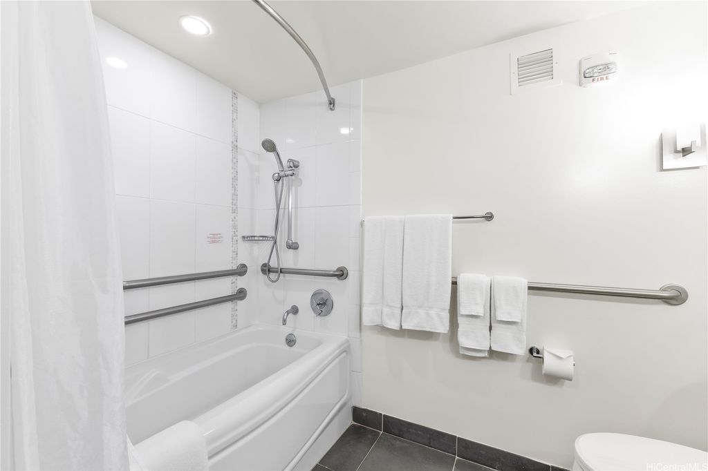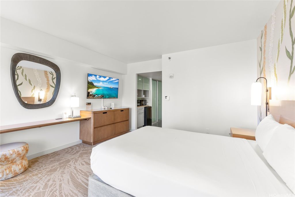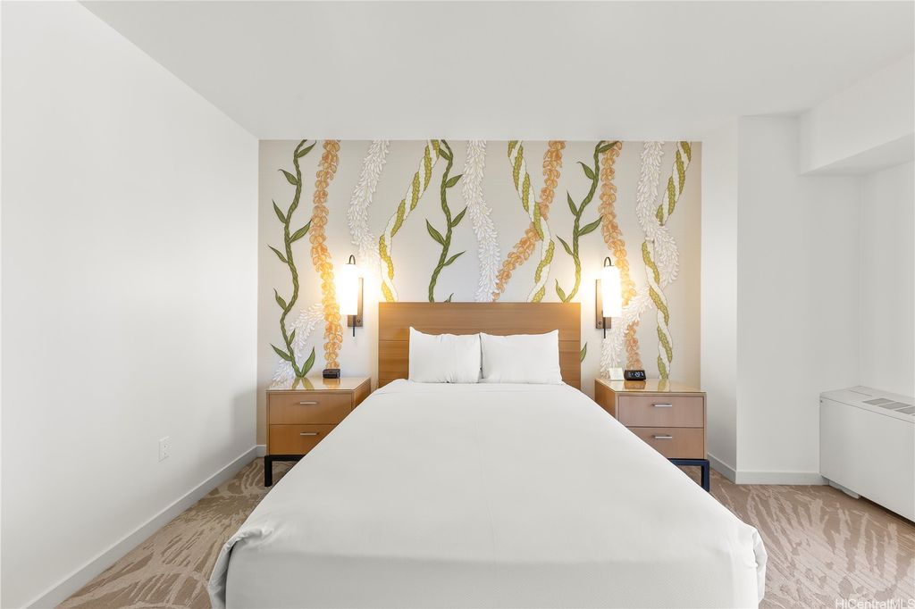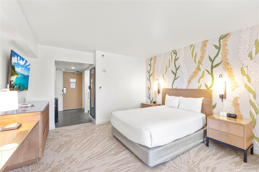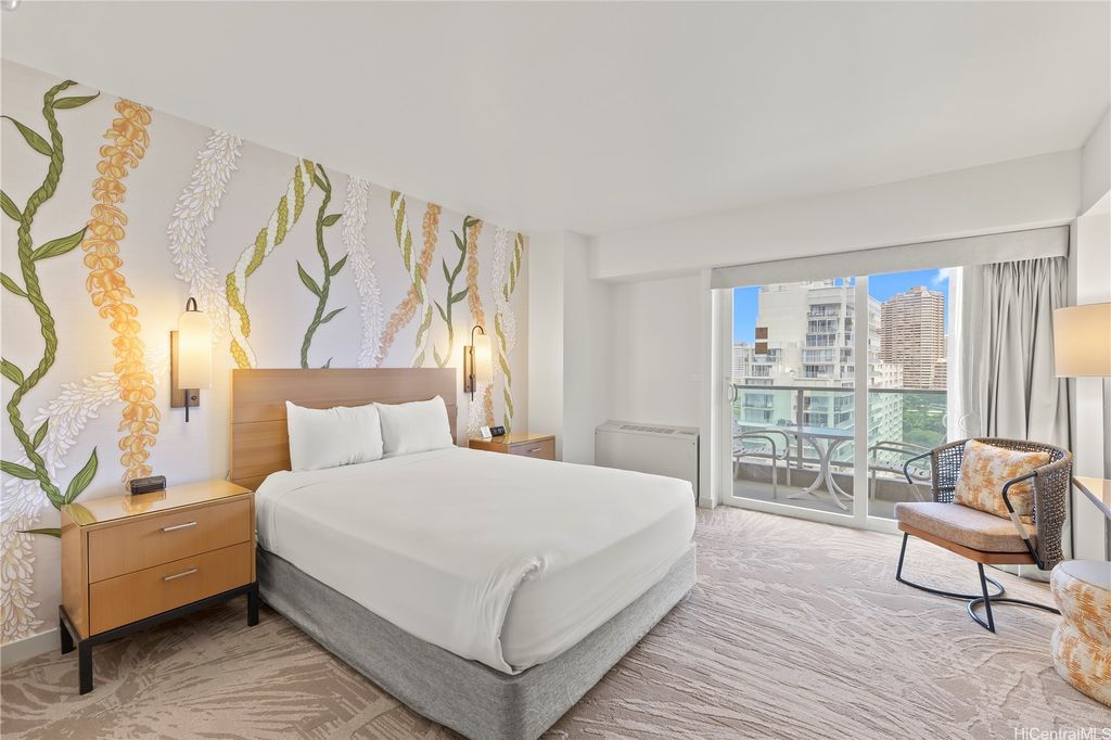 Stylish and newly renovated, this ADA-accessible Waikiki Tower studio at Ala Moana Hotel showcases modern finishes and a touch of island charm with its locally inspired accent wall. The private lanai offers captivating city and ocean views, while the interior includes a queen bed, full bath, mini fridge, and microwave. Conveniently located on the same floor as laundry and vending machines. Ideal for a personal getaway or vacation rental, with resort-style amenities including a pool, sauna, fitness center, concierge, and more. Enjoy direct access to Ala Moana Center and just minutes from Waikiki's beaches, dining, and entertainment.