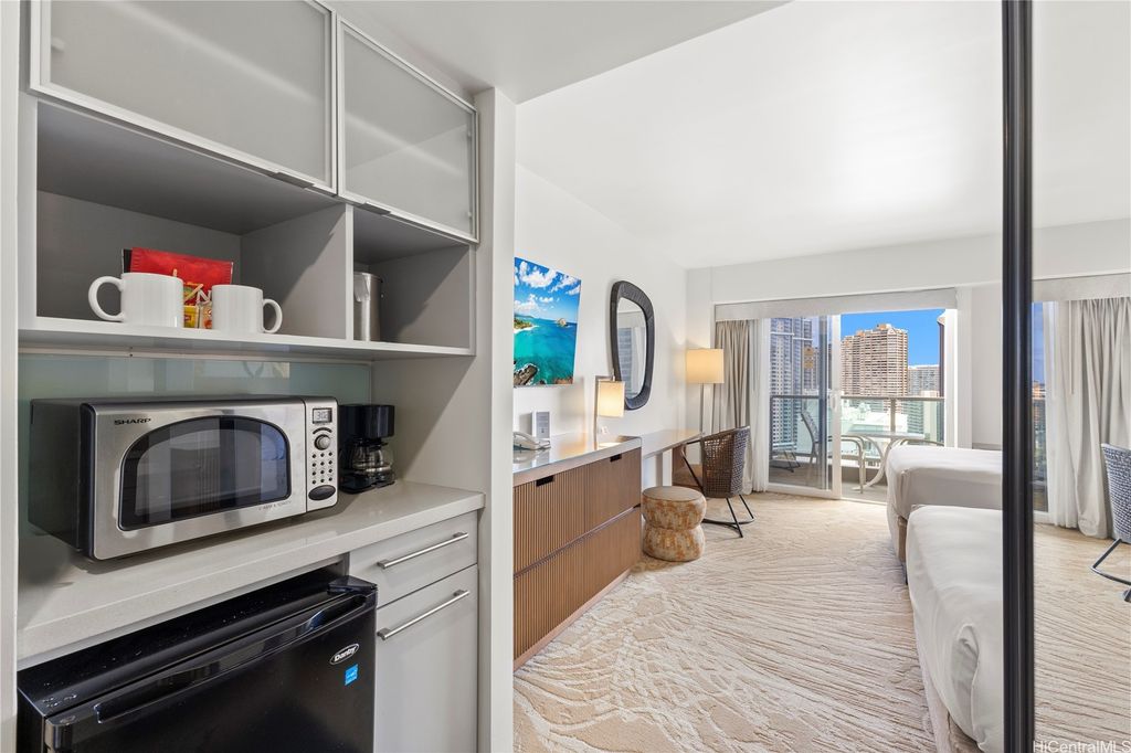 Experience island living in this high-floor studio at Ala Moana Hotel, featuring two full beds, a full bath, and a private lanai with captivating ocean views. The unit includes a mini-fridge for added convenience, making it perfect for personal getaways or as part of a vacation rental program. Owners and guests enjoy access to resort-style amenities such as a sparkling pool, fitness center with sauna, on-site dining, meeting facilities, and complimentary Wi-Fi. Ideally located near Ala Moana Center, Ala Moana Beach Park, the Hawaii Convention Center, and a variety of shopping, dining, and entertainment options, this property offers both relaxation and connection to what Honolulu has to offer.