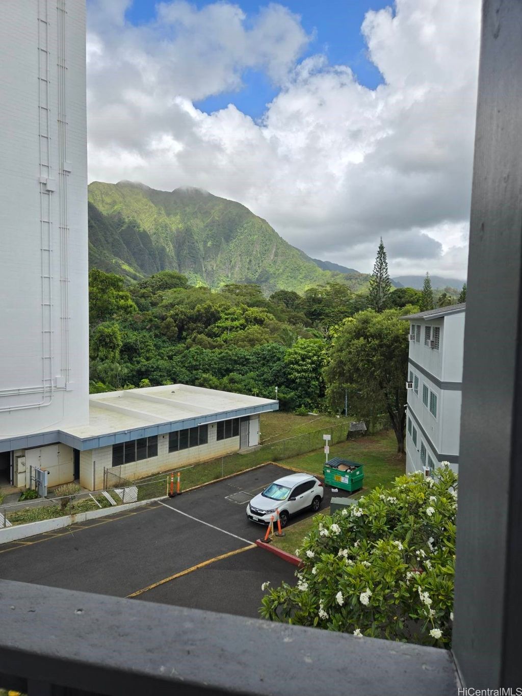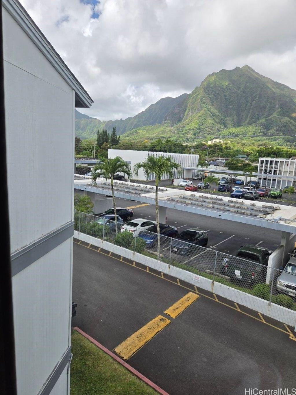 Top floor unit with views of the lush Koolau mountains from the living room. Covered parking, storage area, playground and BBQ pits in common area and pet friendly. Close to Windward Mall, Kaneohe Bay Shopping Center, schools, bus line and easy freeway access. Unit needs work.
