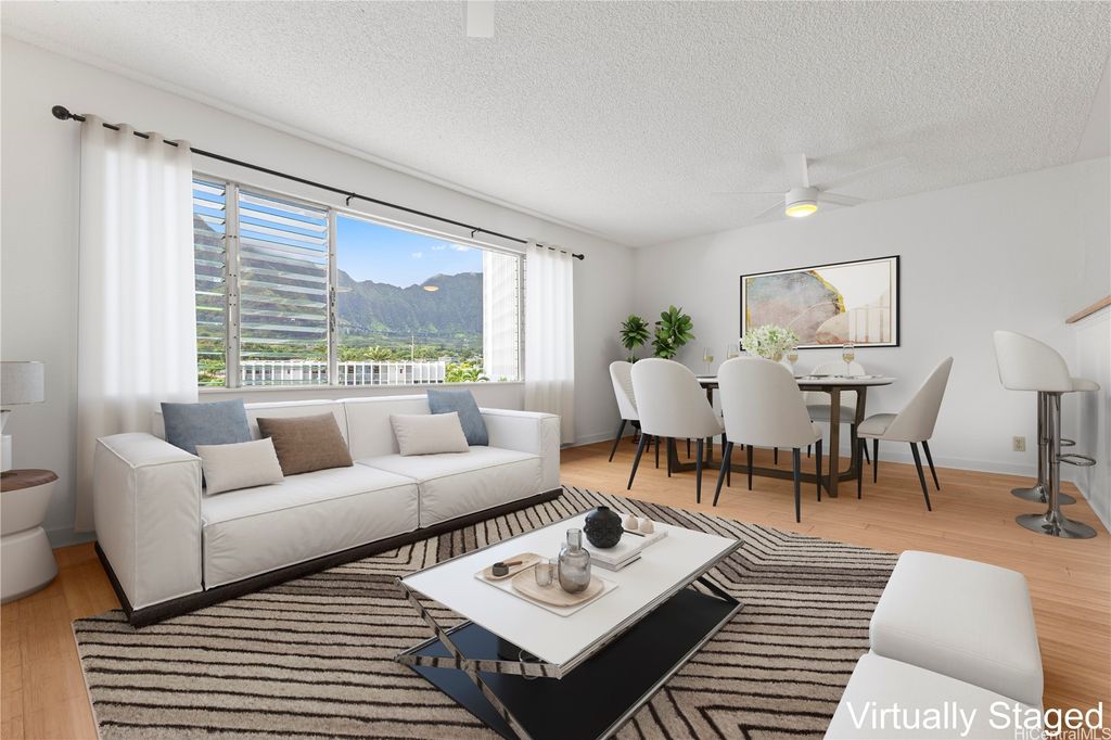 Top floor unit with views of the lush Koolau mountains from the living room. Covered parking, storage area, playground and BBQ pits in common area and pet friendly. Close to Windward Mall, Kaneohe Bay Shopping Center, schools, bus line and easy freeway access. One or more photos have been virtually staged.