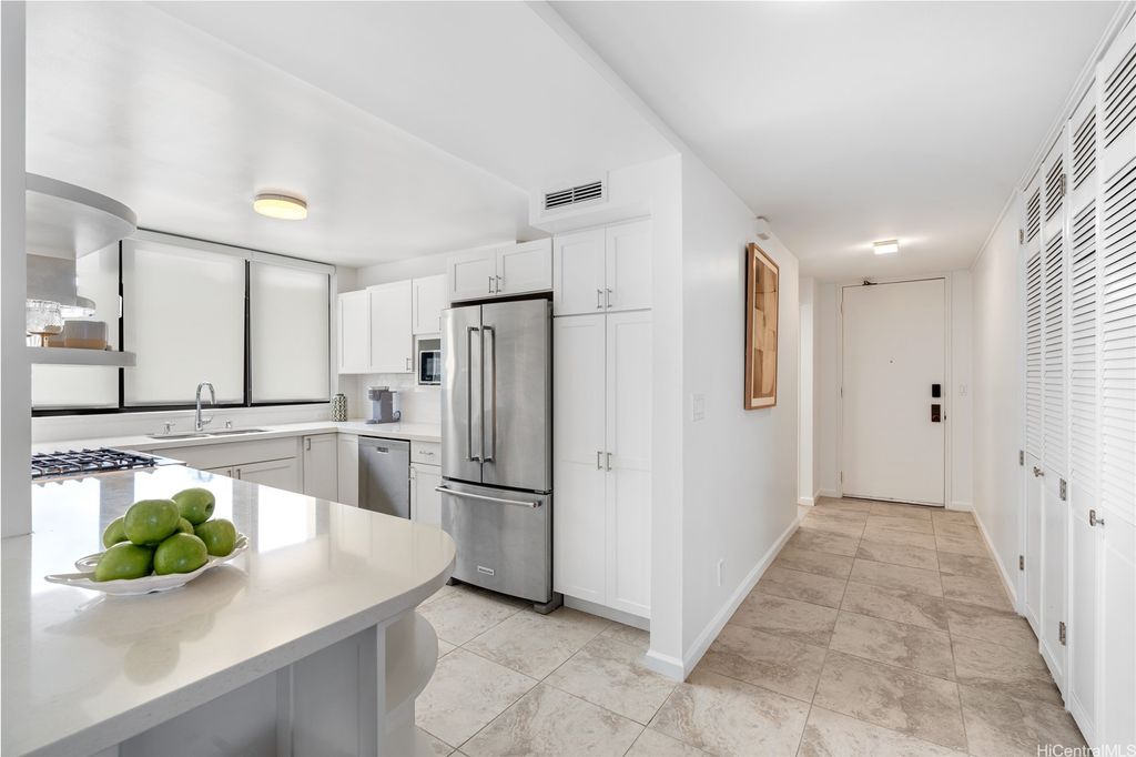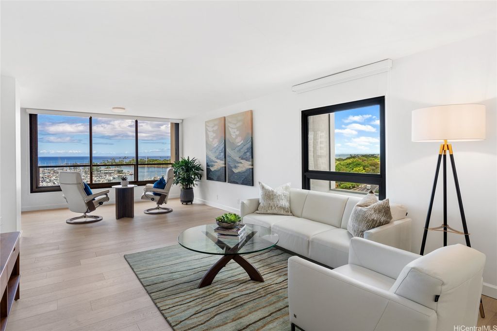 Enjoy sweeping ocean and harbor views. This two bedroom two bath apartment is freshly remodeled with an inviting color palette, new wood flooring, luxury window coverings, and air conditioning. Enjoy easy access to the coveted pool, BBQ areas, and tennis court. Offered furnished and move in ready. Spectacular year round sunsets and a great location moments from the famous Waikiki Yacht Club, world-class surf spots, and Ala Moana shopping center with Hawaii's best shopping, restaurants, and cafes.
