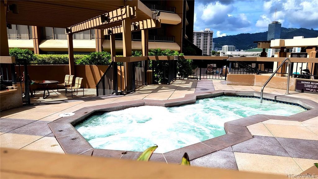 Charming studio with a full kitchen and washer/dryer in the unit. Central air, covered parking. Great amenities: hot-tub, pool, BBQ, sauna, fitness rooms, etc. Great investment property or 2nd home. All the units on this floor have high ceiling. Convenient location, across the street from Waikiki Beach, one block from Ala Moana Shopping Center. Central air, covered parking. Convenient location, across the street from Beach. Large sun deck on the 11th floor includes sparkling pool, spacious heated whirlpool, BBQ, exercise rooms,, sauna etc. The list price is below market value by 100k or more. Seller has already purchased the 96.893% fee for this unit. "The unit is 96.893% fee simple and 3.107% leasehold ($7.61/mo). The AOAO has right to purchase the remaining leased fee interest before the lease ends on 12/31/2039. The lease rent for the last 10 years of the lease is known, and the method to establish the price of the remaining leased fee interest has been agreed upon". See Discovery Bay's website.