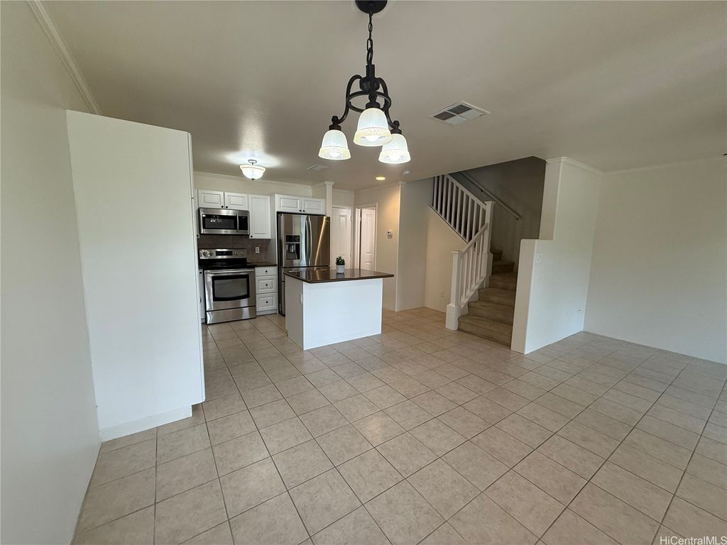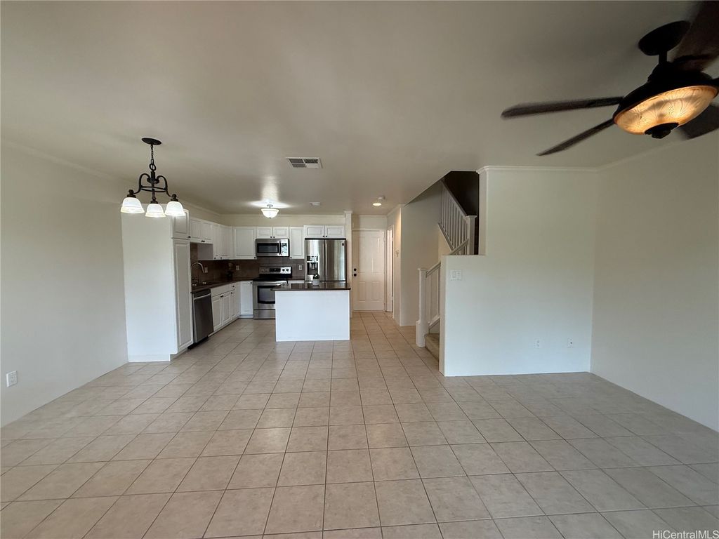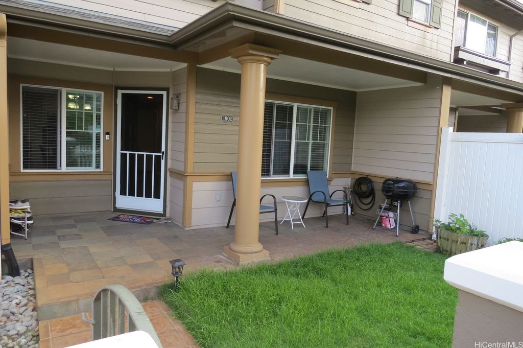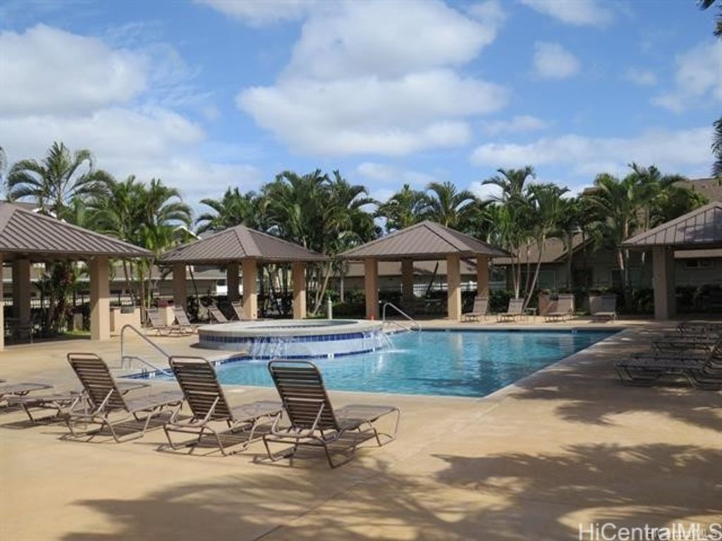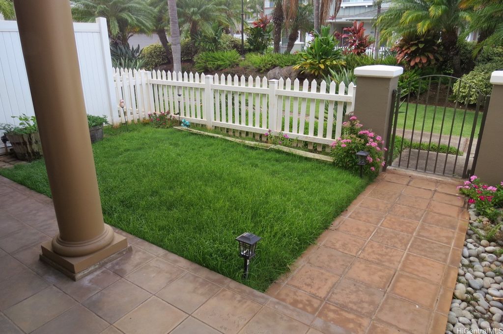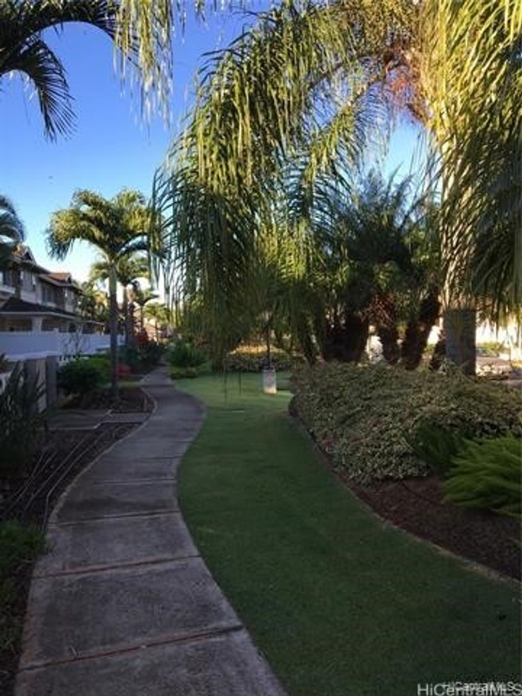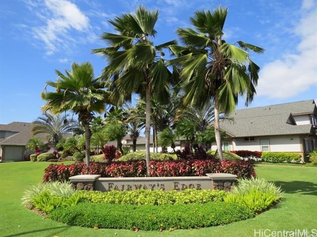 Freshley painted 3-bedroom, 2.5-bathroom townhome in Fairway's Edge. Featuring low-maintenance ceramic tiles flooring, while carpeting in the upstairs bedrooms. The modern kitchen is equipped with stainless steel appliances, ceiling fans, and central A/C, ensuring year-round comfort in the home. The spacious primary bedroom includes a dual vanity and a walk-in closet. Additional highlights include an in-unit washer and dryer, plus a newer water heater located in the garage. A fully fenced front yard ideal for added privacy or enjoying the island breeze. Enjoy the community amenities, including a pool, relaxing whirlpool, barbecue areas, and covered pavilions perfect for gatherings. Conveniently located near schools, just a short walk to Laulani Shopping Center. Explore the nearby Wai Kai Lagoon, participate in its vibrant weekly Farmer's market, and a few minutes drive to Ka Makana Ali'i Mall. Move In Ready!