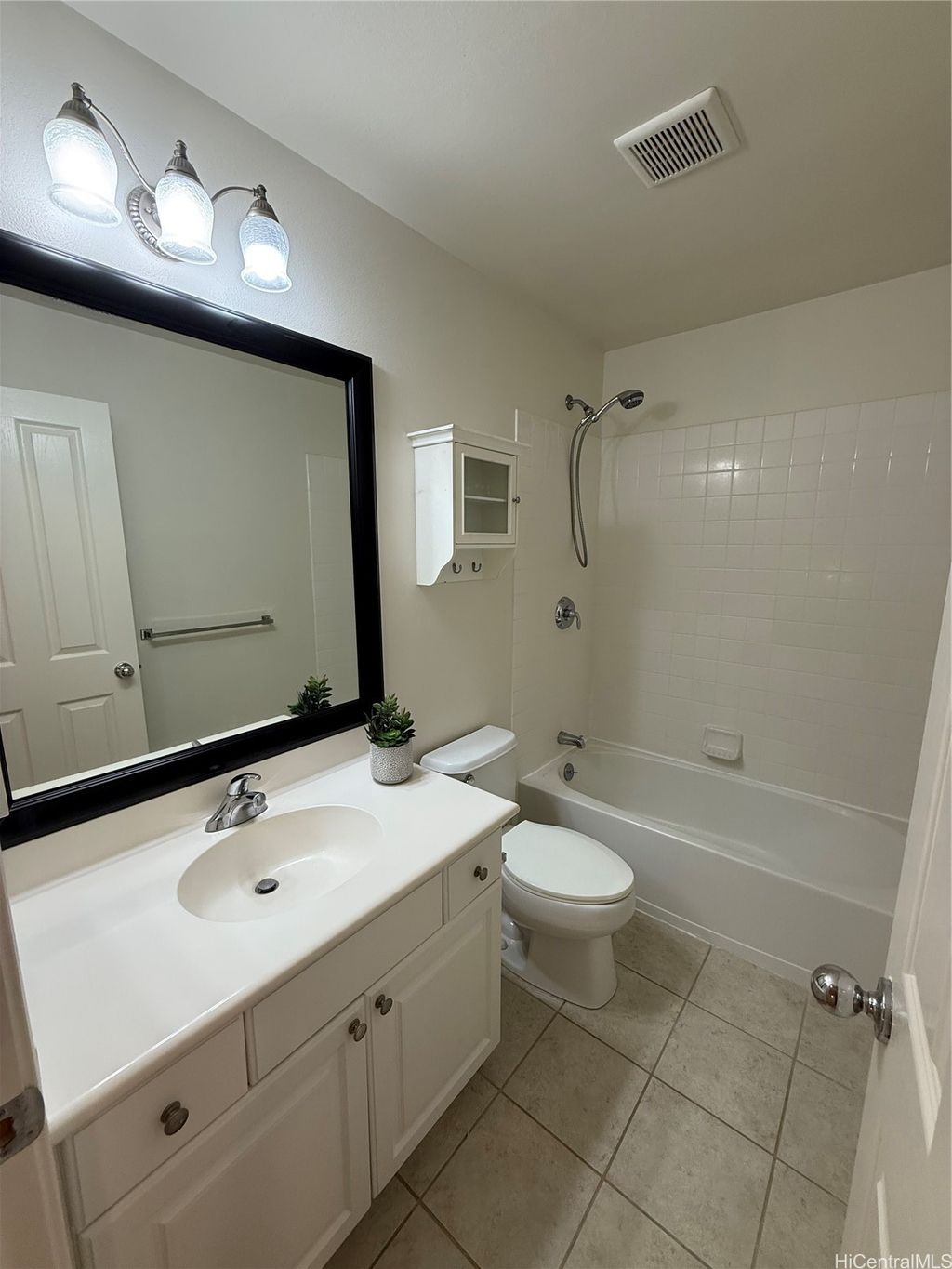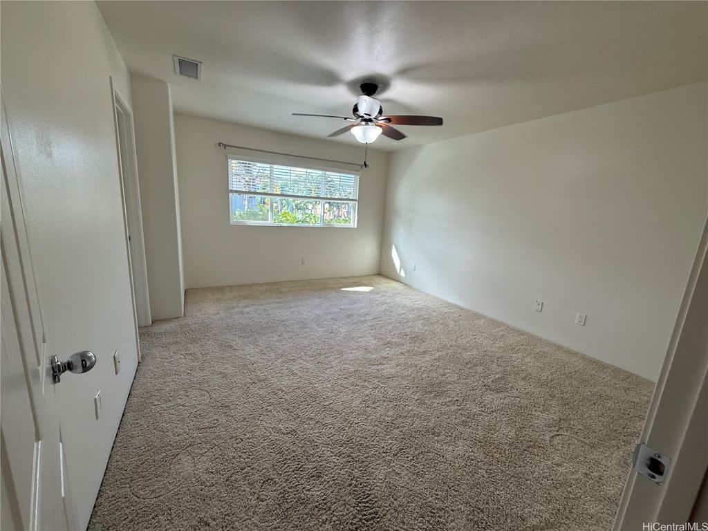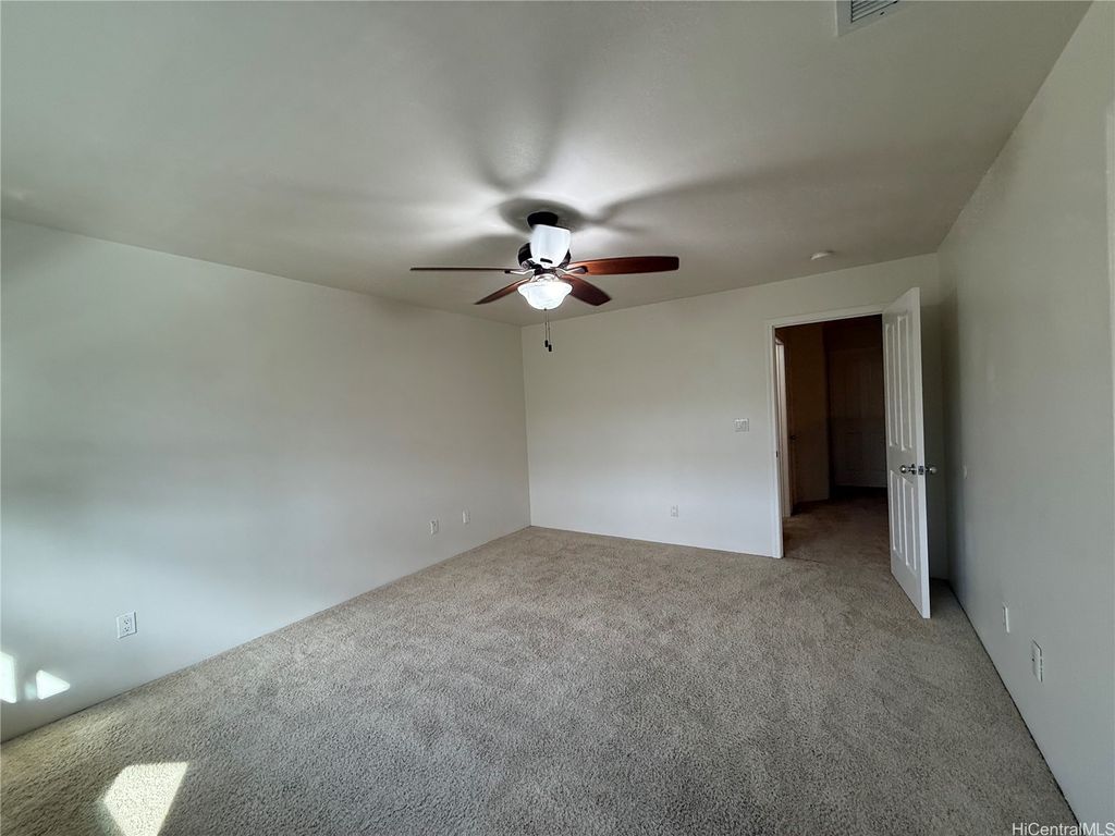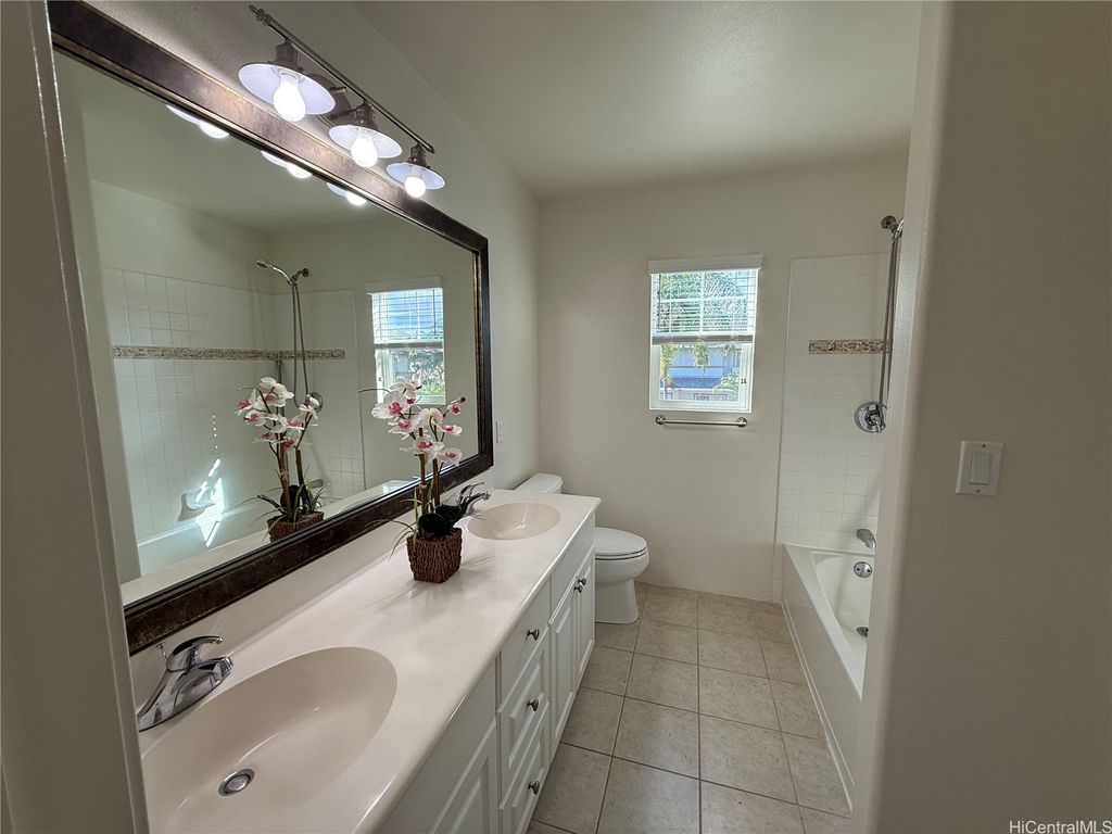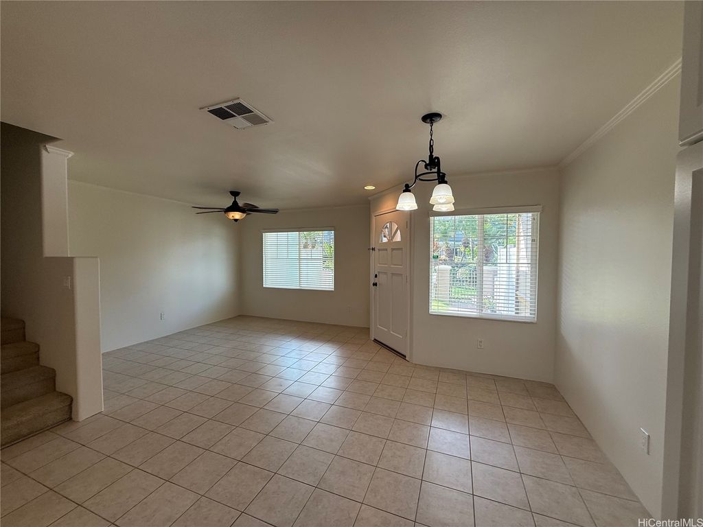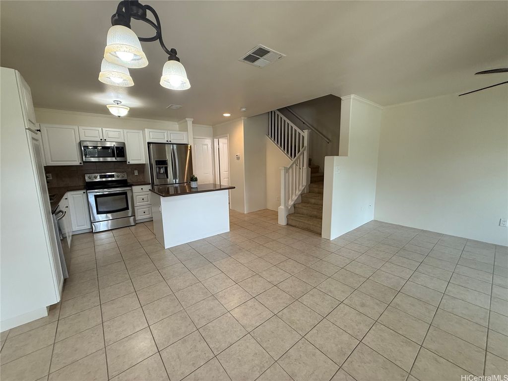 Freshley painted 3-bedroom, 2.5-bathroom townhome in Fairway's Edge. Featuring low-maintenance ceramic tiles flooring, while carpeting in the upstairs bedrooms. The modern kitchen is equipped with stainless steel appliances, ceiling fans, and central A/C, ensuring year-round comfort in the home. The spacious primary bedroom includes a dual vanity and a walk-in closet. Additional highlights include an in-unit washer and dryer, plus a newer water heater located in the garage. A fully fenced front yard ideal for added privacy or enjoying the island breeze. Enjoy the community amenities, including a pool, relaxing whirlpool, barbecue areas, and covered pavilions perfect for gatherings. Conveniently located near schools, just a short walk to Laulani Shopping Center. Explore the nearby Wai Kai Lagoon, participate in its vibrant weekly Farmer's market, and a few minutes drive to Ka Makana Ali'i Mall. Move In Ready!