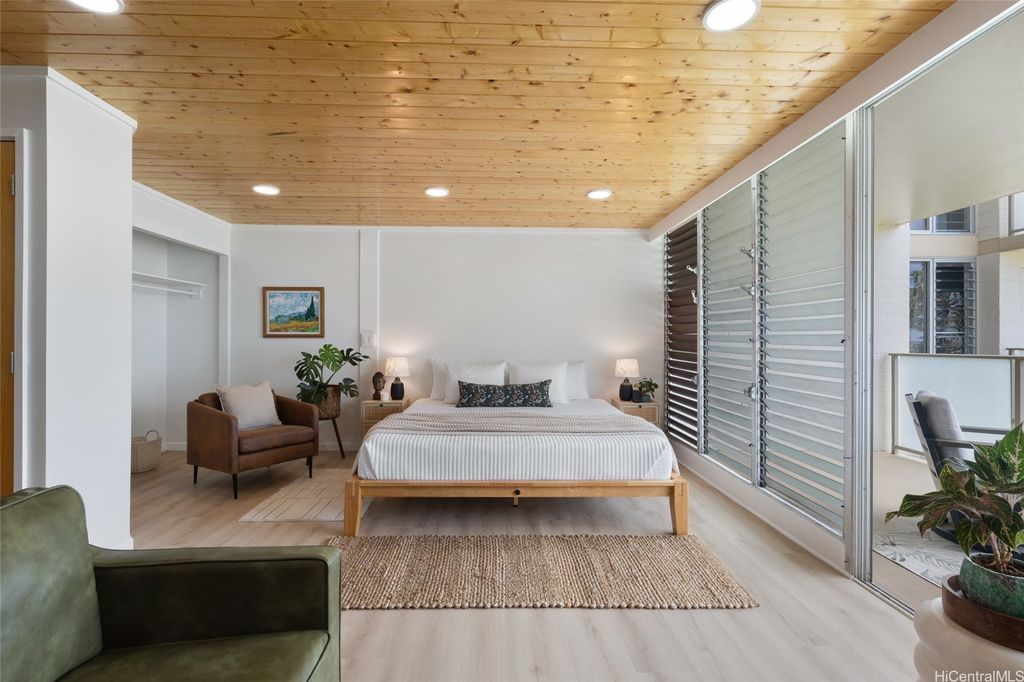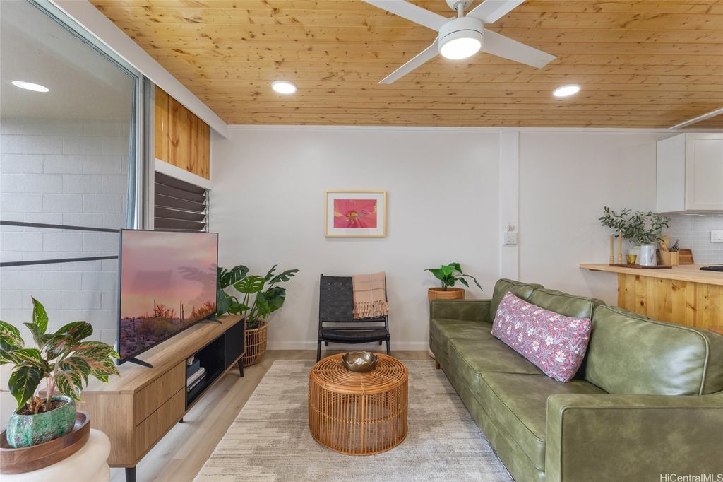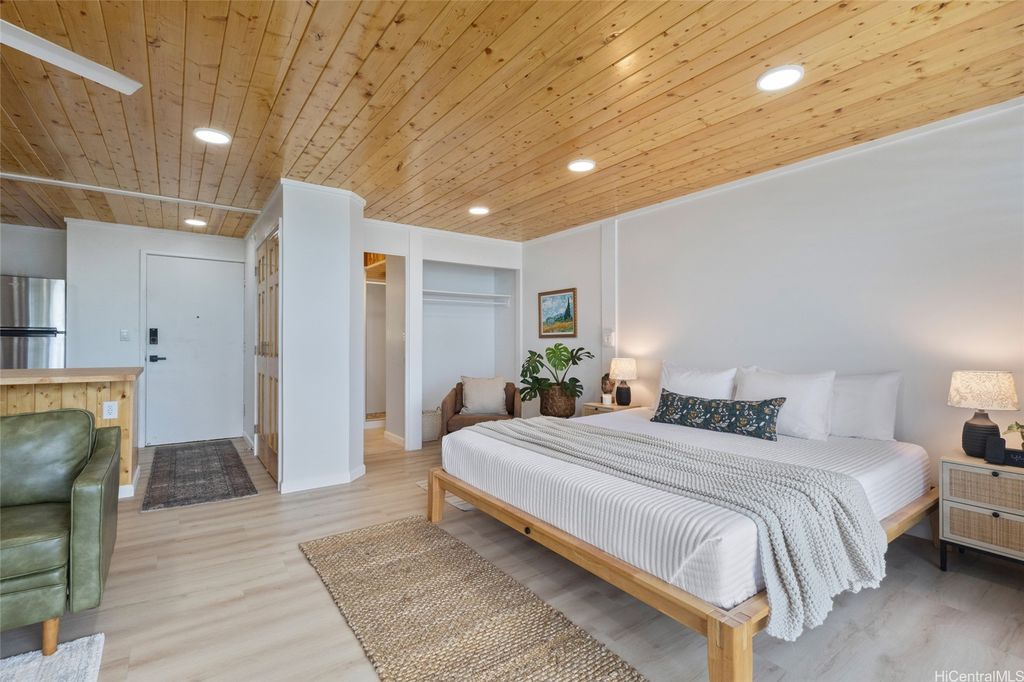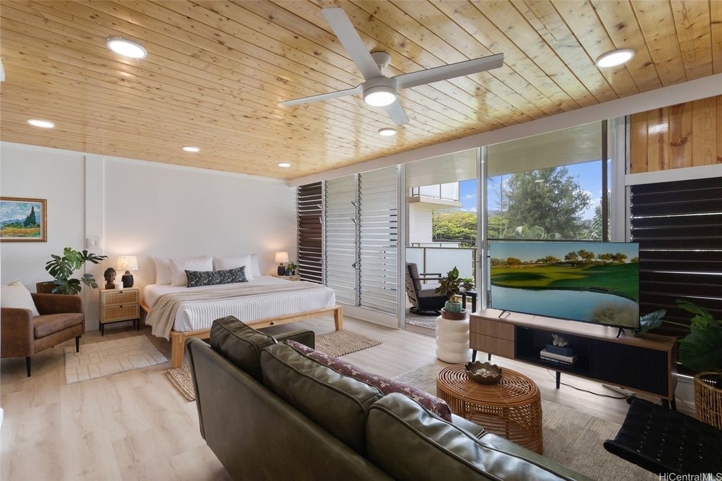 Fully updated one bedroom right on the beach in Punalu'u. This unit is awesome. Custom wooden ceilings give a super cool and unique vibe to this beachside getaway. Super laid back area with a swimmable sandy beach right out the back door.