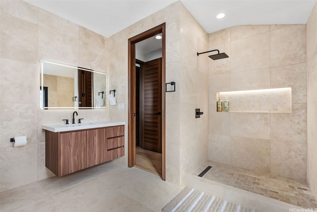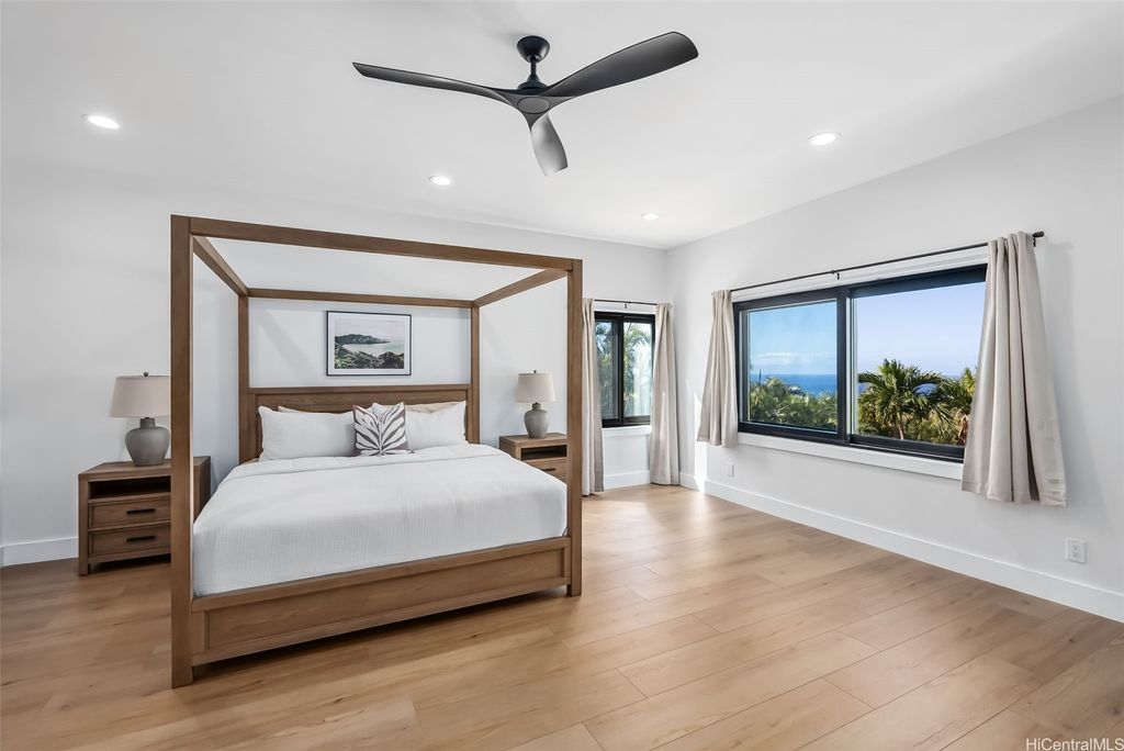 Luxury Modern Retreat in the gated community of Mauna'Olu Estates. Enjoy over 2 acres of land with Breathtaking Ocean Views and Mountain Views. Experience the ultimate in modern luxury with this stunning custom-built home, nestled against the breathtaking backdrop of Makaha Valley. This spacious open-concept home is designed for elegance and comfort, offering high ceilings, expansive windows, and an abundance of natural light. A chef's dream, the kitchen boasts a custom walk-in pantry, premium appliances(Thermador), custom cabinetry, and a large island"”ideal for both casual dining and entertaining. The primary suite features a spa-inspired bathroom with modern fixtures and elegant finishes. Oversized sliding doors open to a private backyard oasis, featuring a pristine pool, lush landscaping, and 2 pickleball courts perfect for entertaining or simply soaking in the serene surroundings. The beautifully designed outdoor lounge area and patio are perfect for dining under the stars and enjoying morning coffee. This home is an architectural masterpiece, offering the perfect blend of luxury, privacy, and natural beauty. Experience this one-of-a-kind paradise for yourself!