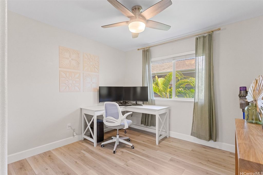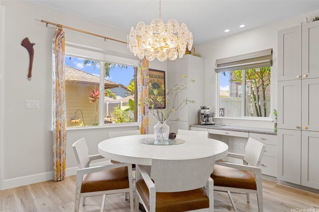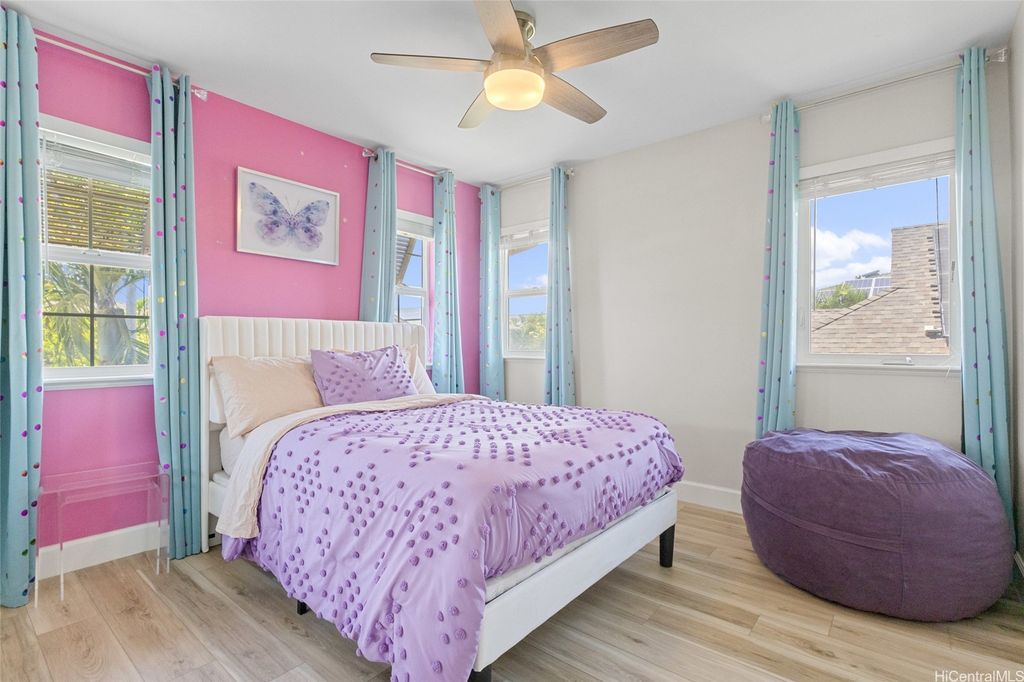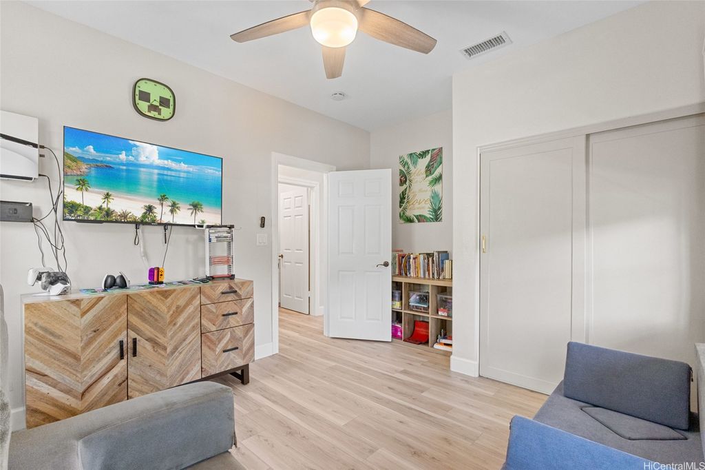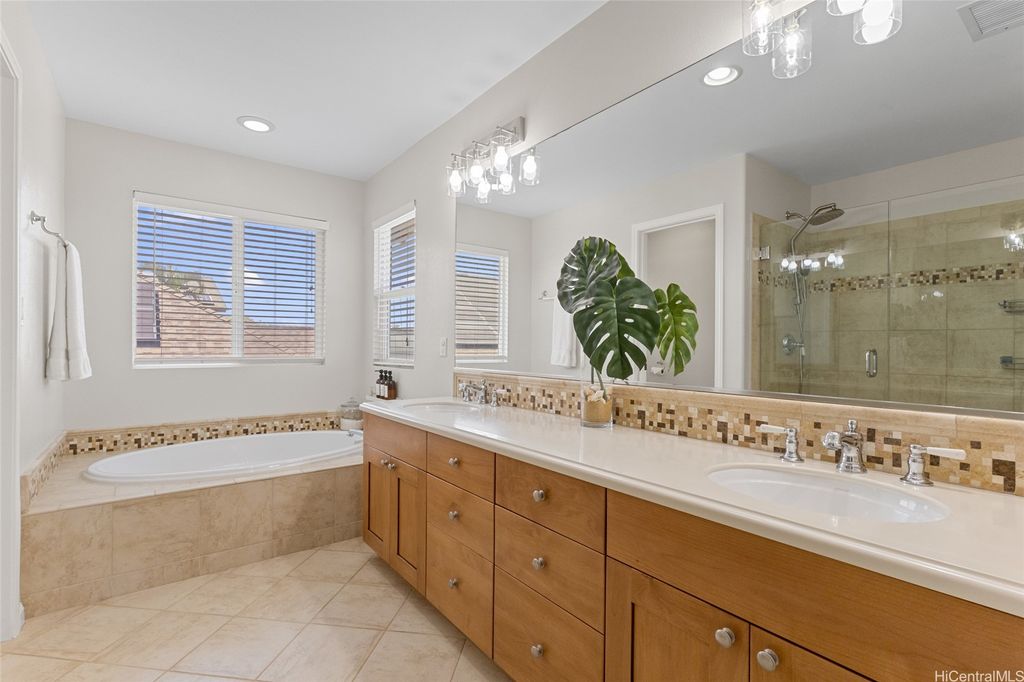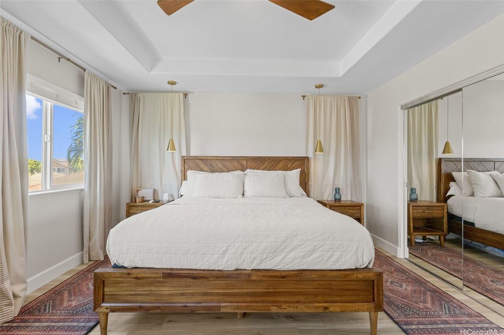 Sellers open to VA buyers"”assumable loan at 2.375%. Discover this stunning 2-story home in Hoakalei - Ka Makana, offering 5 bedrooms and 3 full baths. Enjoy quality finishes throughout, starting with an open-concept front living area featuring soaring ceilings and high windows. The first floor includes a bedroom and full bath, ideal for guests. The spacious great room connects to a gourmet kitchen with a large island"”perfect for cooking and entertaining. Upstairs you'll find 3 additional bedrooms and a luxurious primary suite with a large walk-in closet, king-size layout, soaking tub, and double shower. The landscaped backyard is great for barbecues and outdoor fun. A 2-car garage offers storage lockers, wall organizers, and a coated floor, plus an extra parking pad for a third vehicle. Home includes 33 owned photovoltaic panels and a Tesla battery. Just minutes from the Swim Club with pool, gym, and tennis court, and close to beaches, golf, shopping, and dining.