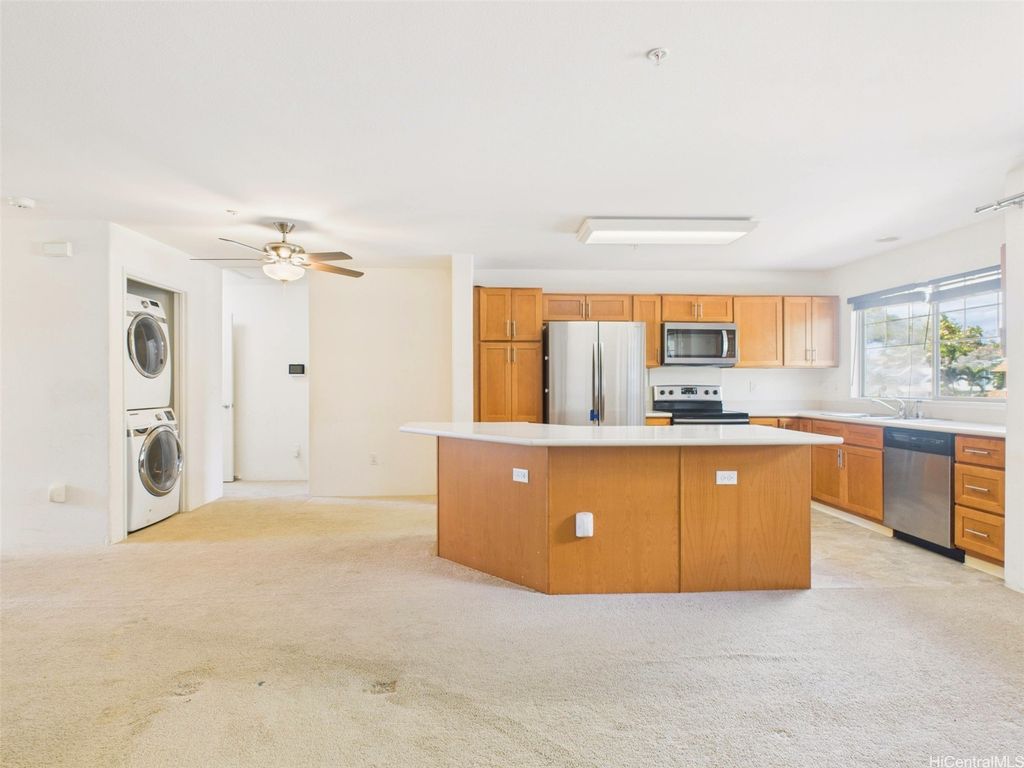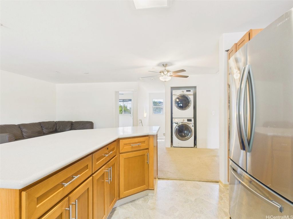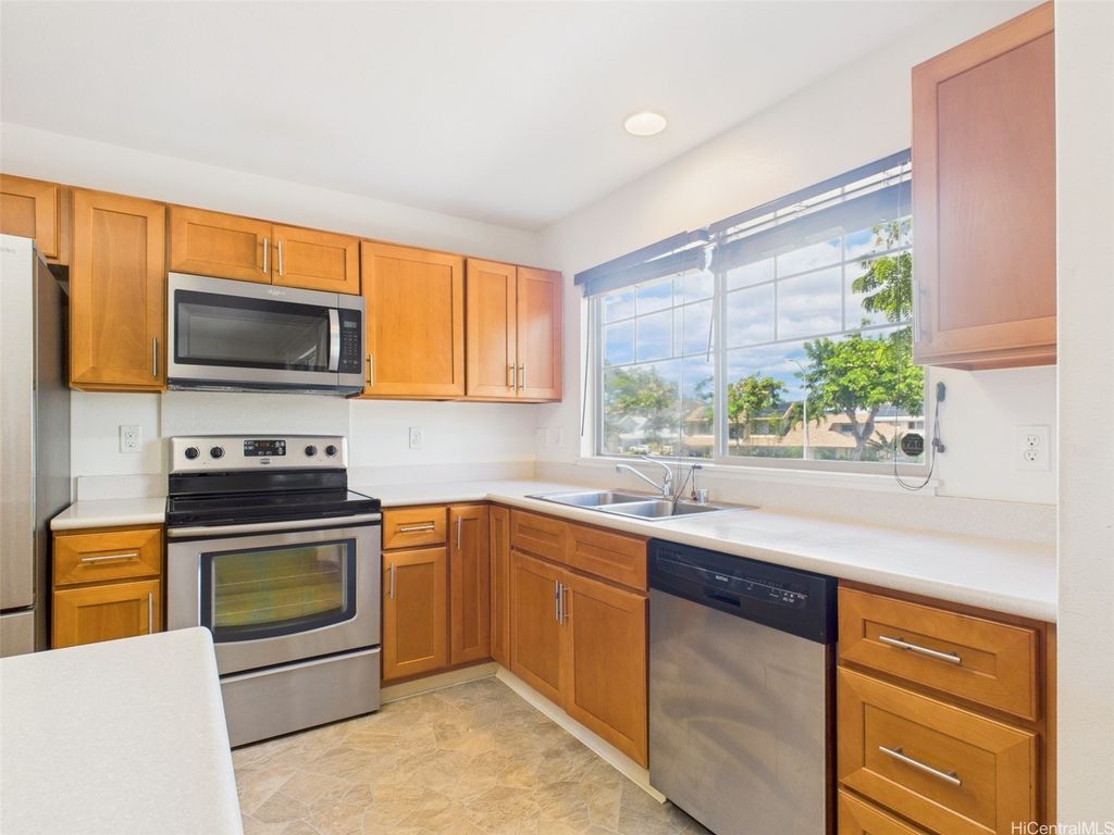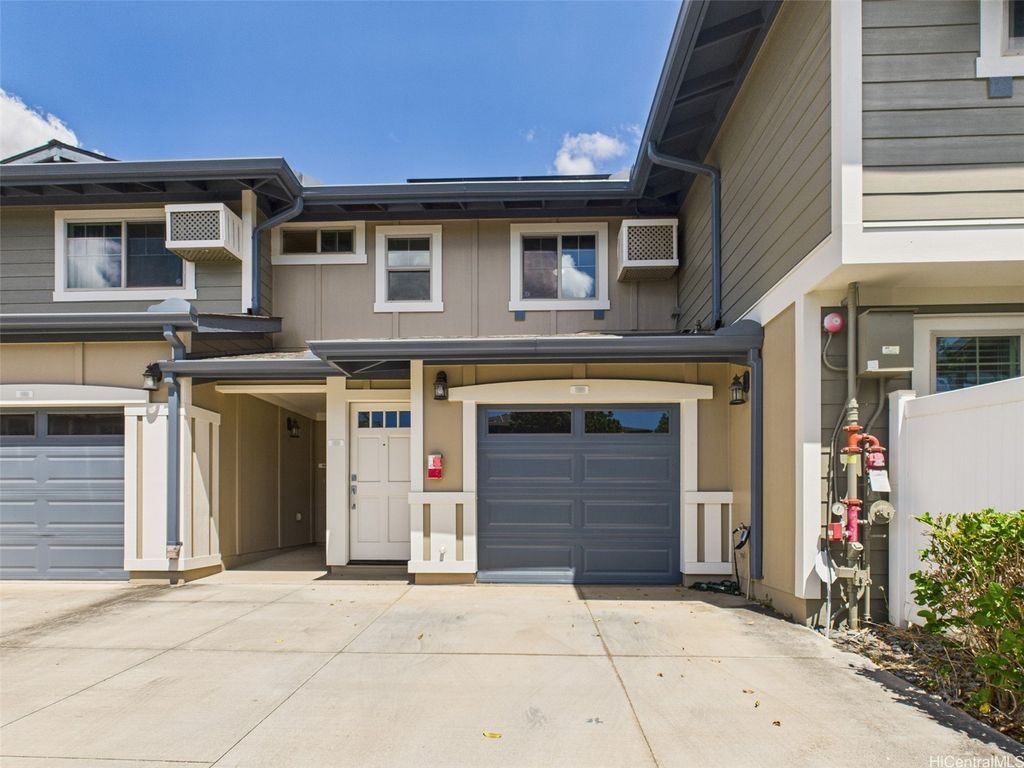 Under $600,000 in Kapolei! This spacious 3-bedroom, 2 full-bath Nohona III townhome is the opportunity you've been waiting for. Featuring an open-concept kitchen with stainless steel appliances, beautiful cabinetry, and a primary bathroom complete with a double-sink vanity, this home is filled with potential. Window A/C units in the bedrooms and living area keep you comfortable year-round, while an in-unit washer and dryer adds everyday convenience. Parking is a breeze with your own one-car garage plus an additional driveway stall. The building exterior was recently painted, and with no neighbors behind you, you'll enjoy added privacy for relaxing or entertaining. Conveniently located near golf courses, shopping centers, schools, restaurants, and all the best of the Second City. This home is ready for your personal touches, make it your own and create the space you've been dreaming of. At this price point, opportunities like this rarely come up in Kapolei, don't wait, make it yours today! No showings until the first Open House: Saturday & Sunday (9/20 & 9/21) from 2-5 PM.