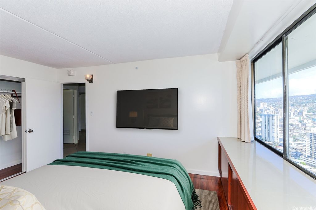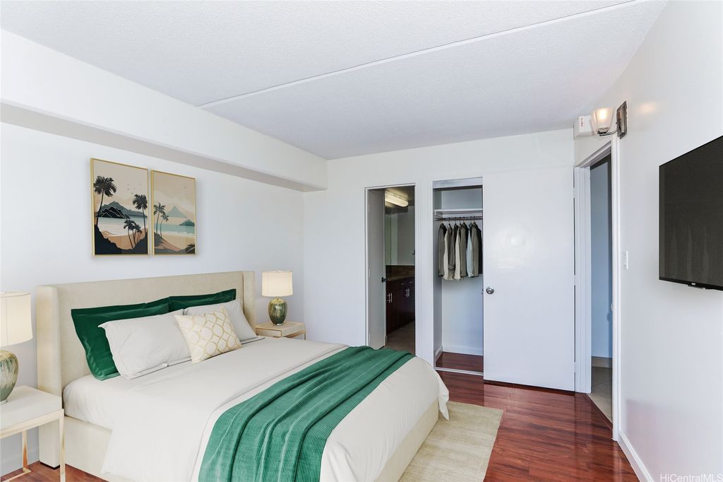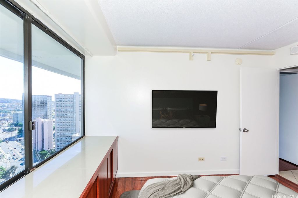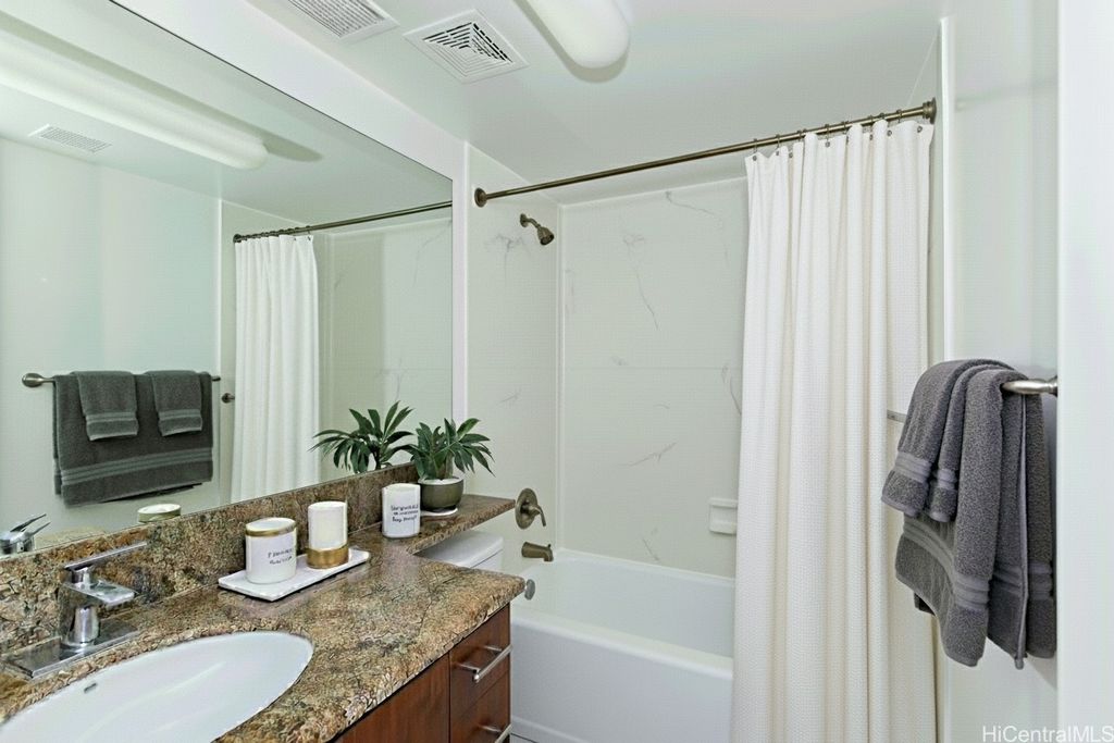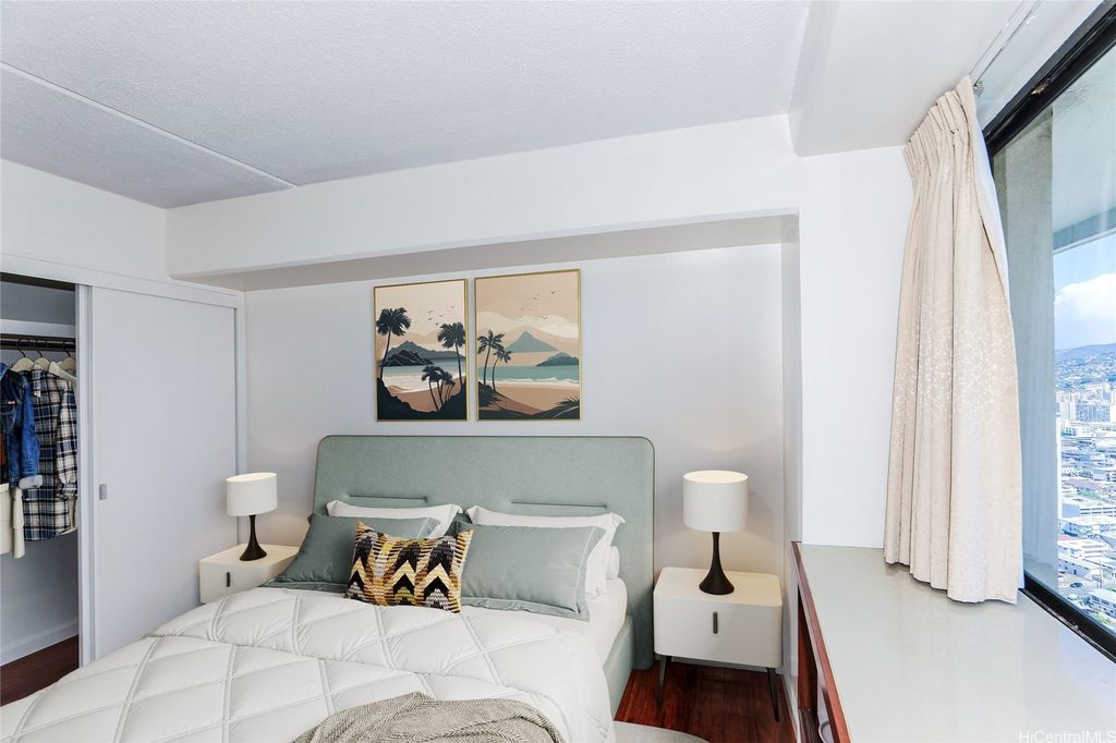 One Level Below Penthouse - Remodeled Condo with stunning views of the Koolau mountains. This beautiful newly remodeled 2-bedroom, 2-bath condo unit offers stunning views of the city and Koolau mountains. The cozy open-concept kitchen features upgraded countertops, backsplash, and appliances, flowing seamlessly into the living area"”perfect for entertaining. Enjoy the convenience of in-unit washer and dryer, alarm/fire sprinkler system, and one covered/secure assigned parking stall. Resort-style living awaits with 24-hour security and an array of amenities including a pool, sauna, guest parking, courtyard, basketball and tennis courts, BBQ areas, putting greens, car wash station, and an on-site convenience store located lobby level. Centrally located near downtown Honolulu, UH Manoa, Ala Moana Center, Waikiki, beaches, dining, shopping, and public transportation. Urban living meets island comfort"”don't miss this rare opportunity! Sold As Is, enhanced and virtually staged photos.
