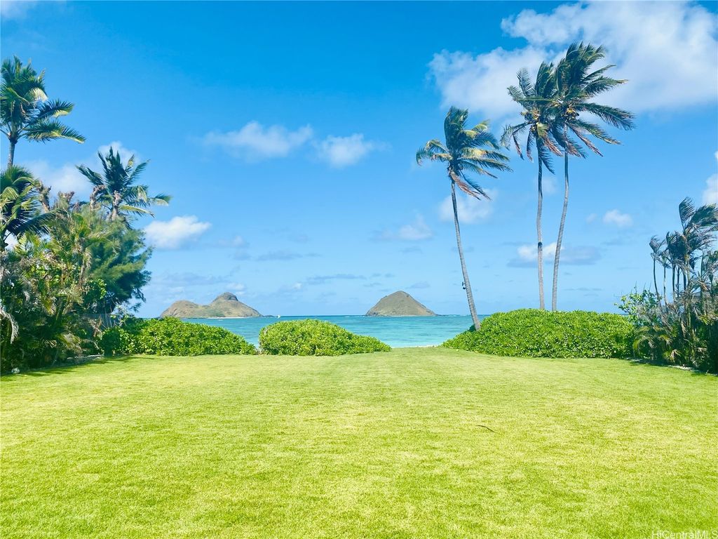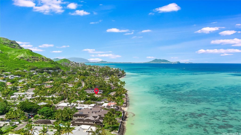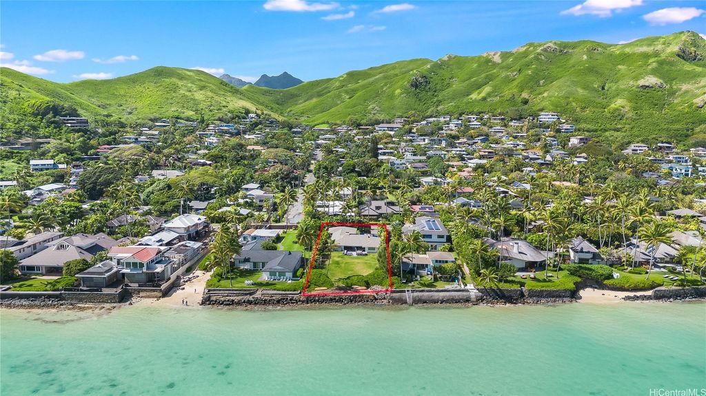 Imagine waking to the soothing rhythm of waves, stepping onto your private lanai, and gazing out at the iconic Mokulua Islands"”this dream becomes your daily reality at this exquisite oceanfront estate on coveted Mokulua Drive in Lanikai. Tucked away at the serene end of Lanikai, this expansive 19,212 sq. ft. property offers unrivaled views and picture-perfect sunrises over the Pacific. Fully renovated in 2022, the residence blends timeless mid-century island architecture with luxurious modern upgrades, including wide-plank oak flooring, custom cabinetry, WaterWorks fixtures, Sub-Zero/Wolf appliances, Fleetwood sliding doors, updated plumbing and electrical systems, and a state-of-the-art home theater. This single-level beach house features three spacious bedrooms and four elegant bathrooms, all thoughtfully designed to embrace indoor-outdoor living. Step outside and the ocean is your backyard"”perfect for snorkeling, kayaking, wing foiling, or simply enjoying the Lanikai loop while greeting friendly neighbors. Famed for its powdery white sands and crystal-clear waters, Lanikai is a sanctuary for water lovers and those seeking an elevated, yet laid-back island lifestyle.