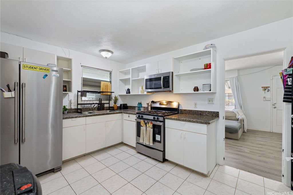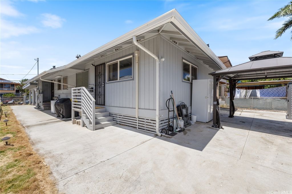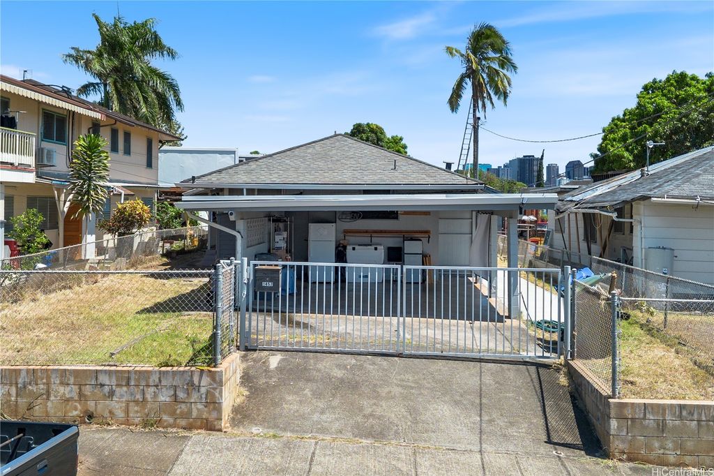 Step into this delightful single-level residence in the heart of Kapalama, where comfort, versatility, and island living converge! This thoughtfully designed home offers a flexible floor plan, perfect for multi-generational living or creating distinct living spaces for multiple families. The highlight is the expansive king-sized primary bedroom, featuring a luxurious ensuite bathroom and its own private entrance, ideal for added privacy or guest accommodations. The property boasts a generous, fully fenced, level yard that's perfect for hosting gatherings with loved ones or providing a safe haven for your furry friends to roam freely. Inside, modern comforts await with Split AC for year-round climate control, sleek luxury vinyl flooring, and ample natural light that enhances the home's warm and inviting ambiance. Additional features include a convenient 2-car carport, offering plenty of parking and protection from the elements, as well as an attached storage room to keep your belongings organized. Home is being sold "As Is."