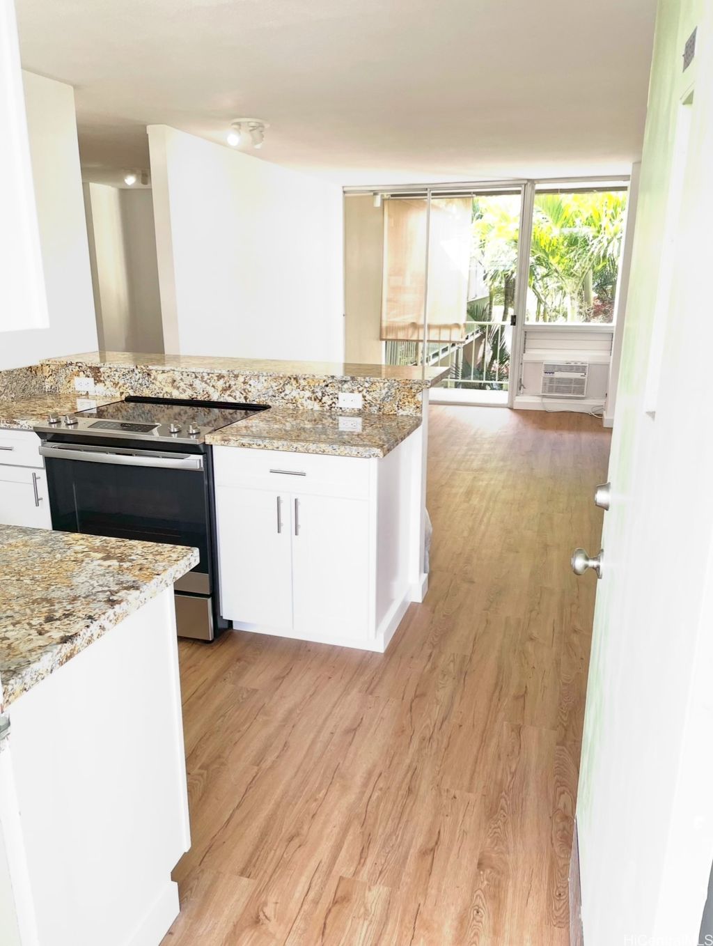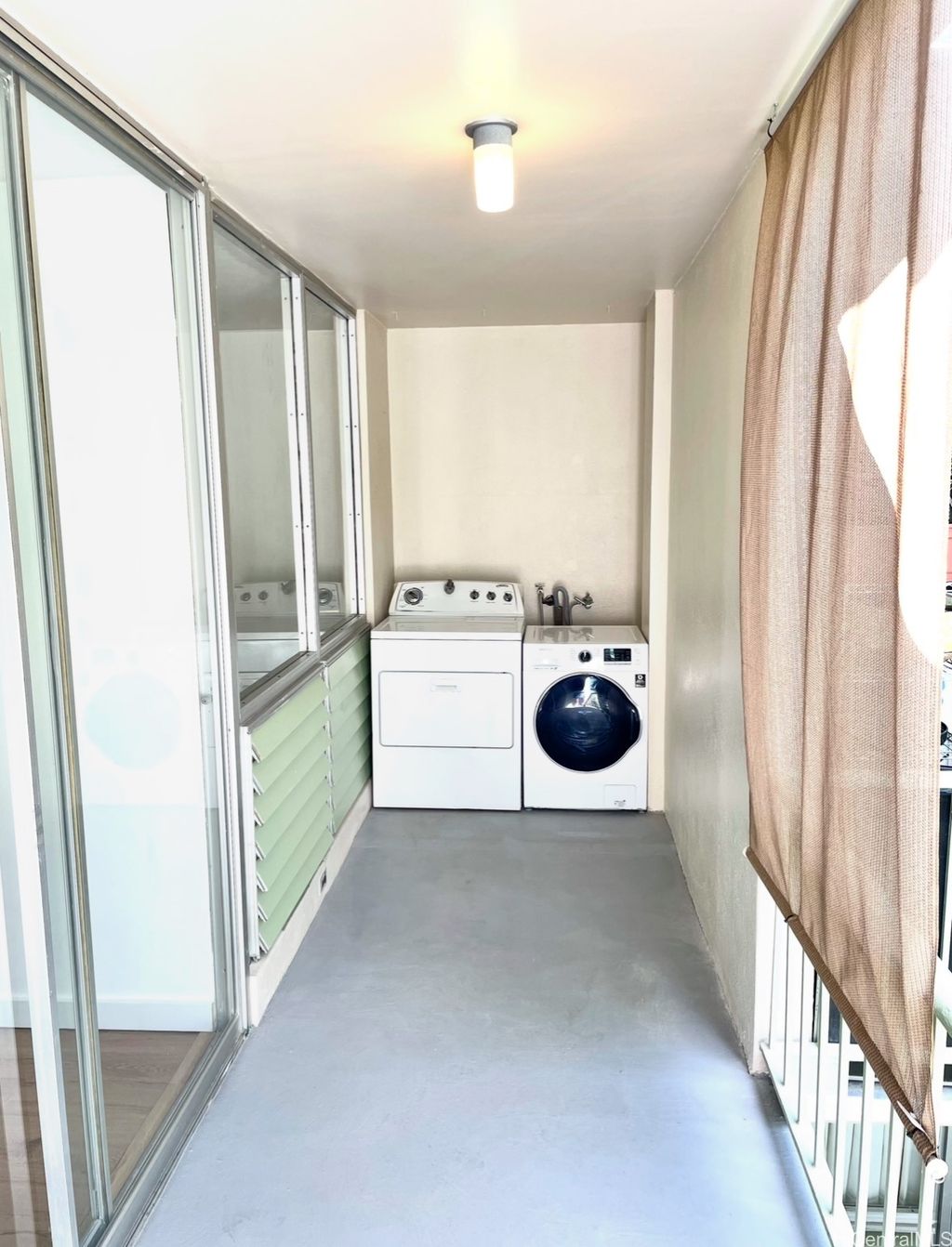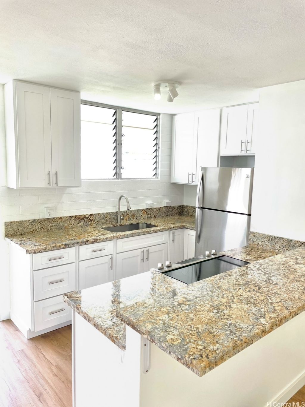 Welcome to Makiki Palms! 100% hurricane insurance coverage. This one-bedroom, one-bath condo offers 533 sq. ft. of living space plus a roomy 103 sq. ft. lanai to enjoy the breeze. Located in the heart of Makiki, you're close to shopping, dining, UH, and Downtown. The home has a comfortable layout with a modern kitchen and updated bathroom, along with the convenience of an in-unit washer and dryer. Your covered, assigned parking stall #12 is in the preferred B building, set back from the street and overlooking the pool. A great option for first-time buyers or investors in a prime Honolulu location.