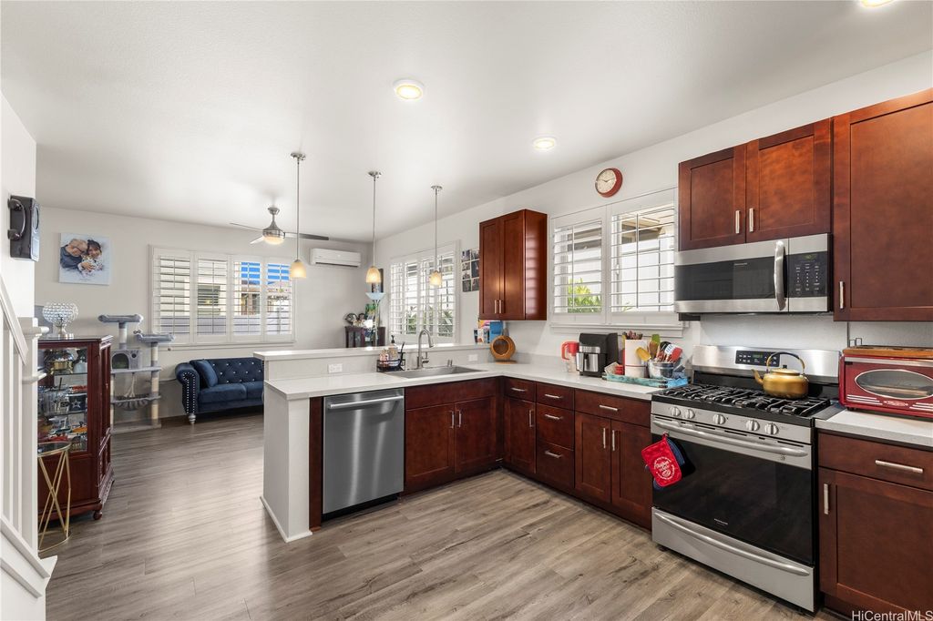 Stunning corner-lot gem in the desirable Iliahi at Hoopili community! Perfectly positioned directly across from the Community Center and swimming pool, this meticulously maintained smart home blends modern efficiency with island-style comfort. Equipped with 25 fully owned solar panels and a backup battery, you'll enjoy significant energy savings along with a gas oven, gas dryer, and tankless water heater for optimal efficiency. Every detail has been thoughtfully upgraded "” from plantation shutters and a sleek Bosch dishwasher to custom closet systems, designer lighting, and stylish ceiling fans that enhance both comfort and elegance. Step outside to your private, backyard oasis "” ideal for weekend BBQs, tropical gardening, or simply unwinding under the island skies. Situated in a prime location near the rail station, Ka Makana Ali"˜i Mall, the Kroc Center, and quick freeway access, this home offers both convenience and an elevated lifestyle. Don't miss this rare opportunity to own a corner-lot beauty in one of O"˜ahu's fastest-growing communities!