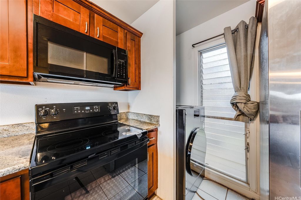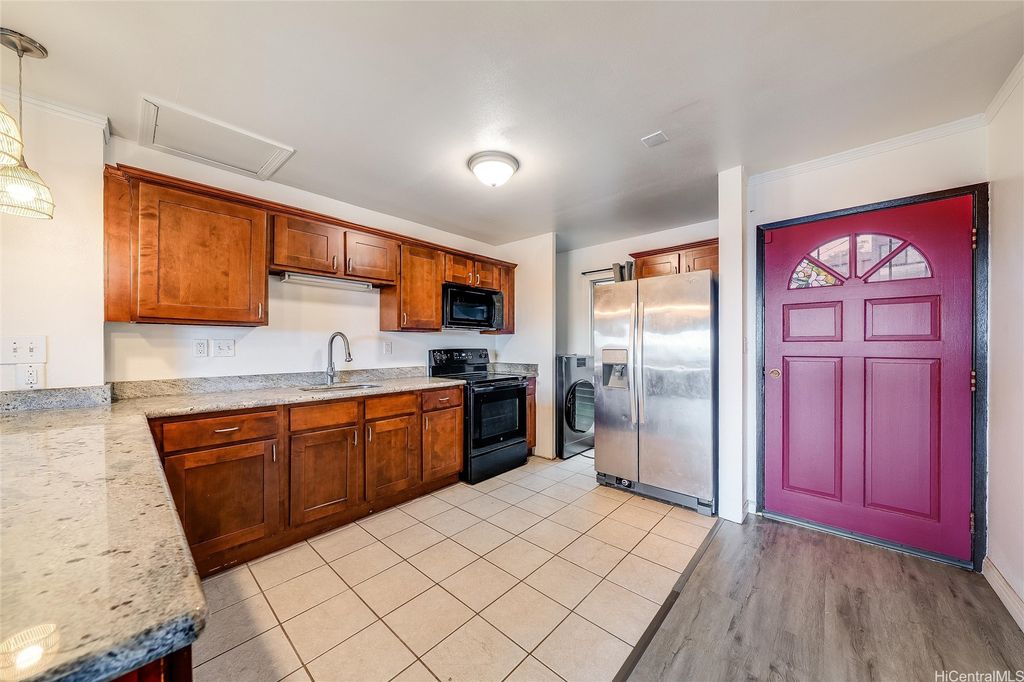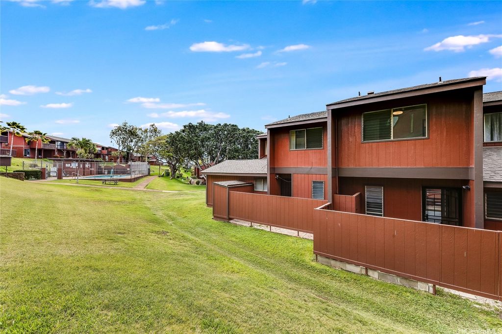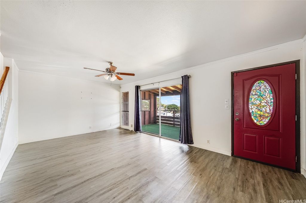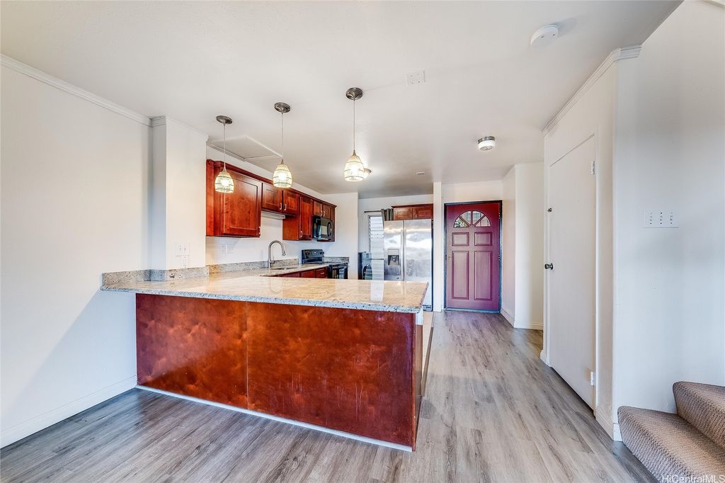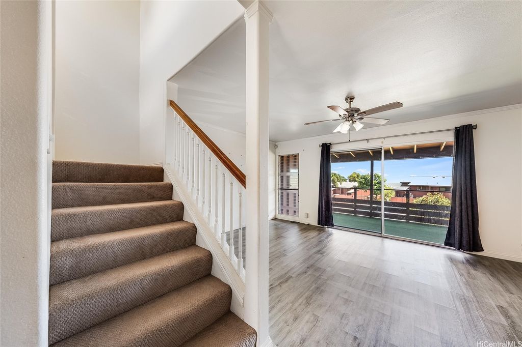 Welcome to this spacious and beautifully updated 4-bedroom, 2-bathroom two-story townhome located in the heart of Kapolei. This home features a stylish open-concept kitchen with rich wood cabinetry, granite countertops, and modern black appliances, including a refrigerator, oven, microwave, and range. Enjoy ample storage, pendant lighting over the breakfast bar, and a seamless flow into the bright living and dining areas. The home also boasts tile and luxury vinyl plank (LVP) flooring throughout, ceiling fans, in-unit washer and dryer, and two assigned uncovered parking stalls (#40 & #44). Enjoy relaxing on the private patio or take advantage of the community amenities including a pool and nearby parks. Rent includes water sewer trash and landscaping
