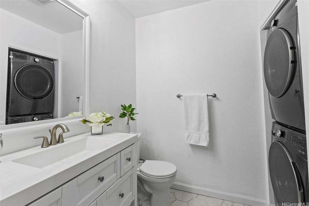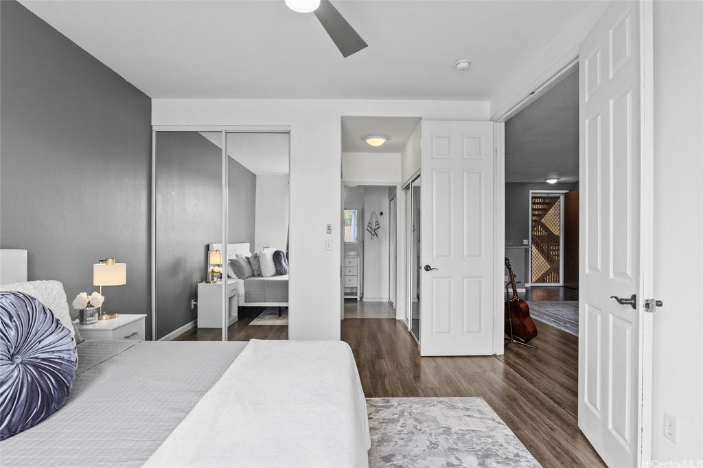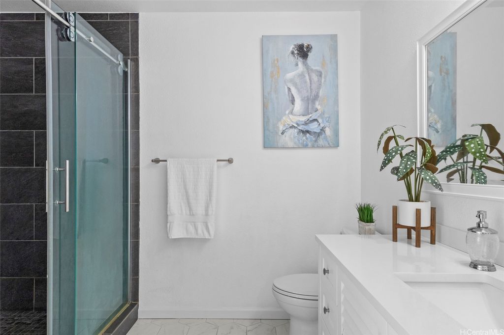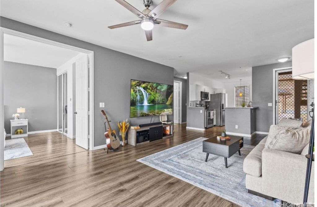 VA Assumable rate at 5.75%. Welcome Home to this beautifully updated 2 bedroom/ 2 bath located in breathtaking Launani Valley! The elegance and style in this stunning home features soaring luxury height ceilings and an open-concept layout. The modern kitchen boasts sleek stainless steel appliances, quartz counter tops, ample cabinetry and a functional flow perfect for entertaining or everyday living. Enjoy easy-care luxury vinyl plank flooring throughout, creating a warm, cohesive feel. Both roomy bedrooms are well-appointed, with a spacious primary suite offering lots of closet space and an oversized shower for added luxury. Move outside to your private patio "” ideal for savoring your favorite morning beverage or relaxing in the evening breeze. With two assigned parking stalls that lead directly to your front door (yes, no stairs), convenience is built in. Close to Schofield, Wheeler AFB, freeway access, shopping and local eateries. Community pool with jacuzzi, playgrounds, basketball court, tennis courts and walking path available for use. This gorgeous, move-in ready oasis combines modern finishes with timeless charm. Don't miss the opportunity to make this your perfect retreat!