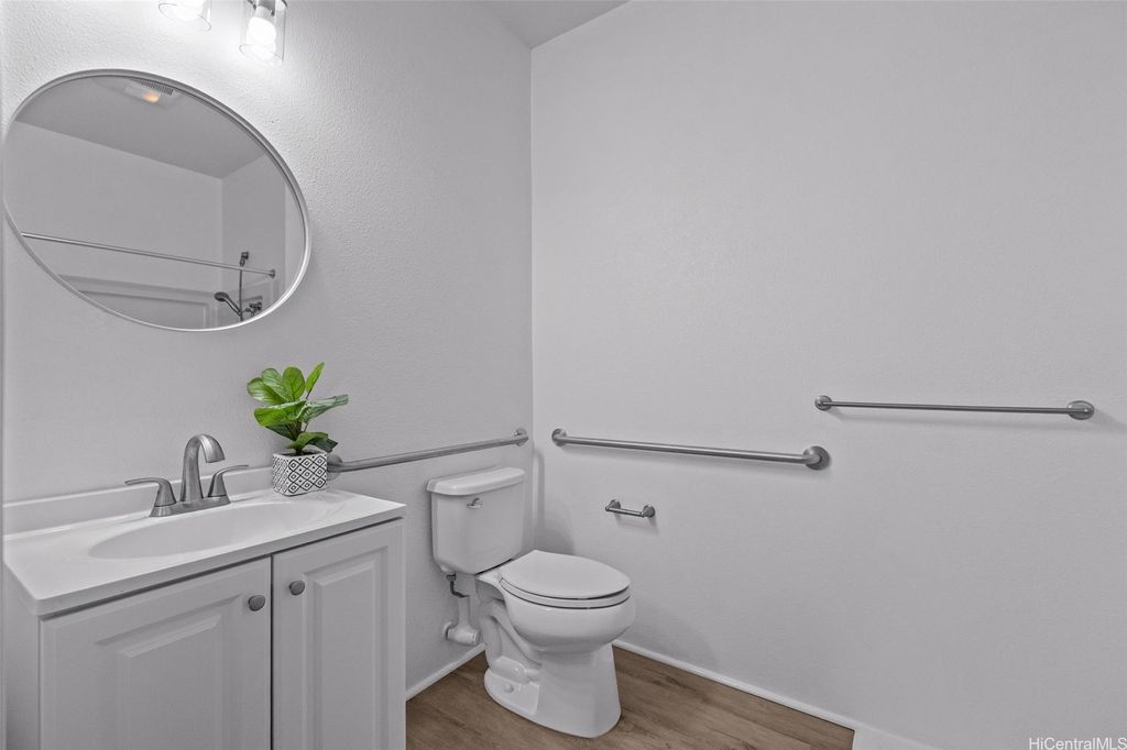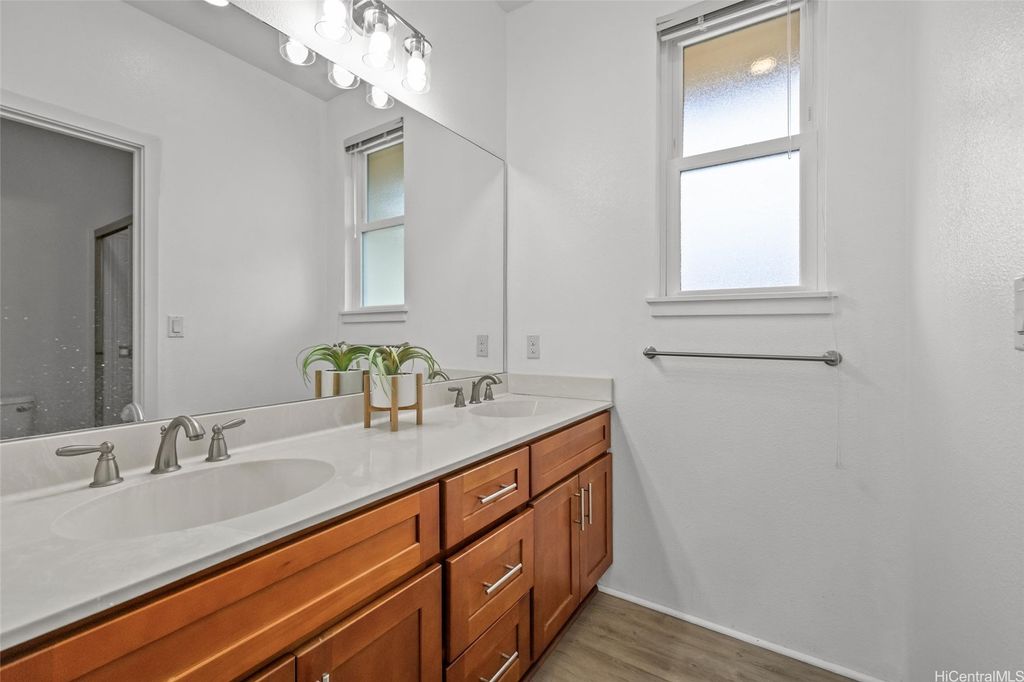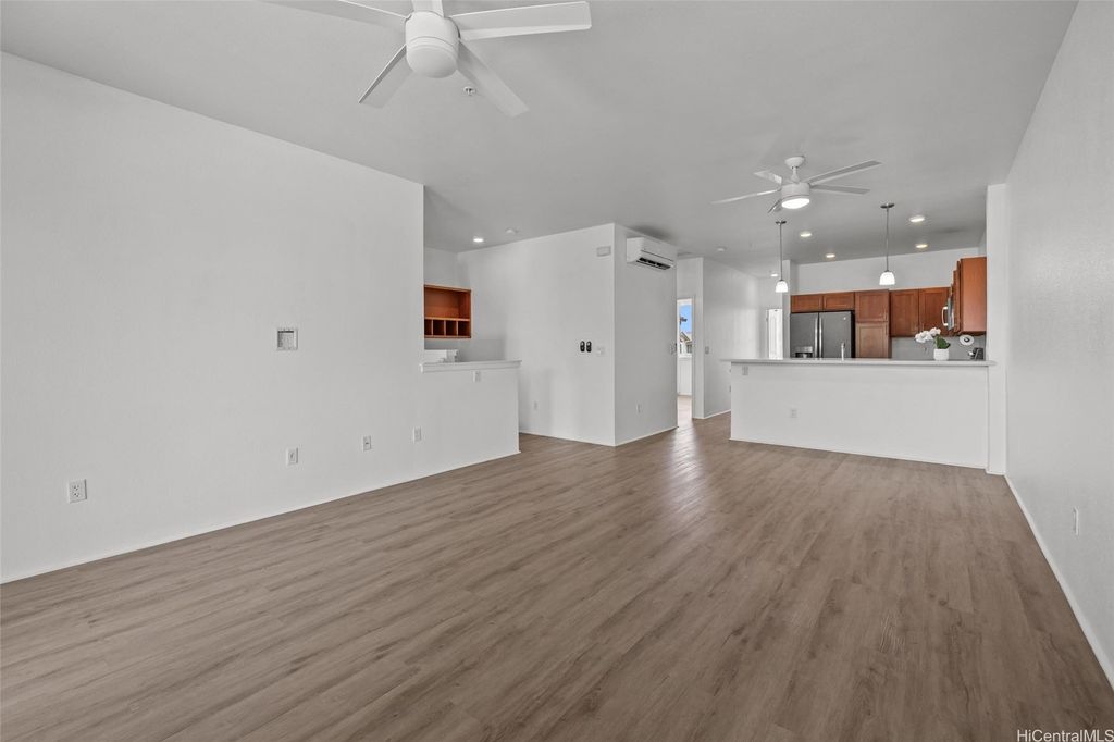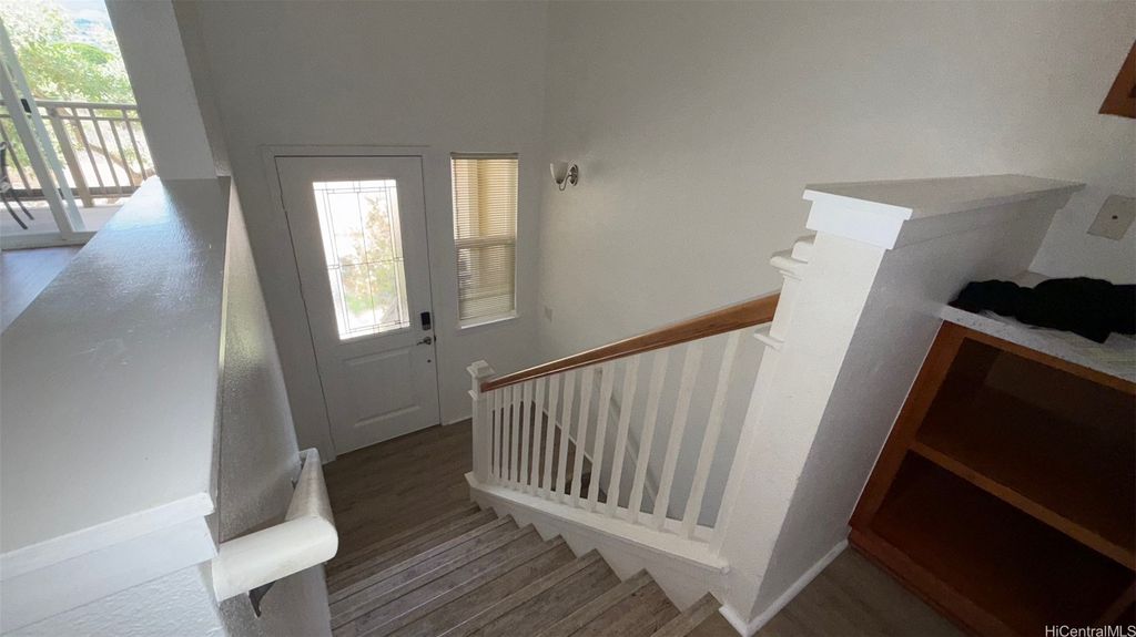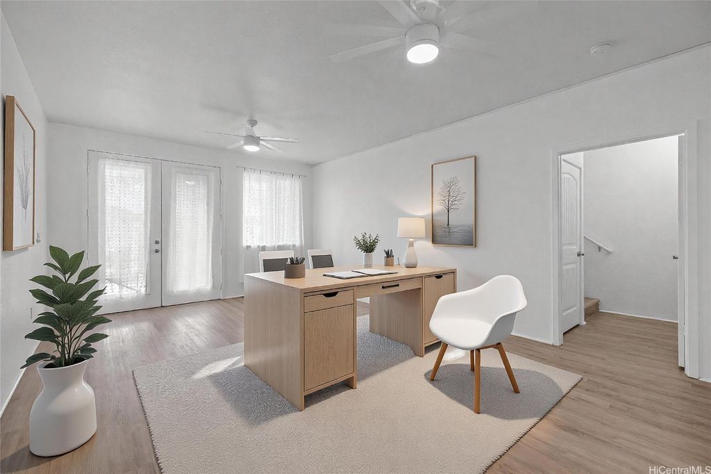 This is the largest unit with view in the community called Kahiku at Mehana. Conveniently located in heart of Kapolei. ADA bathroom on the ground level that is all in good condition and could conduct small business with a different access - "FLEX " unit. The main living space is on the 2nd level accompanied with modern kitchen, large living room and lanai with view. Price for a quick sale and Sell "as is" condition. This Community is well-maintained. This potential income property could yield approximately $3800-$4000 per month in rent according the previous history and fair rental market. The future land development in front of the balcony is supposed to have Commercial Mixed Use establishments according to the Urban Design Plan for Kapolei. ( Enclosed in Supplements as reference.)