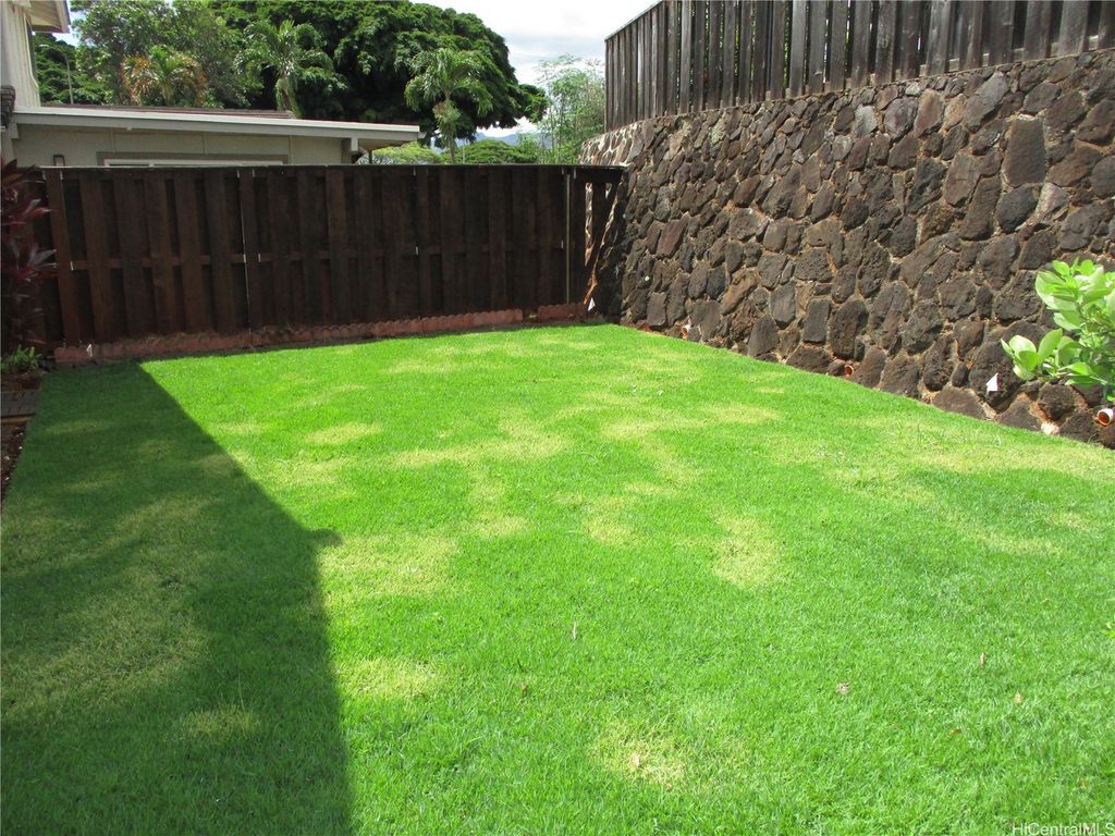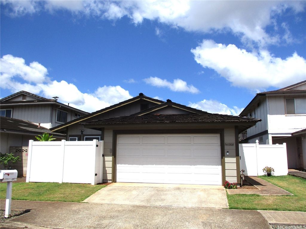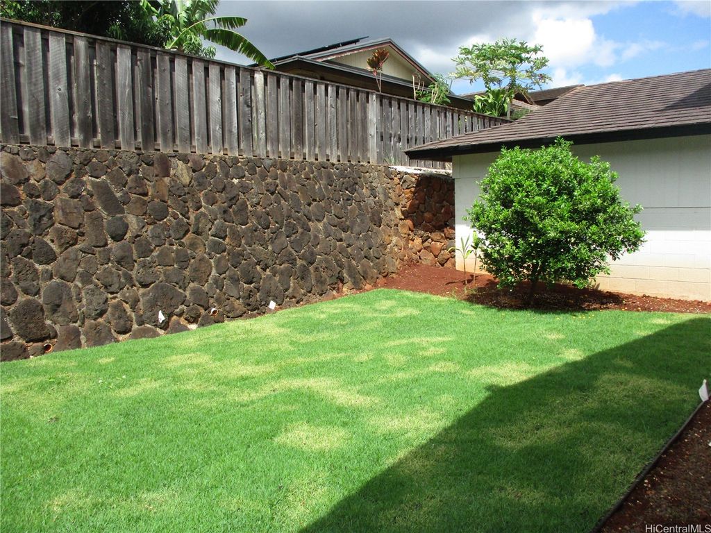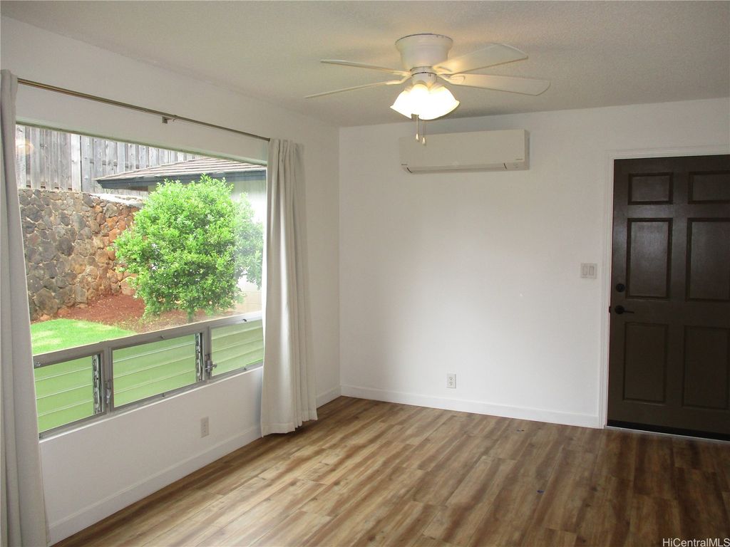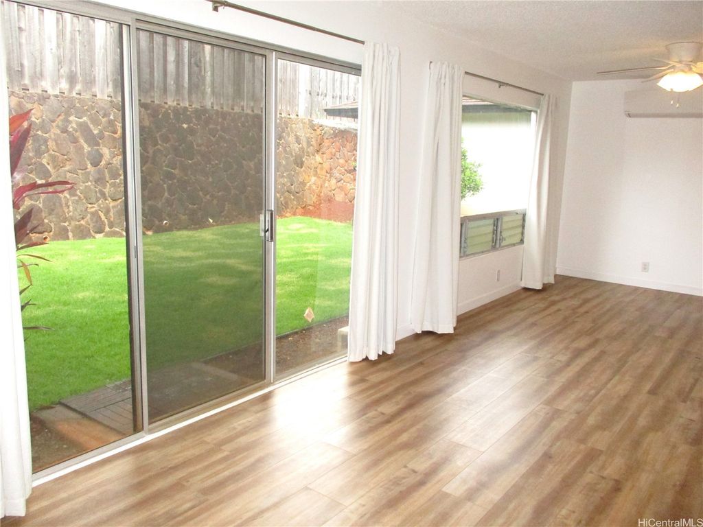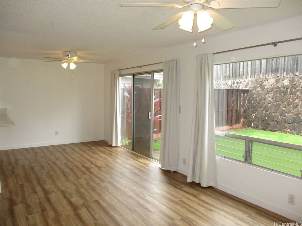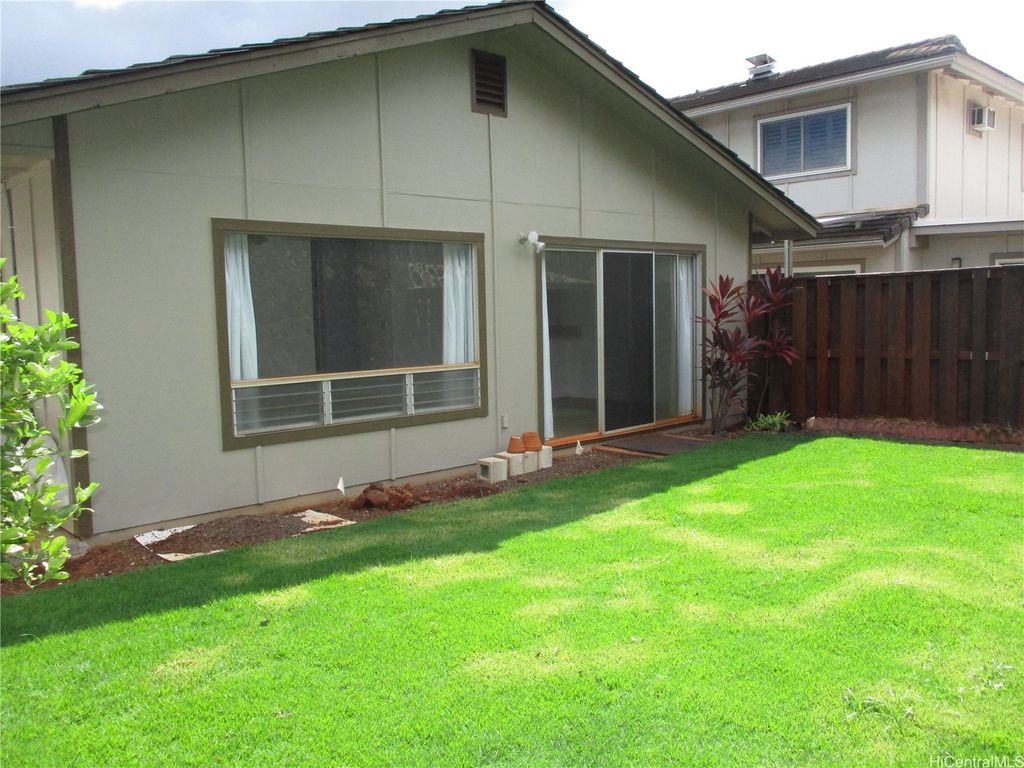 Total Remodel and Move In Ready at Waipio Gentry! Be the first to occupy - 3 bedroom, 2 bath home with enclosed garage. Bright and Cheery with Modern finishes. Quartz Counter tops in Kitchen, New Cabinets and modern fixtures, Luxury vinyl plank flooring, NEW Split AC in Living room, NEW Window AC's in All bedrooms, Ceiling fans in living room and bedrooms, window coverings throughout. Full sized washer/dryer. Gas water heater. Back yard has new landscaping and Sprinkler system. Tenants responsible for all Utilities and AC cleaning. Owner provides monthly yard service. No Pets allowed. No Smoking of any kind in or on property. Absolutely No Subleasing or AirBNB. All adults who intend to occupy the property must view. Serious inquiries with Documentable/Verifiable Income, good Credit history & References please. $25 per adult application fee. If approved, Renters Insurance with $300,000 liability coverage required prior to move in. Shown by appointment only. Available Now!