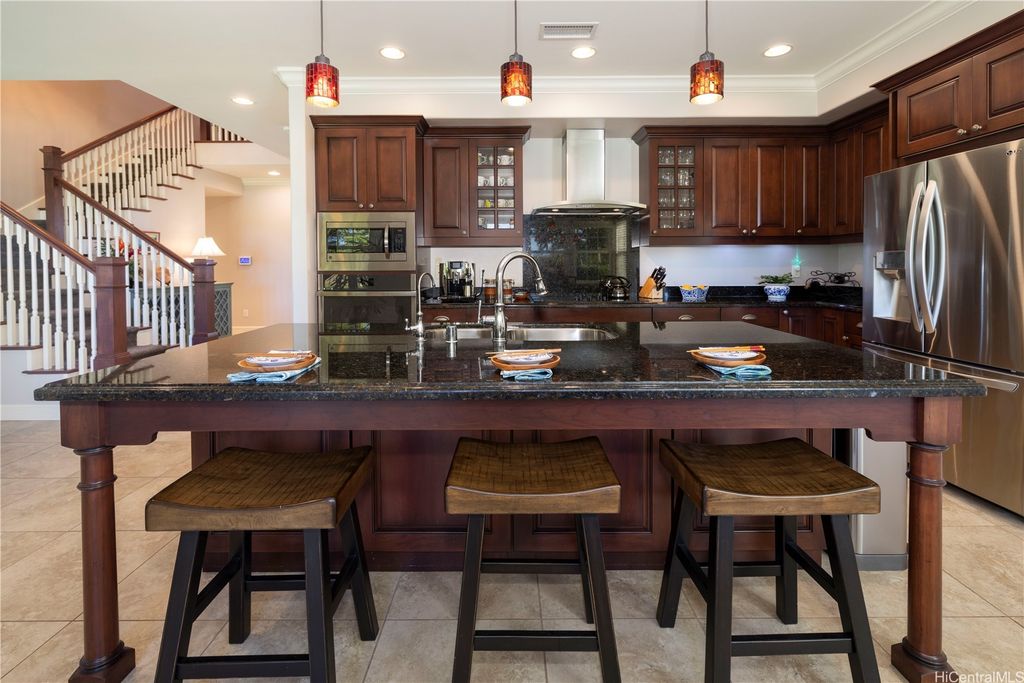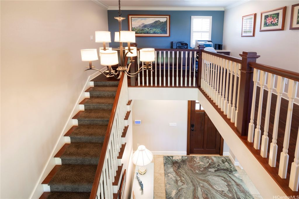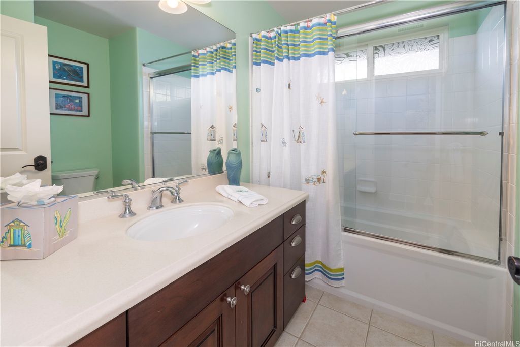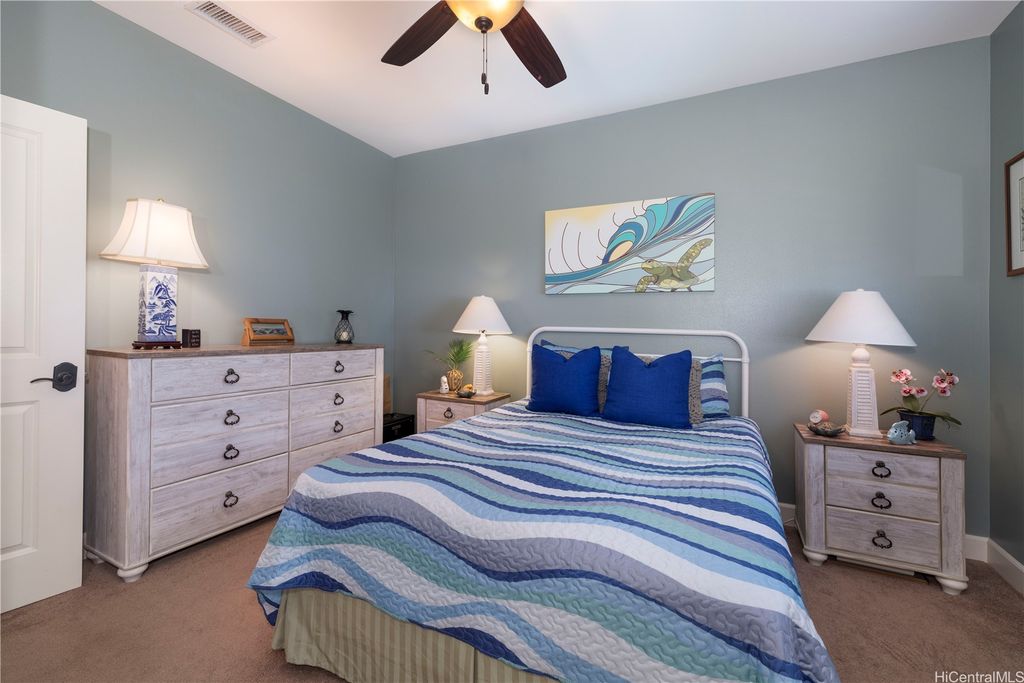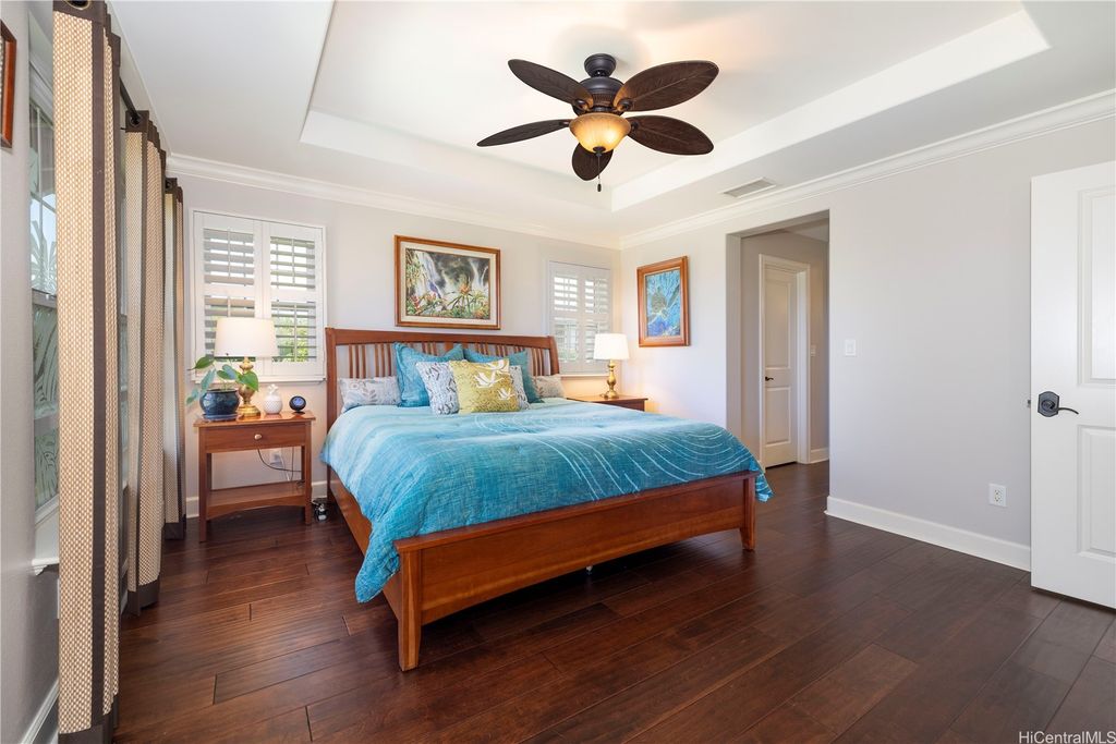 Fronting the Hoakalei Golf Course, this meticulous 4-bedroom home is refined island living! From the welcoming foyer, the French doors open to a bonus room"”ideal as a private office, reading retreat, or den"”along with a main-level bedroom & full bathroom, perfect for guests or multi-generational living. The modern kitchen has upgraded cabinetry, stainless steel appliances, granite counters, and a large island with additional seating. One of the home's most captivating features is the expansive yard"”a canvas to design a pool, tropical gardens, or an entertainer's paradise, this oversized outdoor retreat is the ultimate private oasis! Energy efficient w/24-panel owned, net-metered photovoltaic system, 2 solar hot water panels, a whole-home water softening system, and reverse osmosis drinking water as an added bonus. Located in an award winning resort community, residents enjoy HOA amenities including high-speed internet & cable, pool and spa, fitness center, tennis and pickleball courts, a dog park, and 3 playgrounds. Just moments away, you'll find beaches, shopping, dining, and the best of island living. This is more than a home, it's a lifestyle with golf course living!