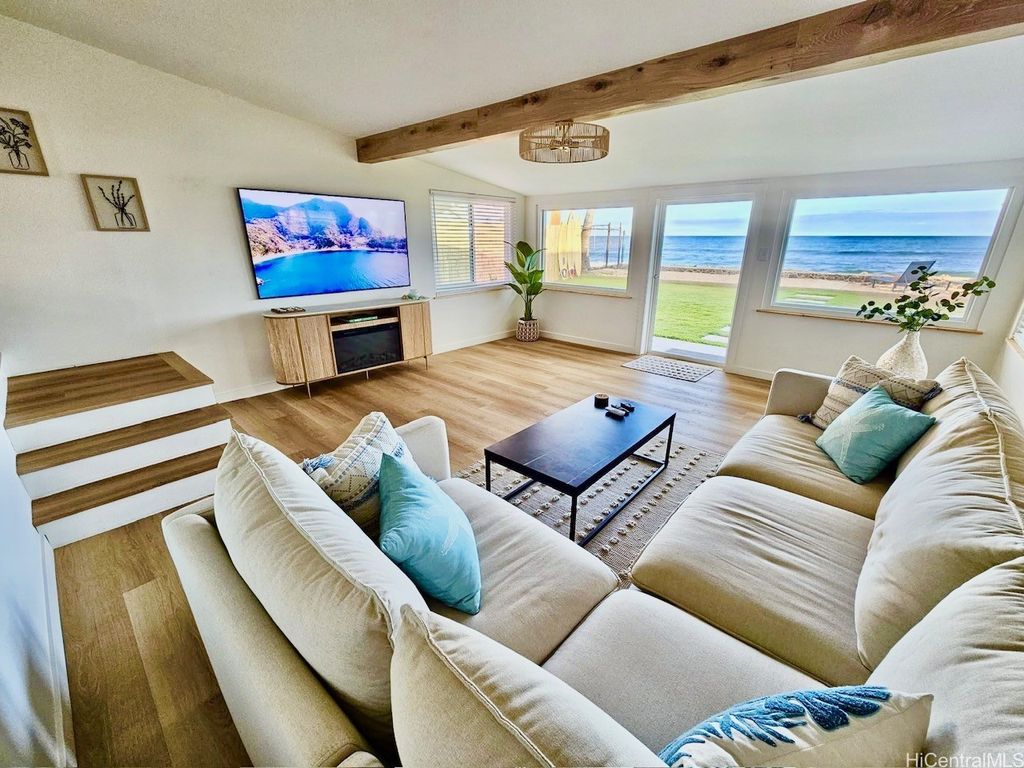 Experience the best of island living in this beautifully renovated, fully furnished beachfront home. The residence showcases modern upgrades throughout, including luxury vinyl plank flooring, quartz countertops, and stainless steel appliances. Comfort is ensured with ceiling fans and split air-conditioning units, while a private cabana offers an ideal space to relax and take in the ocean views. Enjoy direct access to the beach just steps from your door, making it easy to start your mornings with a stroll along the shore or unwind with a sunset walk in the evenings. The property is also conveniently located near shops, gas stations, schools, and other everyday amenities. This home welcomes pets with a refundable pet deposit, and tenants are responsible for all utilities. ($5500 per month for a 6-month rental, $7,500 per month for a 3-month rental/ $9,000 for a 1-month rental) Available for immediate move-in.
