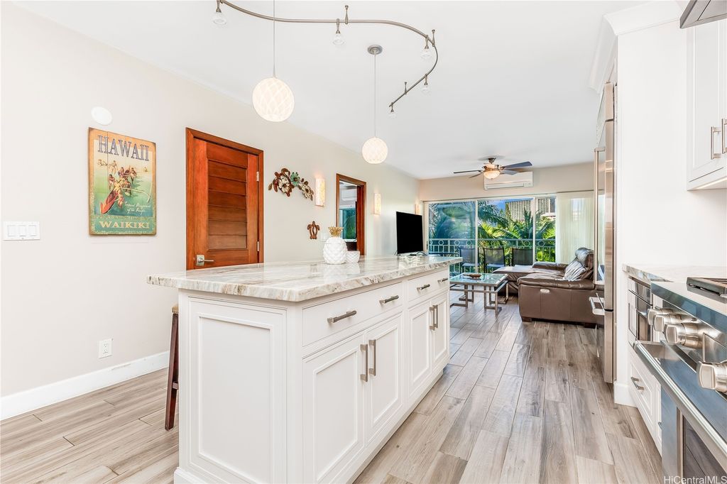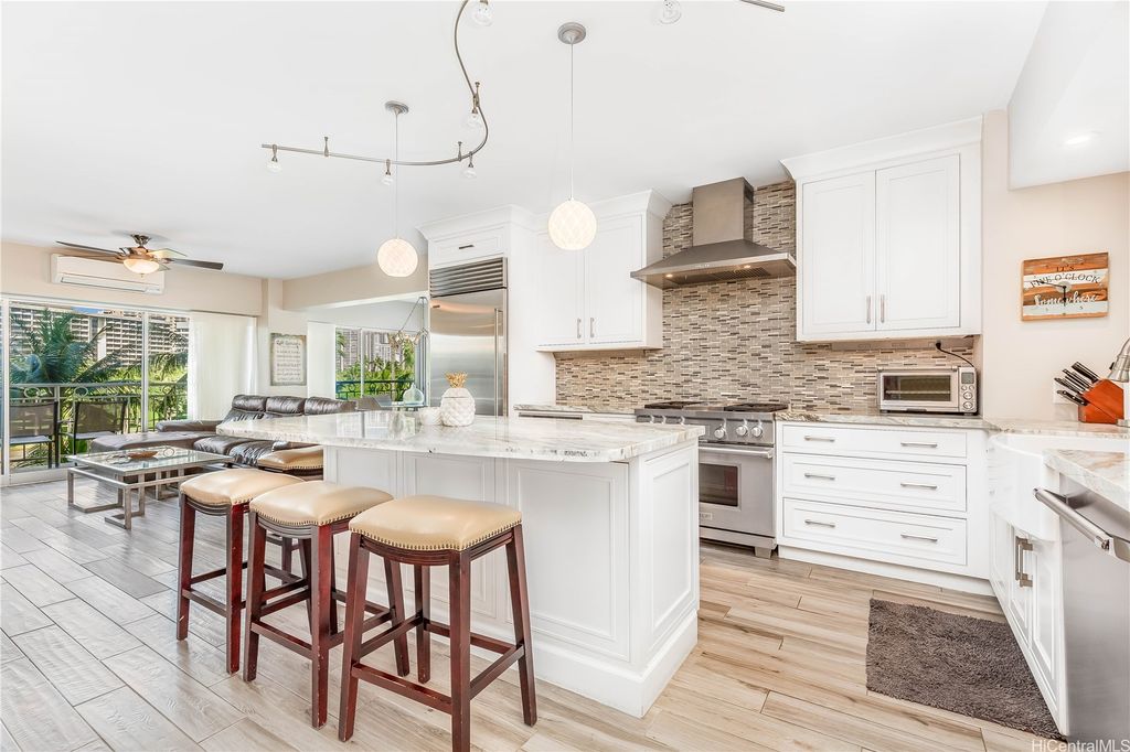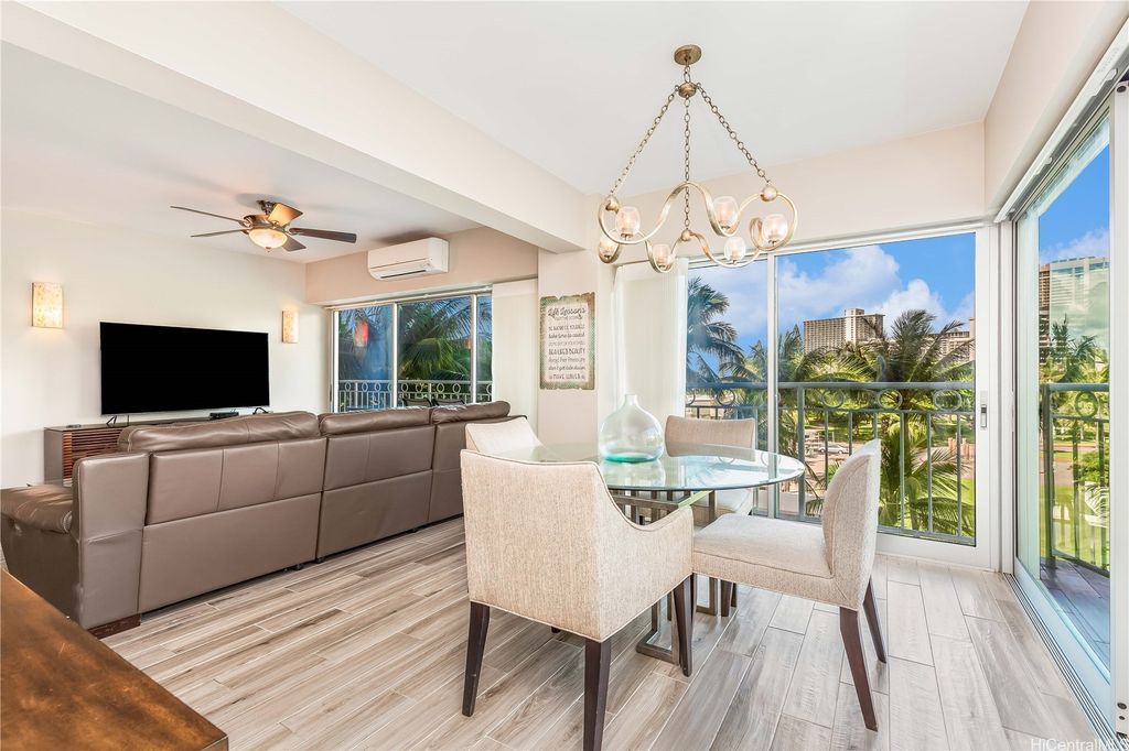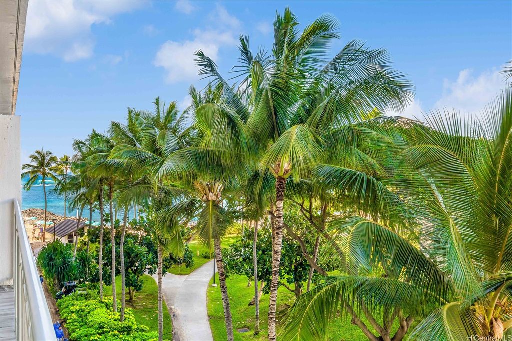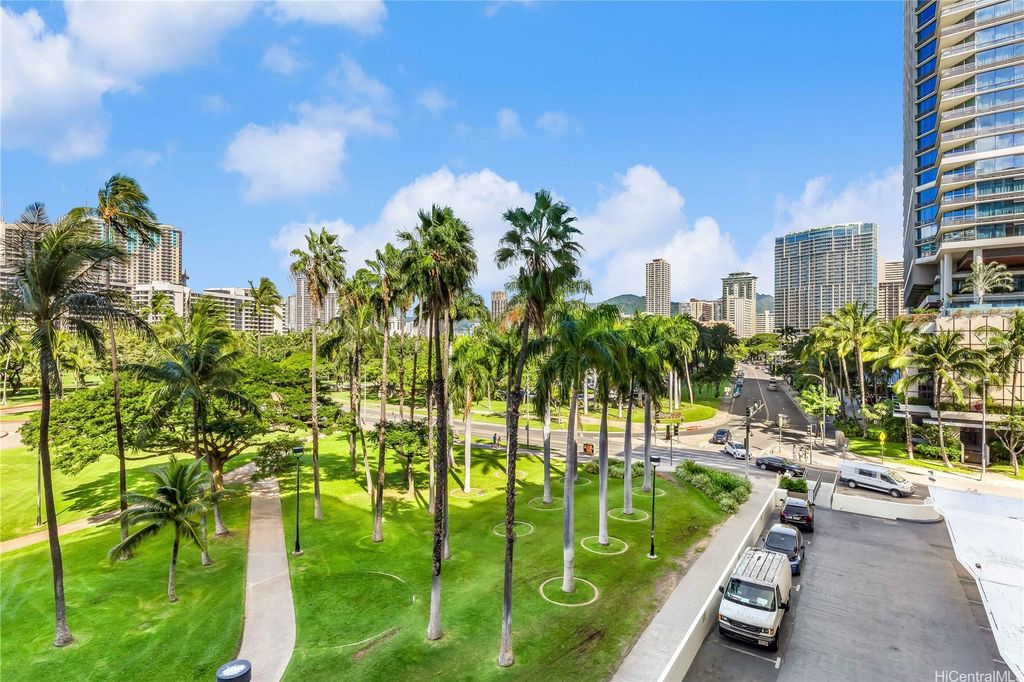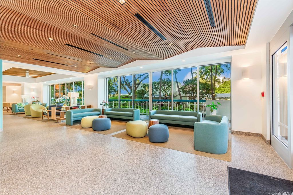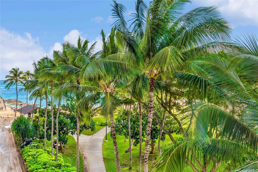 Fully furnished corner unit at well known the only beachfront condominium in Waikiki. Being fully remodeled in 2017, the unit is in excellent condition with updated and stylish kitchen and baths. Split A/Cs, microwave, oven, refrigerator, washer, dryer and motorized curtain are equipped. Open up all the windows and enjoy a wide open view of Fort DeRussy Park. With the new elevator installed in early 2023 and the lobby renovation completed in December 2023, the building has a fresh air. A second to the beach, popular take out restaurant Steak Shack on the ground floor and all the fun in walking distance.