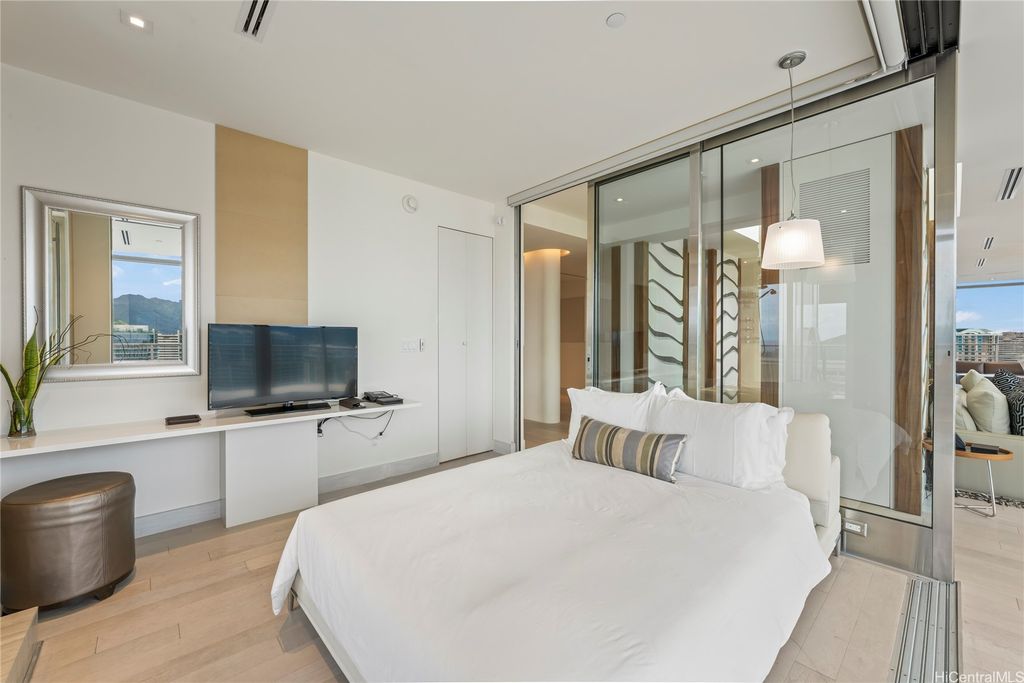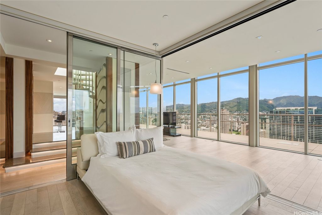 Enjoy luxury living in an incredible 180 degree view penthouse the Ka La'i Waikiki Beach, LXR Hotels & Resorts Hotel/Condo! (former Trump International Hotel Waikiki) Common area will be renovated beautifully in 2025. From the moment you enter, you are enthralled with the tasteful decor, beautiful crystal dining chandelier, large panel windows encompassing the breathtaking views, and spiral staircase. Go up the spiral staircase and enjoy spacious rooftop lanai with jacuzzi. This is the time to own an iconic luxurious property right in the vivacious park of Waikiki. Short stroll to well renowned stores, sandy beaches, and restaurants.