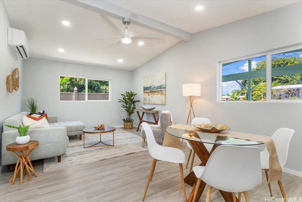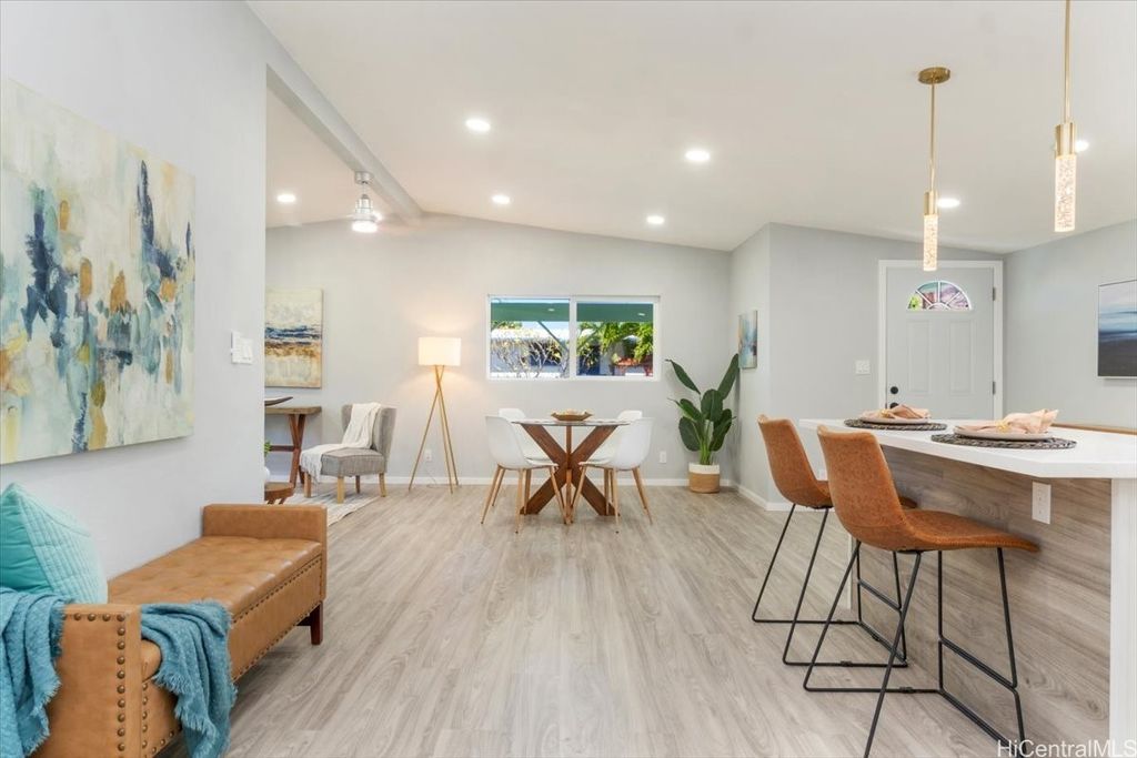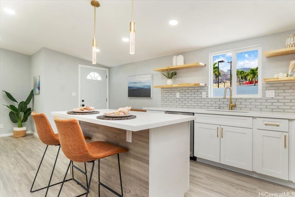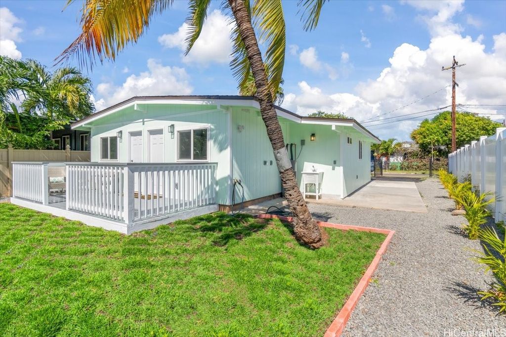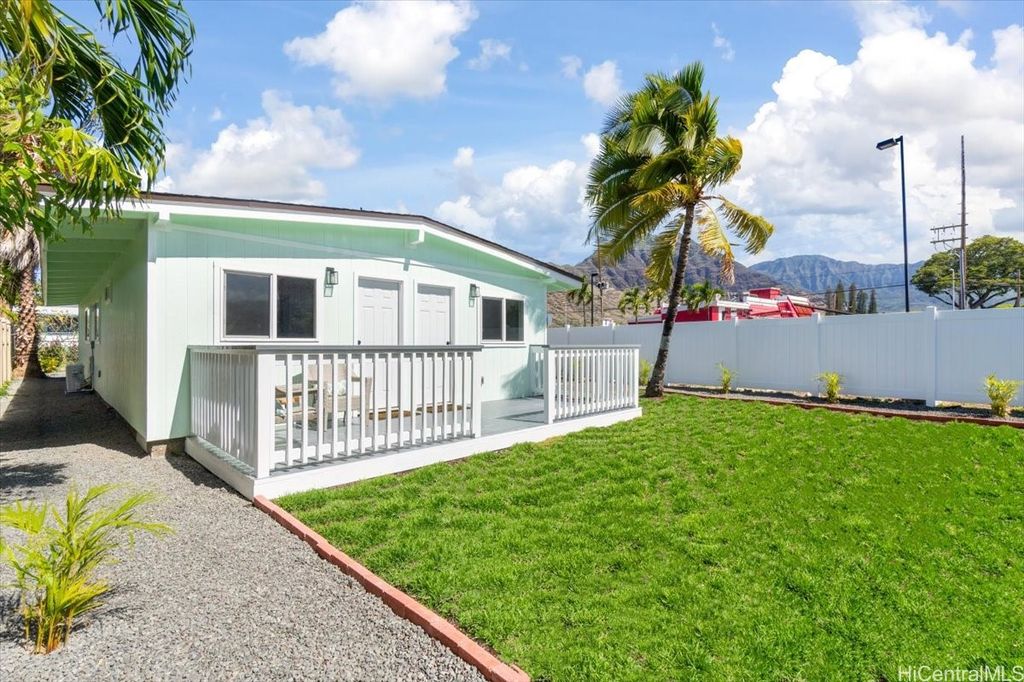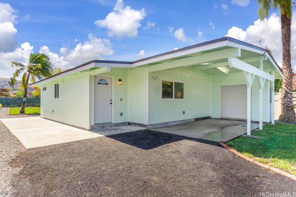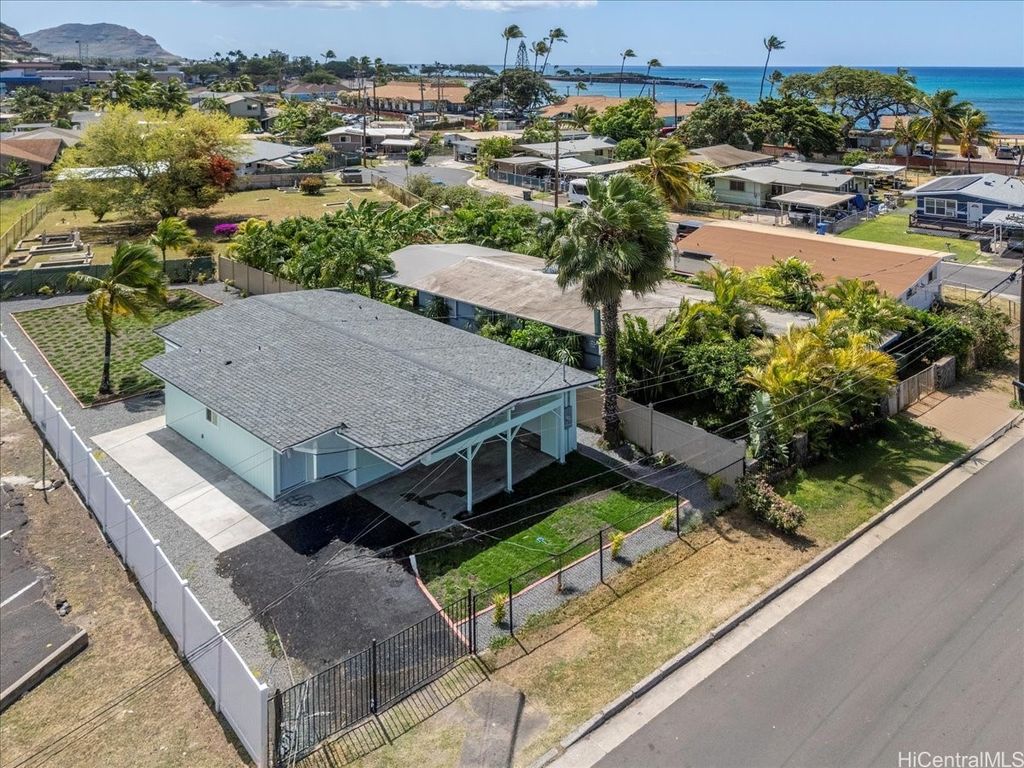 This beautifully renovated 3-bedroom, 2-bath single-level home, ideal for 1st time buyers or those seeking a low-maintenance lifestyle! This property is in excellent move-in condition, featuring a new roof, new windows, and double-wall construction for added comfort. The extensive upgrades include a new electrical system with 200 amp service, ensuring ample power for all your needs. Inside you'll discover a modern, functional layout with stylish vinyl floor tiles throughout, recessed LED lighting that brightens every corner. The kitchen and living area flow seamlessly together, creating a perfect space for entertaining or relaxing. Enjoy the newly renovated kitchen and bathrooms, complete with contemporary fixtures that elevate the home's aesthetic. Outside, the spacious backyard invites you to indulge in gardening or simply enjoy the open space. Additional features include a one-car carport with storage and additional parking in the driveway. Nestled within the community of Pokai Bay, you'll find yourself just moments away from sandy shore beach, Tamura Supermarket, local eateries, shops, along with a host of other amenities and essentials.