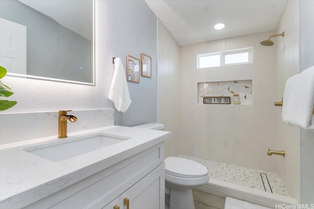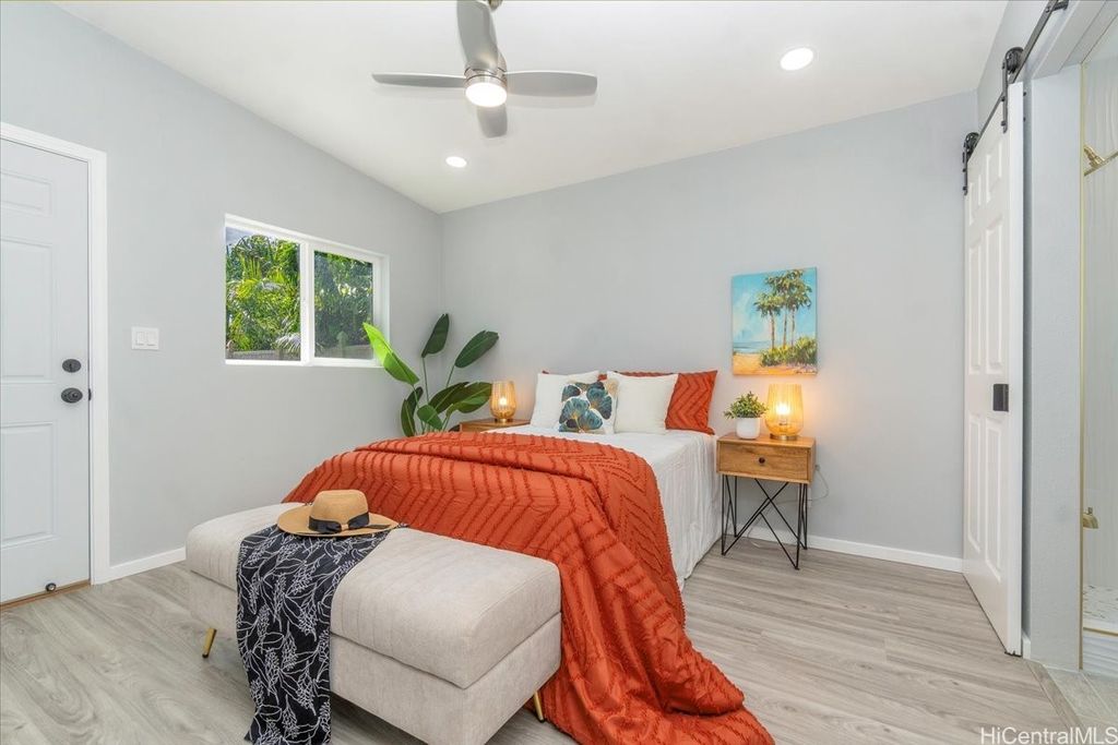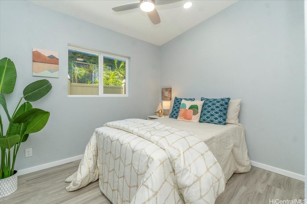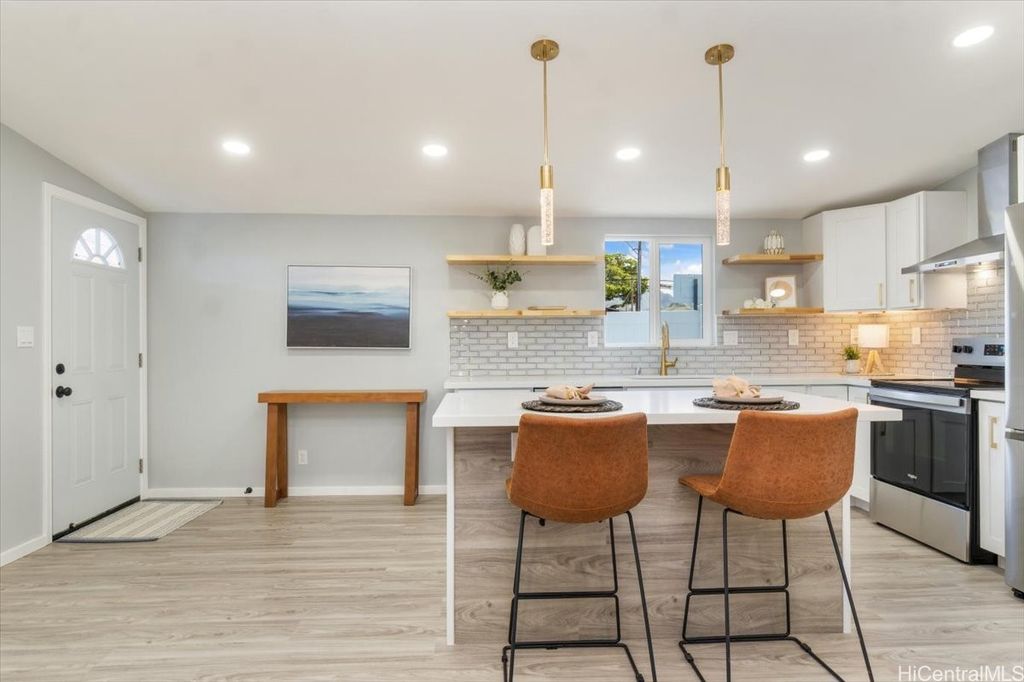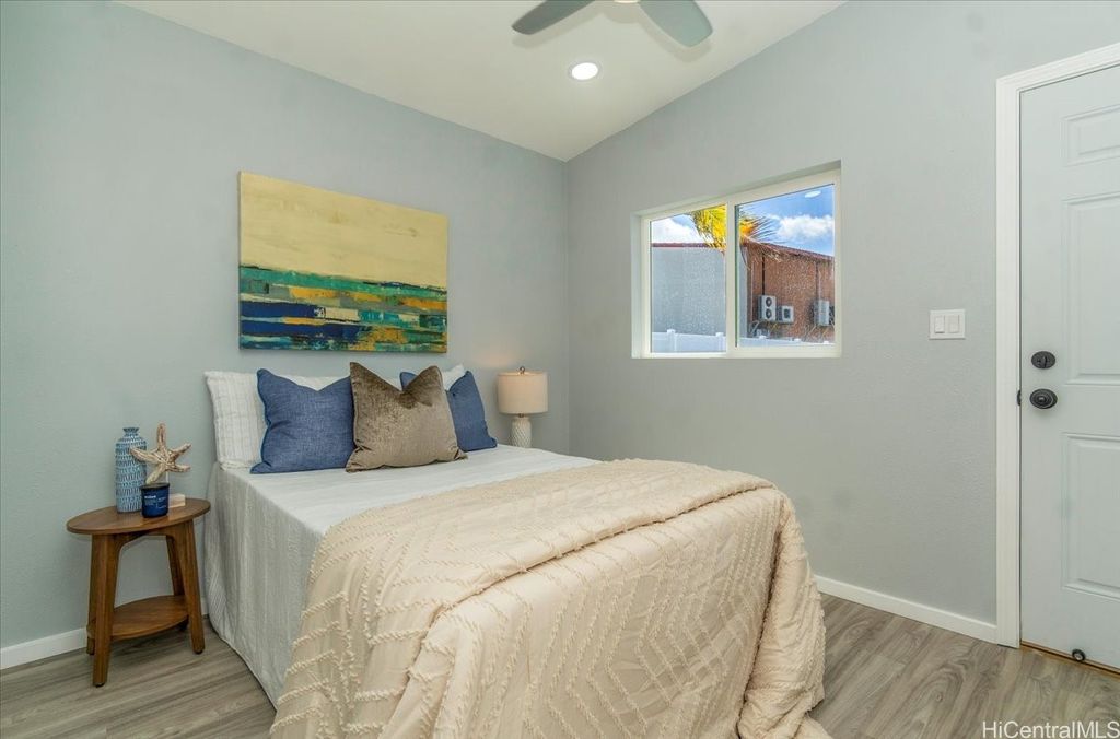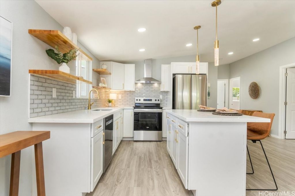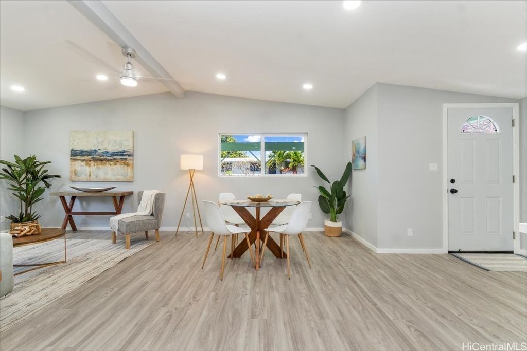 This beautifully renovated 3-bedroom, 2-bath single-level home, ideal for 1st time buyers or those seeking a low-maintenance lifestyle! This property is in excellent move-in condition, featuring a new roof, new windows, and double-wall construction for added comfort. The extensive upgrades include a new electrical system with 200 amp service, ensuring ample power for all your needs. Inside you'll discover a modern, functional layout with stylish vinyl floor tiles throughout, recessed LED lighting that brightens every corner. The kitchen and living area flow seamlessly together, creating a perfect space for entertaining or relaxing. Enjoy the newly renovated kitchen and bathrooms, complete with contemporary fixtures that elevate the home's aesthetic. Outside, the spacious backyard invites you to indulge in gardening or simply enjoy the open space. Additional features include a one-car carport with storage and additional parking in the driveway. Nestled within the community of Pokai Bay, you'll find yourself just moments away from sandy shore beach, Tamura Supermarket, local eateries, shops, along with a host of other amenities and essentials.