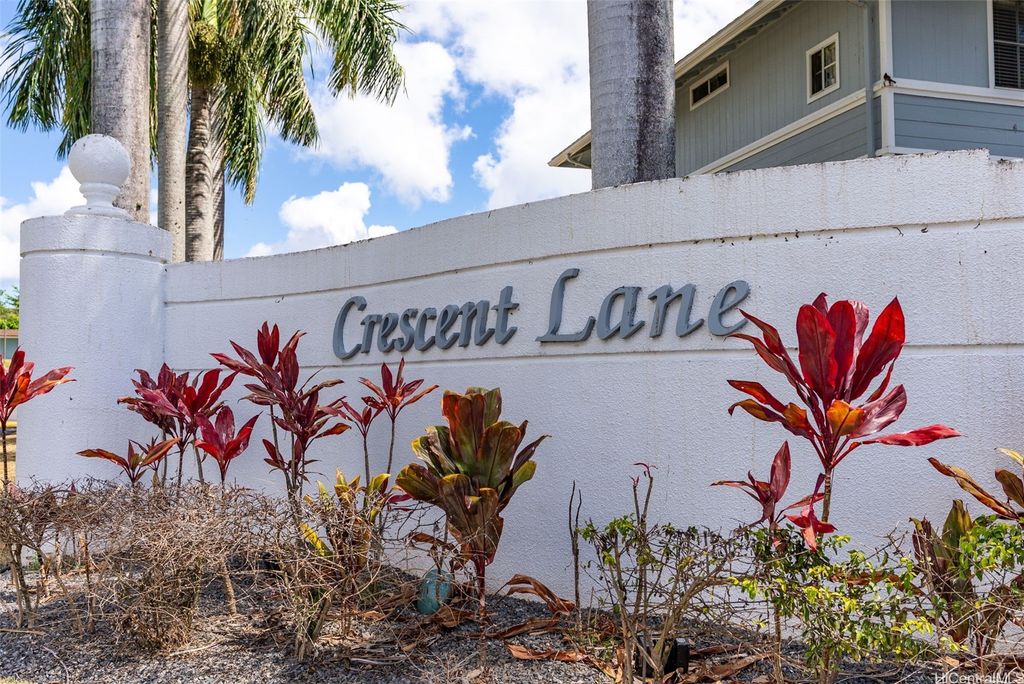 Welcome to Crescent Lane in Mililani Mauka! This ground-floor 2-bedroom, 2-bath unit offers a functional layout in a highly desired community. The open living area flows to a private lanai, perfect for fresh air and outdoor living. The kitchen features ample cabinet space, while the primary bedroom includes an en suite bath and closet. A second bedroom and full bath provide flexibility for family, guests, or a home office. This unit offers ADA accessible hallways for added ease and two assigned parking stalls, including an access aisle between them for convenience. As part of the Mililani Town Association, residents enjoy recreation centers, pools, and parks, with shopping, dining, and schools nearby. Ideal for first-time buyers, downsizers, or investors, this home is a wonderful opportunity to experience Mililani Mauka living.