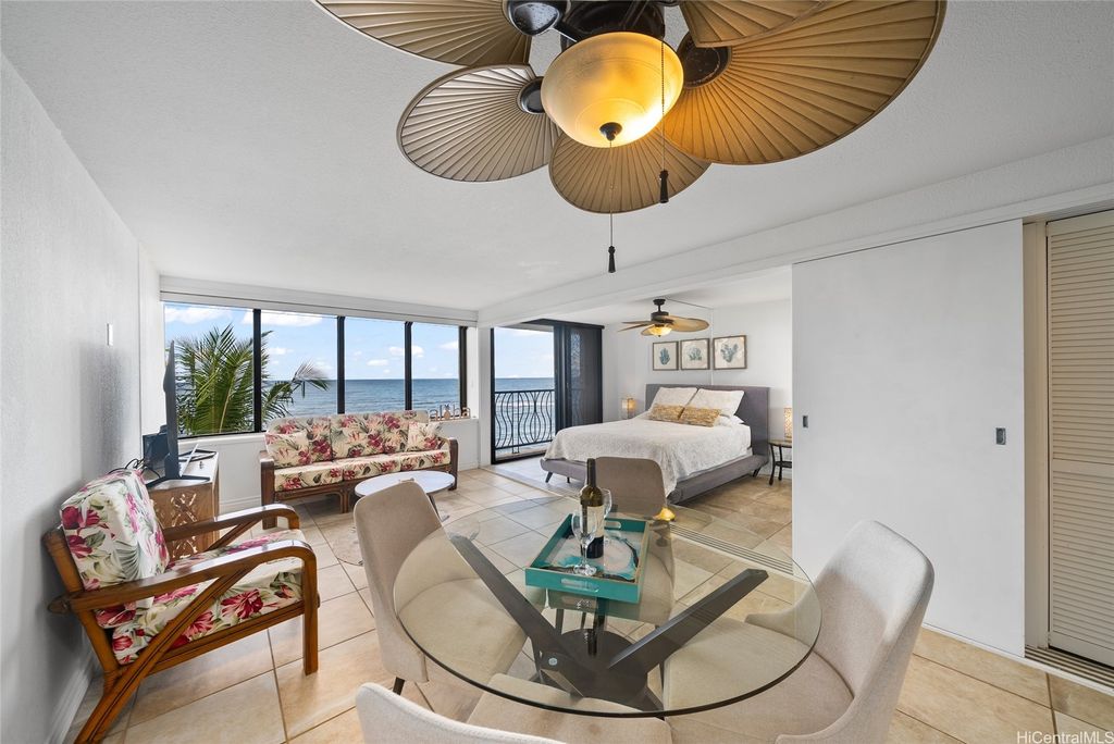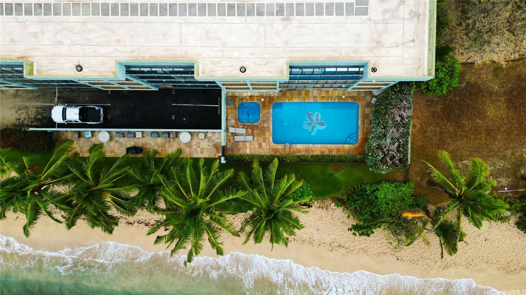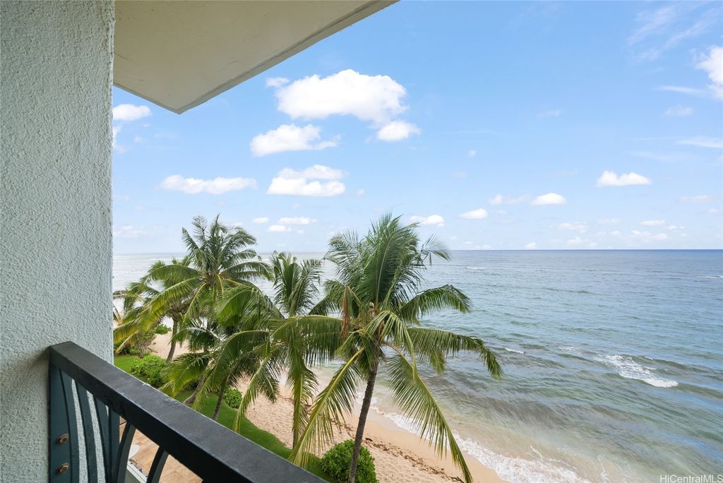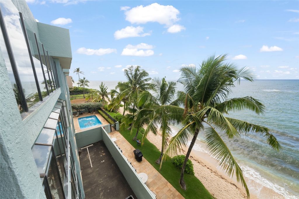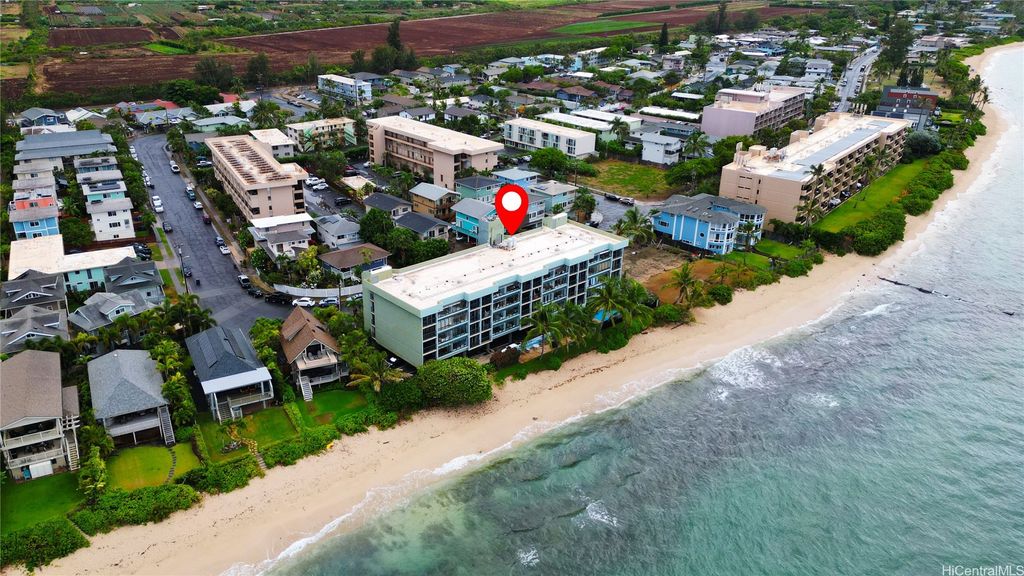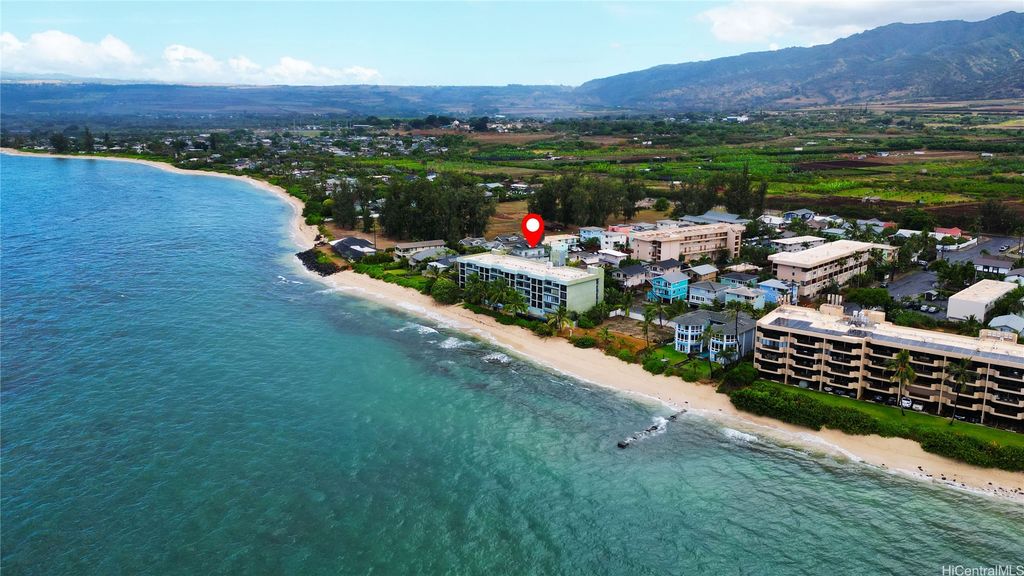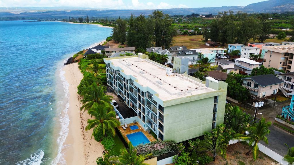 Rarely available top-floor 2BR/2BA residence at Sunset Shores in Waialua. From the bedroom adjacent to the lanai, it feels as though you are sleeping above the ocean, with the rhythmic sound of waves and cooling tradewinds drifting through. Awaken to sweeping, unobstructed ocean vistas and close each day with magnificent sunsets from your private lanai. The open, light-filled floor plan captures the essence of refined coastal living. Amenities include a beachfront pool, spa, BBQ pavilion, and secured entry. Ideally situated just minutes from historic Haleiwa Town, offering boutique shopping, dining, and world-class surf. Fee simple. A rare opportunity to own an elegant oceanfront retreat on Oahu's North Shore.