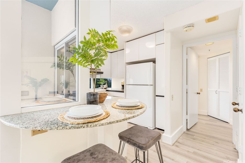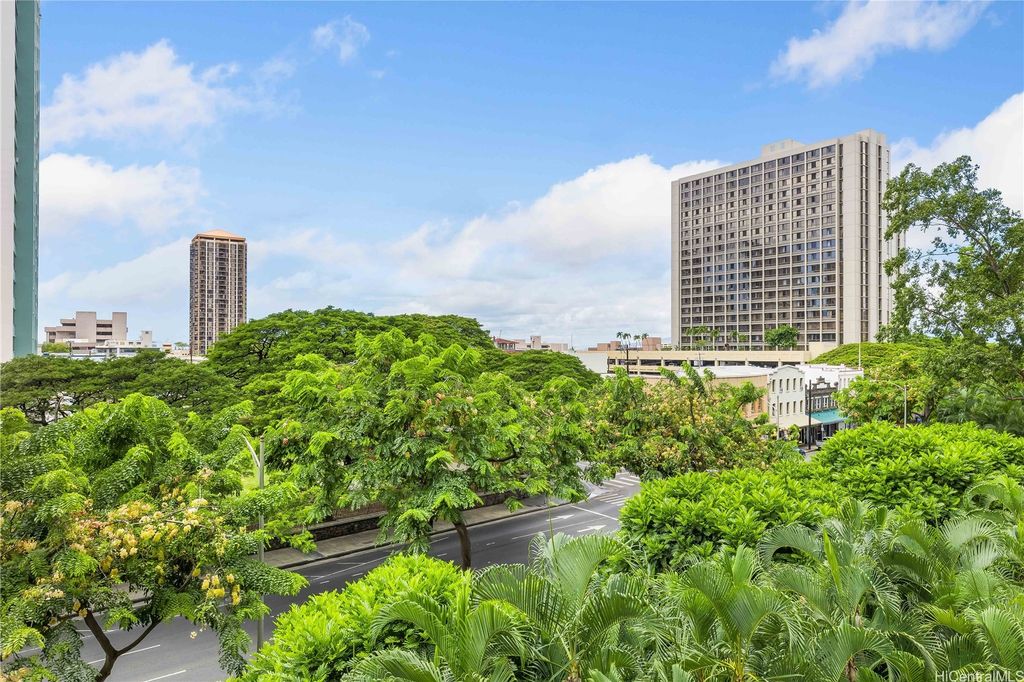 $5,000 Seller to credit buyer(s) towards closing costs! This 2-bedroom, 2-bath condo features a newly painted interior, 894 sq. ft. of living space, and a 129 sq. ft. lanai perfect for relaxing with city views. Includes 1 assigned covered parking stall in a secure, well-maintained building and a storage unit by the parking stall to add convenience. New dishwasher to be installed this month! Enjoy an exceptional array of amenities: heated swimming pool, whirlpool, sauna, fitness facilities, tennis and basketball courts, bowling alley, billiards, BBQ pagoda beside a koi pond, walking/jogging path, car wash area, and ample guest parking. Located just a short stroll from Chinatown's vibrant restaurants, coffee spots, and boutique shopping, this home blends urban convenience with resort-style comfort. Pet friendly (please verify)
