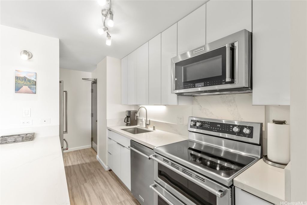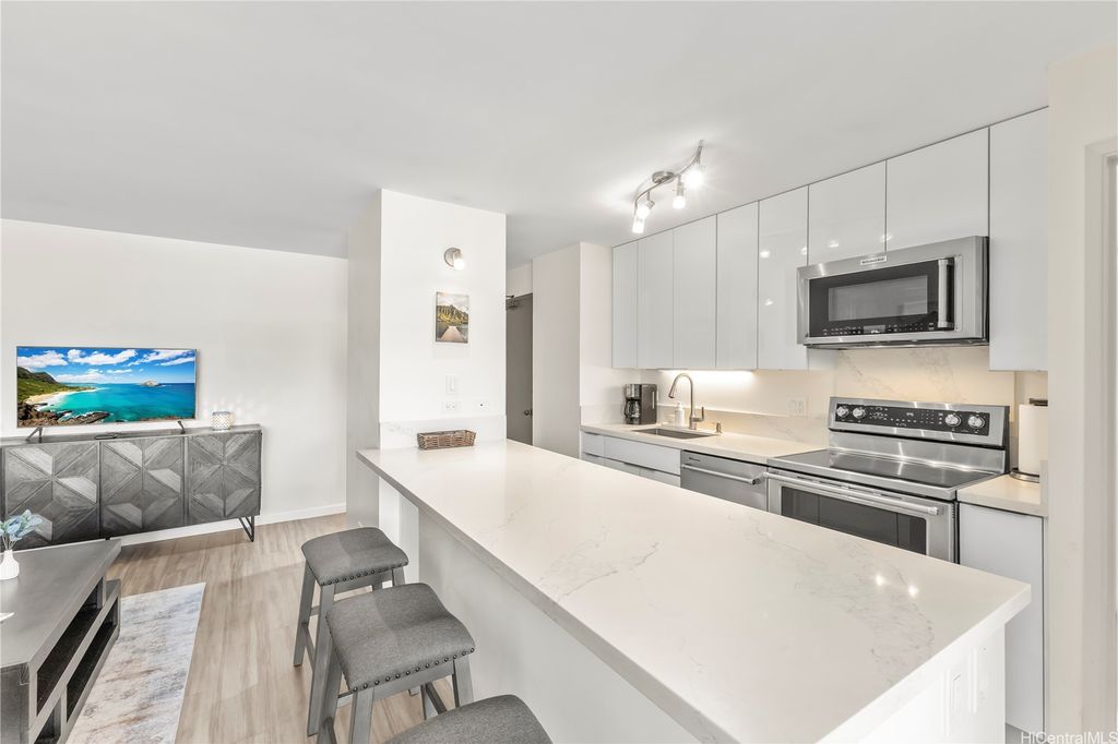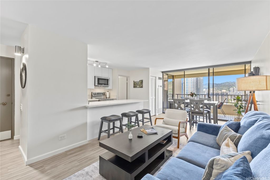 Renovated Furnished 1-Bedroom Condo with Parking | Available from September 15, 2025 through May 31, 2026 (Minimum 6-Month Lease) | Rent: $3,700/month + GETax | Security Deposit: $3,700 | Lease Term: Minimum 6 months (from Sept 15, 2025 through May 31, 2026) | Utilities: Tenant pays electricity. All other utilities included. | Wi-Fi & Cable: Included | No pets, no smoking | Beautifully renovated and fully furnished 1-bedroom, 1-bathroom condo with 1 assigned parking stall in the highly desirable Discovery Bay building. The unit is on the cooler side of the building and features an in-unit washer & dryer. It comes fully stocked with dishes, utensils, towels, and small appliances, while the kitchen is equipped with premium KitchenAid appliances. From the bedroom and patio, enjoy refreshing mountain and city views as well as outrigger canoes paddling by on the Ala Wai. | Building Amenities: Swimming pool, Sauna, Fitness center, 24-hour security | Location Highlights: Short walk to the beach, Near Ala Moana Shopping Center and Waikiki, Surrounded by supermarkets, restaurants, and many shops | Enjoy modern island living with resort-style amenities in a prime Waikiki location!