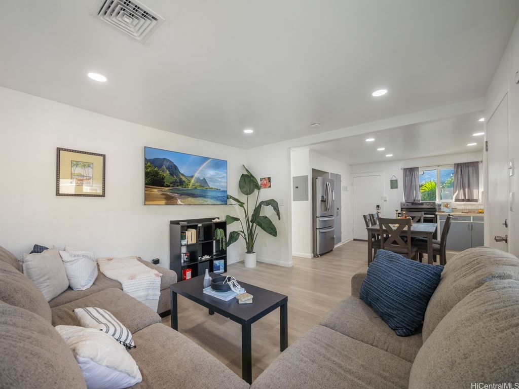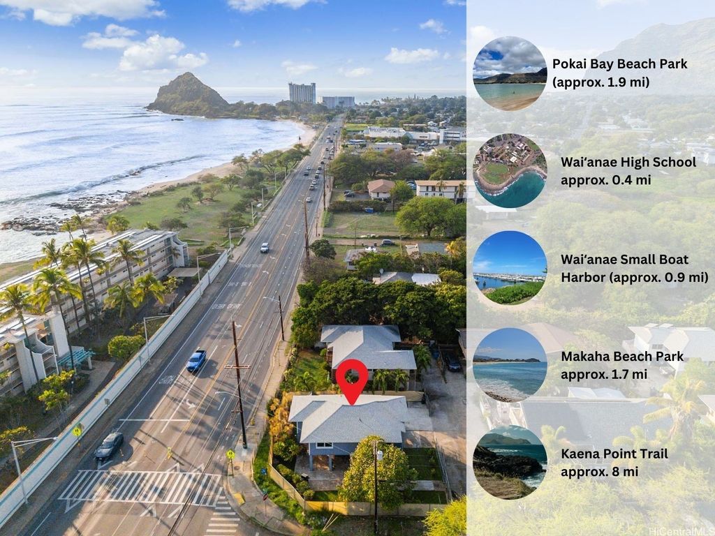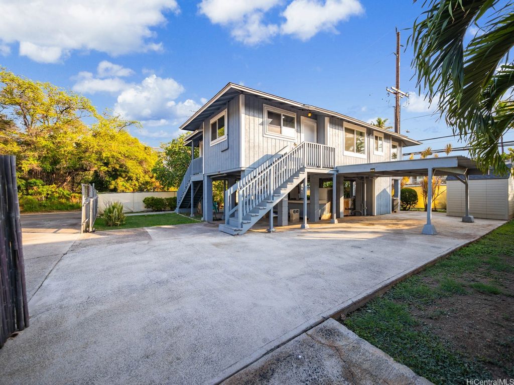Open House Sunday 10/5, 2-5pm. Incredible value! This single family home features central AC, double wall construction, and no HOA fees. Additional upgrades include vinyl windows, recessed lighting, and two fully renovated bathrooms. All of the bedrooms are a good size, while the spacious primary suite has a walk-in shower with dual rainfall heads. Enjoy views of Mount Ka'ala (Oahu's tallest mountain) and the magnificent Waianae Mountain Range from your kitchen and living room, plus ocean views from west-facing rooms. The downstairs doubles your usable space with a lounge/entertaining area, sink, countertop, storage, and laundry. Other highlights are: covered parking, bonus storage shed, and a fully fenced corner lot with a grassy yard, mature landscaping, and a plumeria tree that insists on being the star of the yard and a perfect living room backdrop. Located directly across from the beach and near Wai"˜anae High School. Plus minutes to Poka"˜i Bay and Makaha Beach "” some of West Sides best beaches to snorkel, swim, surf and more! Not a CPR or an association. Easy to show. VA & USDA approved for 0% down loan options!