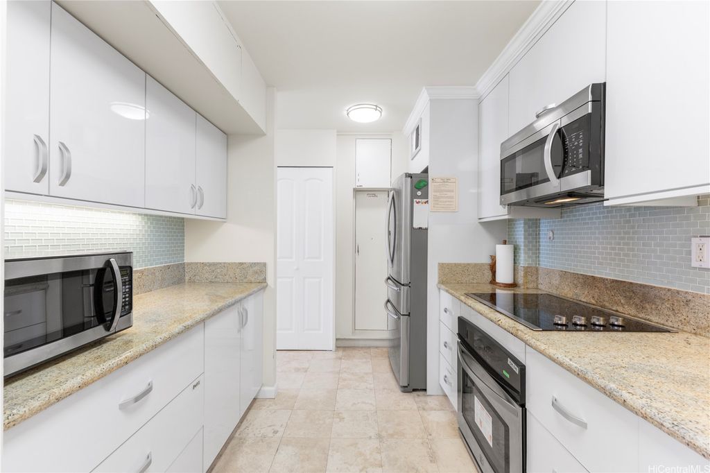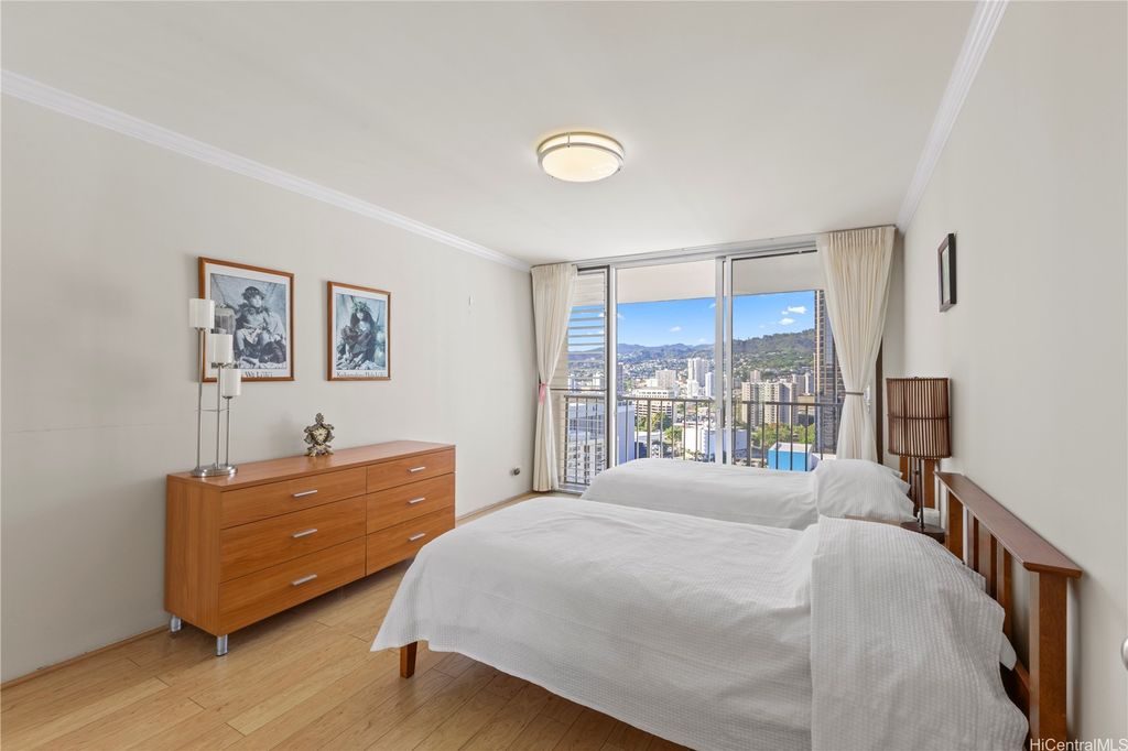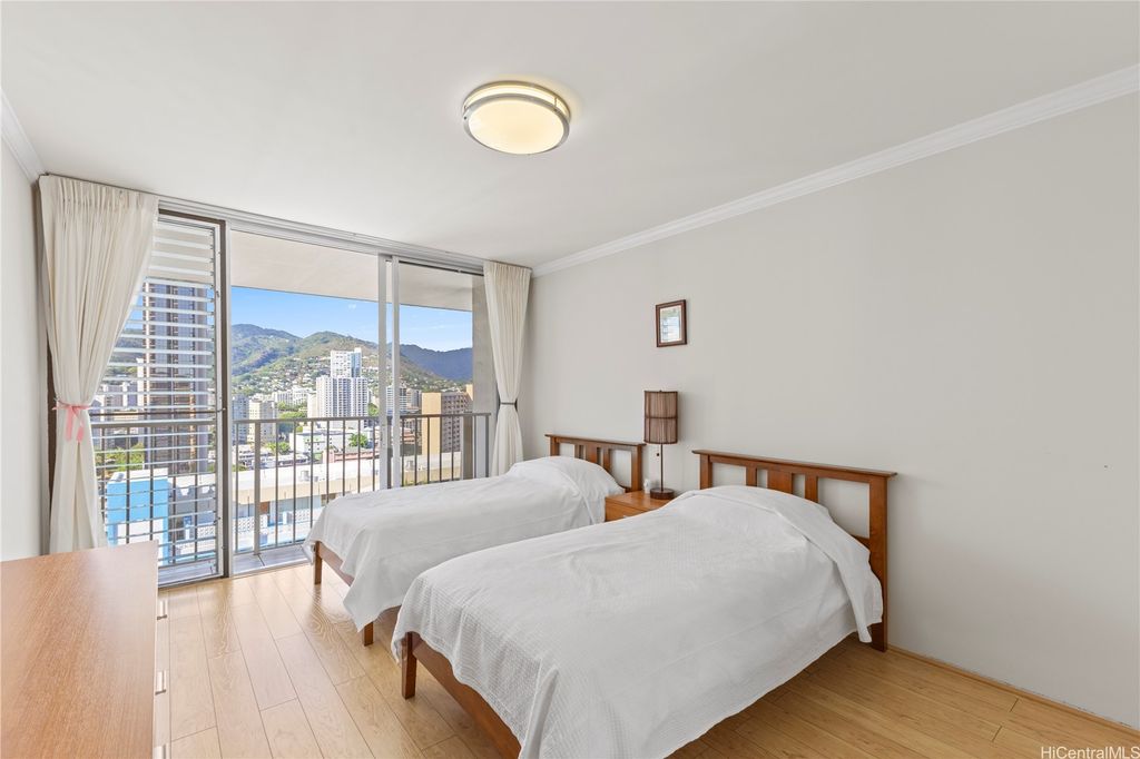 Here's your chance to own the coveted penthouse unit at Princess Leilani on the cooler, mountain-facing side of the building--a rare offering in this desirable building. This spacious two-bedroom, two-bathroom, with two assigned parking stalls, is one of the few of its kind to come on the market in recent years, making it a truly special find. The unit has been partially remodeled with newer appliances and stylish engineered wood flooring throughout, creating a clean and modern feel. Residents also enjoy a host of amenities, including a sparkling pool, relaxing sauna, well-equipped exercise room, car wash area, and a welcoming indoor lounge. Experience the comfort, convenience, and exclusivity of penthouse living at Princess Leilani!