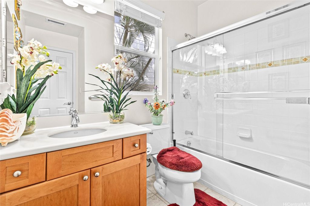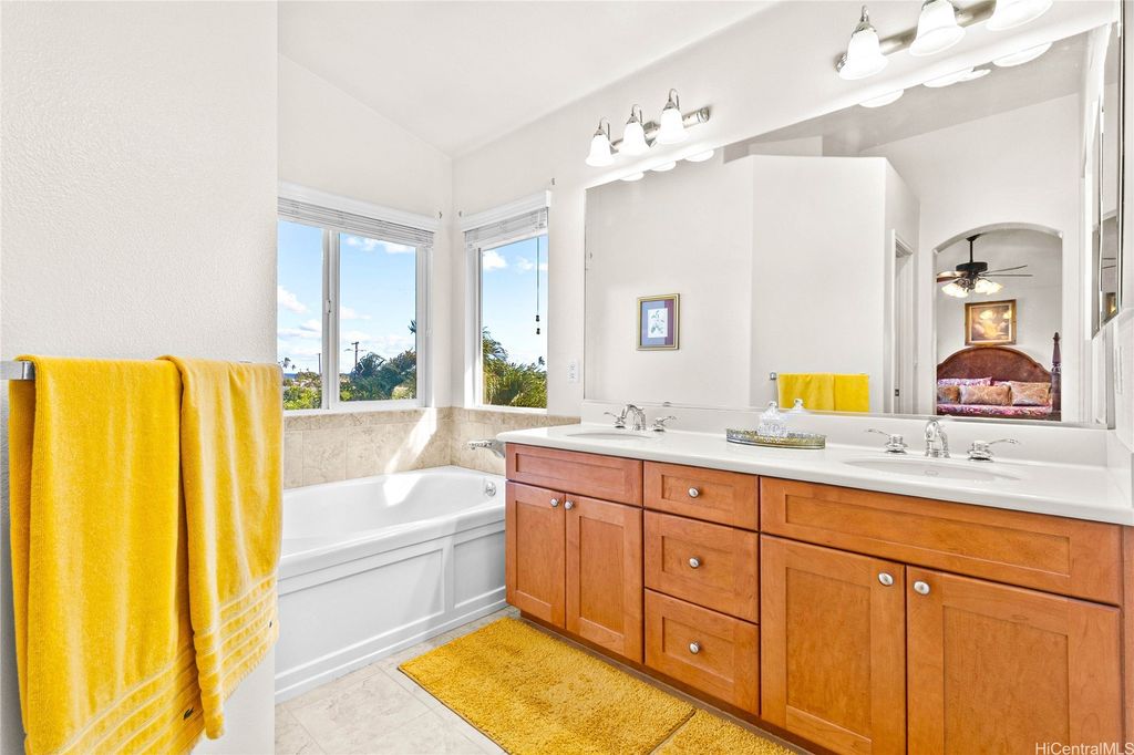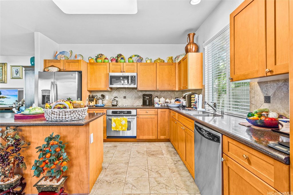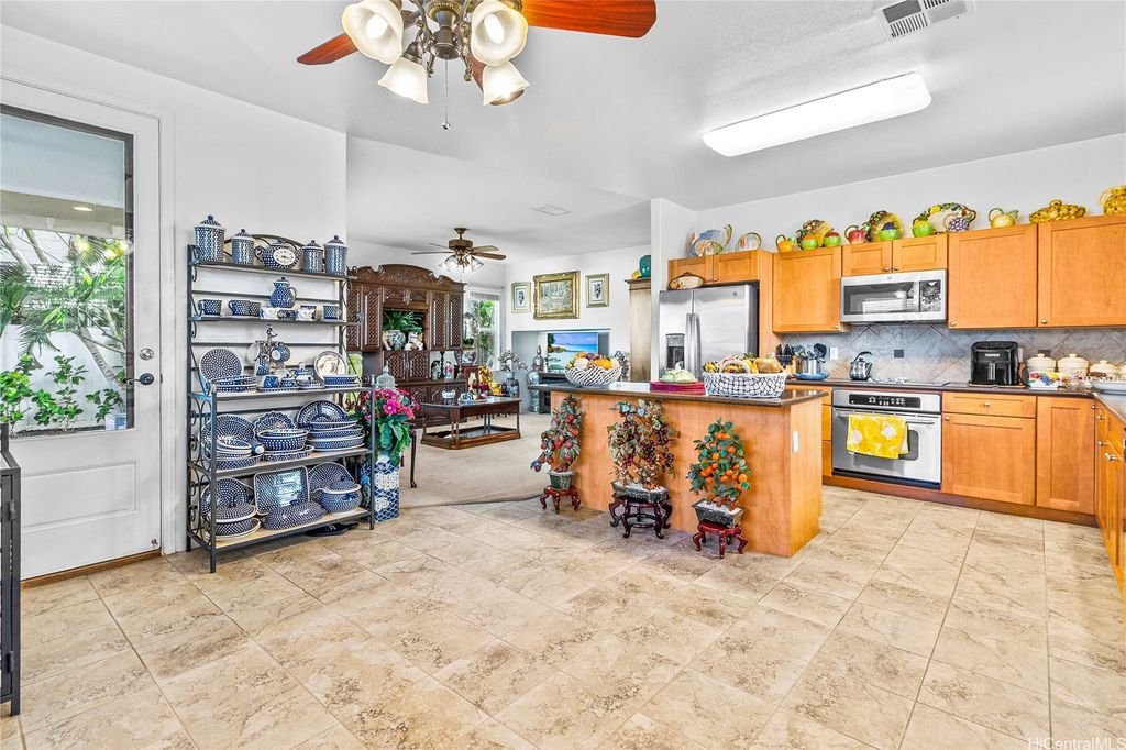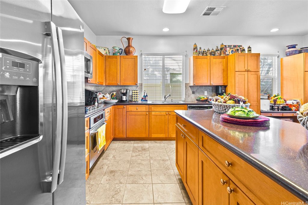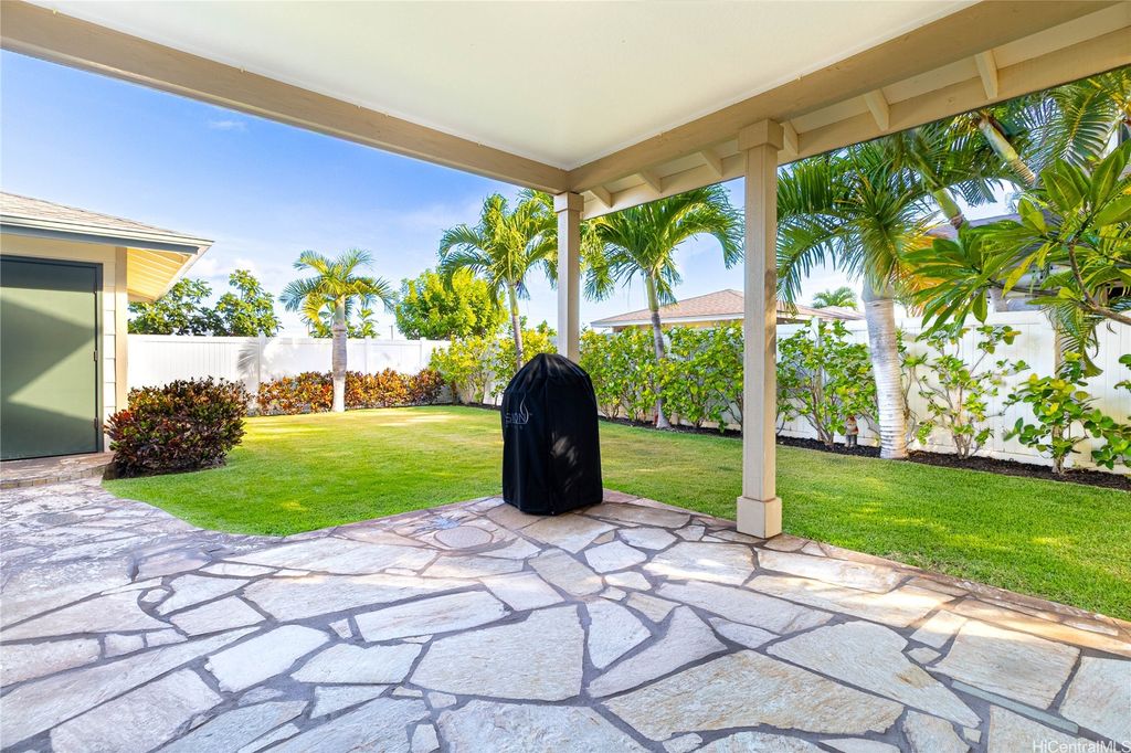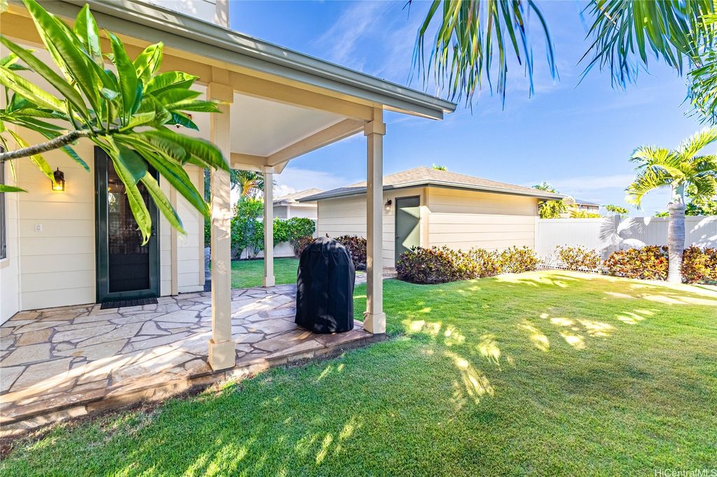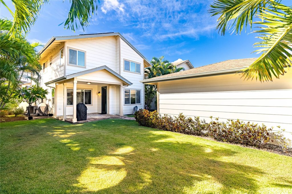 $25,000 PRICE REDUCTION!! First time on the market! This 5-bedroom, 3-bath Ocean Pointe home offers 2,196 sq. ft. of beautifully designed living space, perfectly set on a large 6,193 sq. ft. lot! The open layout, soaring ceilings, and natural light create an inviting atmosphere for gatherings, relaxation, and everyday living. Pride of ownership shines with stainless steel appliances, new HVAC (2025), water heater (2024), 26 owned PV panels (2017), and finished garage with epoxy flooring (2025). Step outside to a beautifully landscaped yard, perfect for weekend BBQs or unwinding in your private outdoor retreat. Located minutes from Wai Kai Lagoon, golf courses, beaches, shopping, dining, and schools, this home offers comfort, efficiency, and the best of island living. Don't miss the chance to make this rare original-owner residence yours and experience the lifestyle Ocean Pointe is known for.