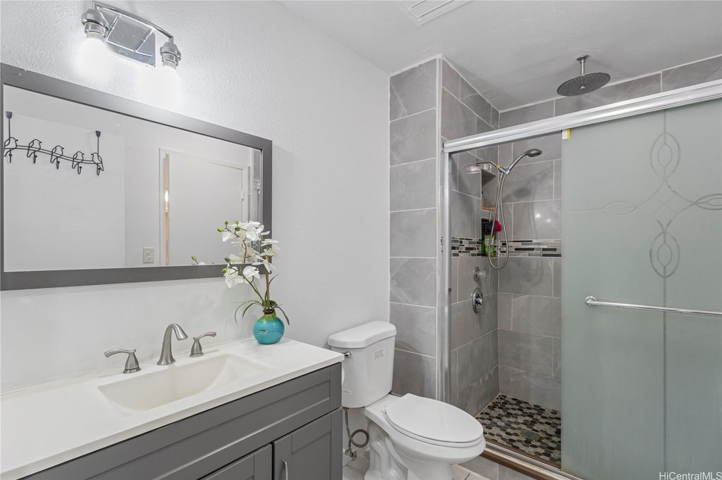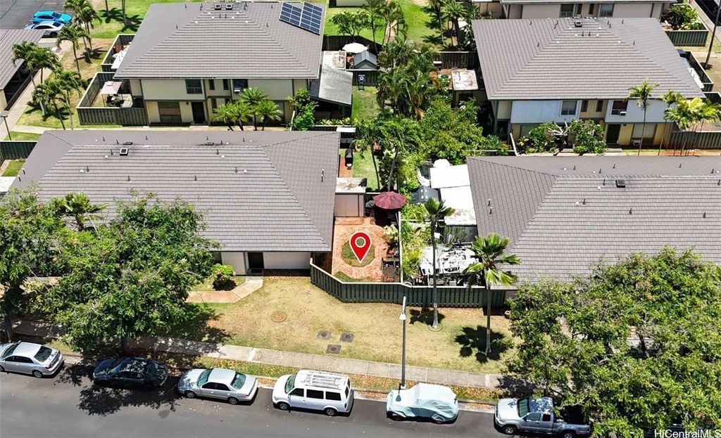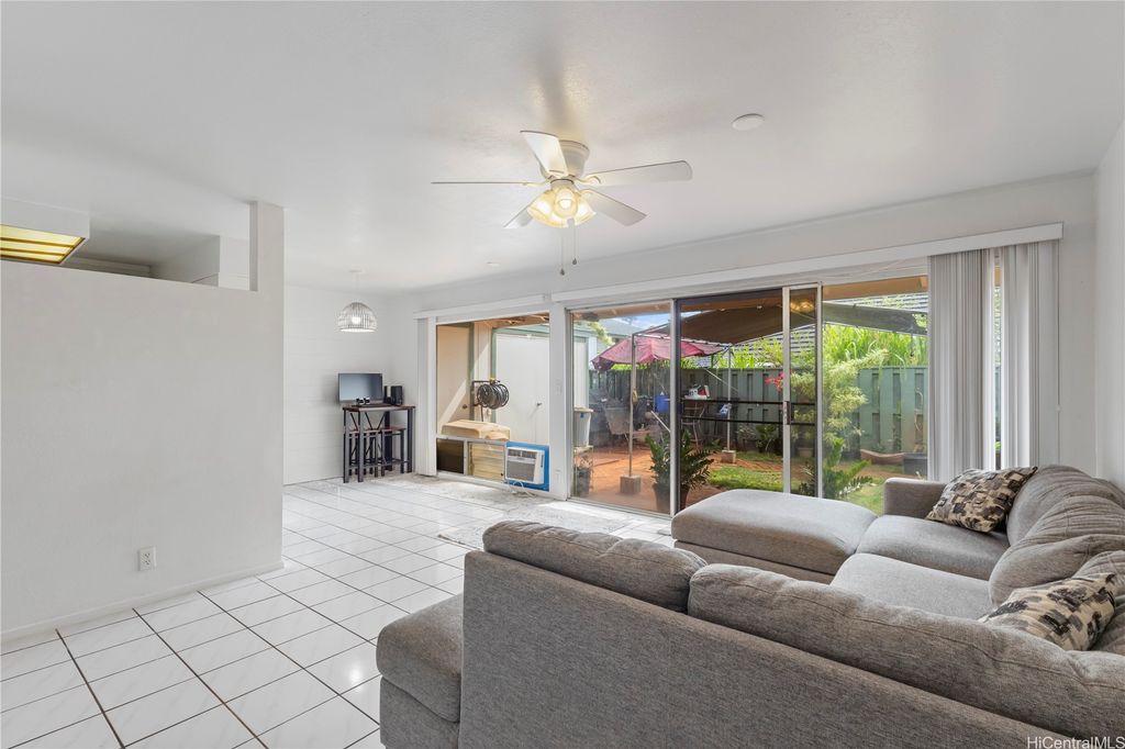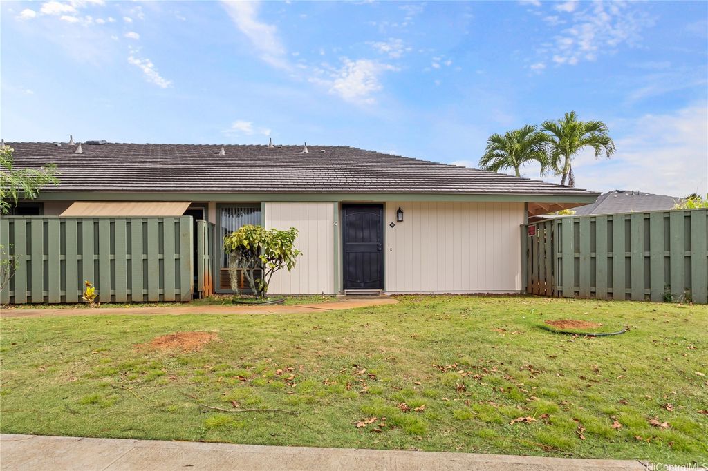 Welcome to modern living in the heart of Waipio! This beautifully renovated 2-bedroom, 1-bath corner townhome is truly move-in ready and designed for comfort. Step inside to find stylish tile flooring, sleek countertops, and upgraded appliances that blend function with contemporary charm. Enjoy seamless indoor-outdoor living with your own fully landscaped yard, perfect for morning coffee, weekend BBQs, or simply unwinding at the end of the day. Two assigned parking stalls, along with ample guest and street parking, ensure convenience for you and your visitors. Ideally located just minutes from Costco, Waikele Premium Outlets, grocery stores, and quick freeway access, this home puts shopping, dining, and commuting right at your doorstep. Combining comfort, style, and convenience, this Waipio gem has it all!