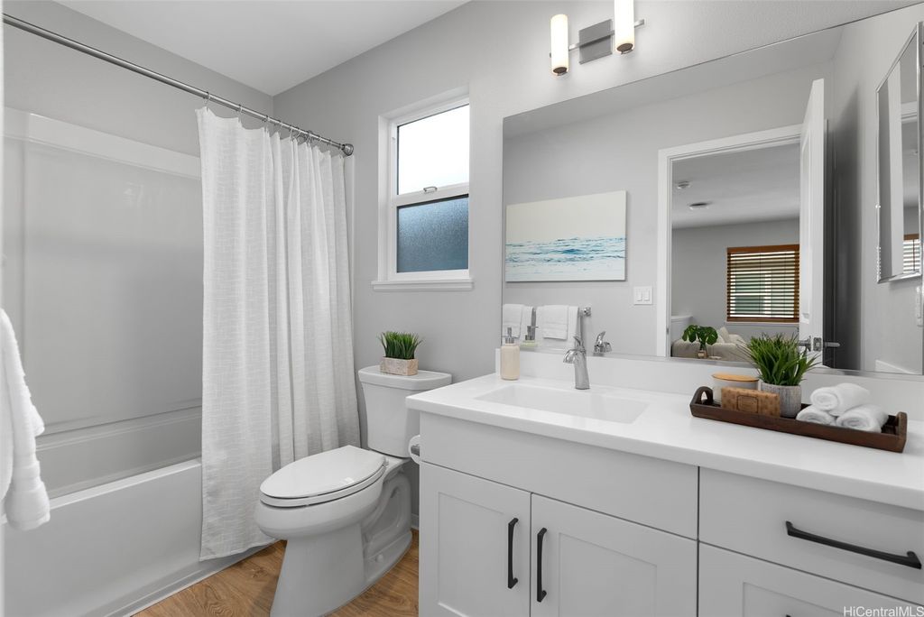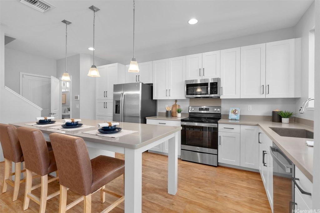 Welcome home to this beautifully maintained 3-bedroom, 2.5-bath residence in Ewa by Gentry's desirable NorthPark community. Built in 2021, this modern home offers an open-concept layout with bright living spaces, a stylish kitchen, and a private upstairs bedroom level. Enjoy the convenience of central A/C, and an attached 2-car garage. NorthPark features well-kept common areas and a friendly neighborhood atmosphere just minutes from Ka Makana Ali"˜i, Wai Kai, golf courses, beaches, and schools. Experience comfortable island living in one of Ewa Beach's newest and most sought-after communities"”schedule your showing today! VA assumable loan available at a 4% interest rate.