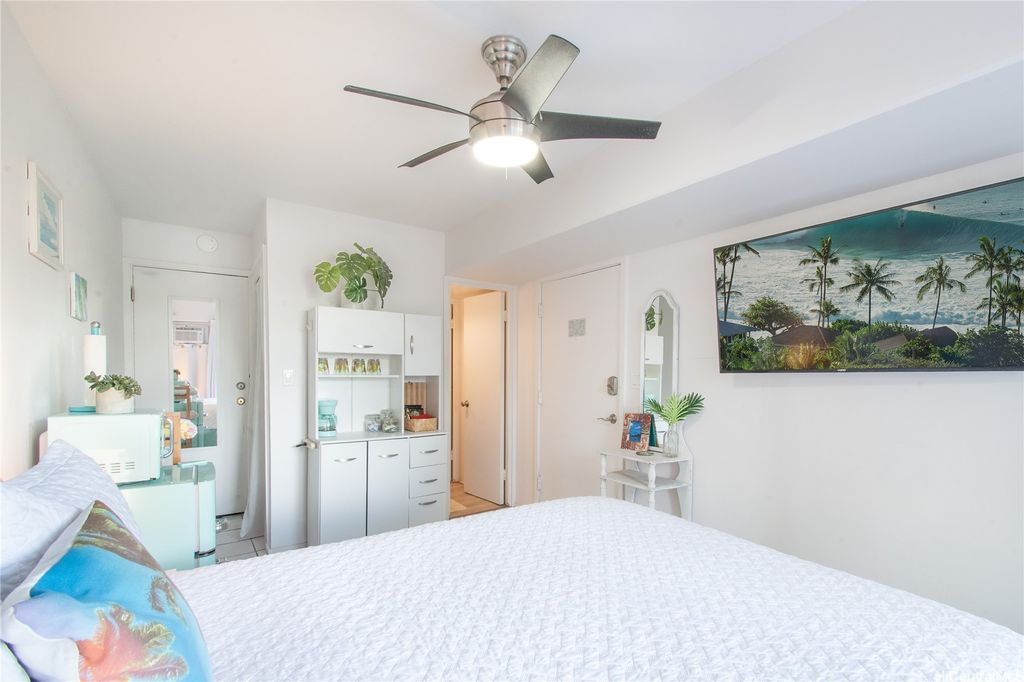 DID YOU KNOW YOU COULD LIVE AND INVEST IN WAIKIKI ALL AT THE SAME PROPERTY. This stunning corner unit offers amazing cross ventilation and bedrooms positioned on the cool, quiet side facing the Ala Wai with beautiful mountain views from your private lanai. What makes this property sooooo special? TWO SEPARATE HALL ENTRIES allow you to configure as a spacious 2-bedroom/2-bath OR split into a 1-bedroom plus studio for maximum rental income potential! UPDATES include new granite countertops, stainless steel sink and faucet, modern kitchen cupboards with range hood, new electrical fixtures, ceiling fans, LED switches, and GFCIs. Brand new luxury vinyl flooring just installed in living room and bedroom creates a fresh, contemporary feel throughout. UNBEATABLE LOCATION puts you walking distance to Ala Moana Beach Park, Magic Island, prime surf spots, world-class Ala Moana Shopping Center, and Waikiki's vibrant dining and nightlife scene. Plus, you'll have one of the building's BEST parking stalls - spacious and easily accessible at lobby level! Perfect for savvy investors seeking rental income potential or owner-occupants wanting flexibility in their living space!