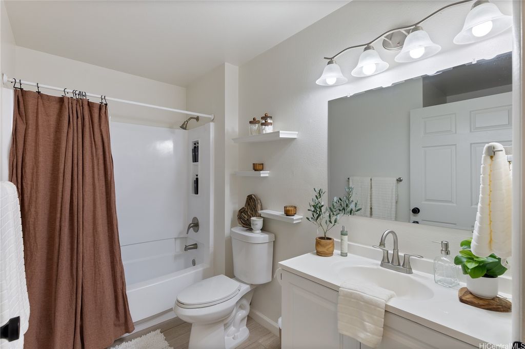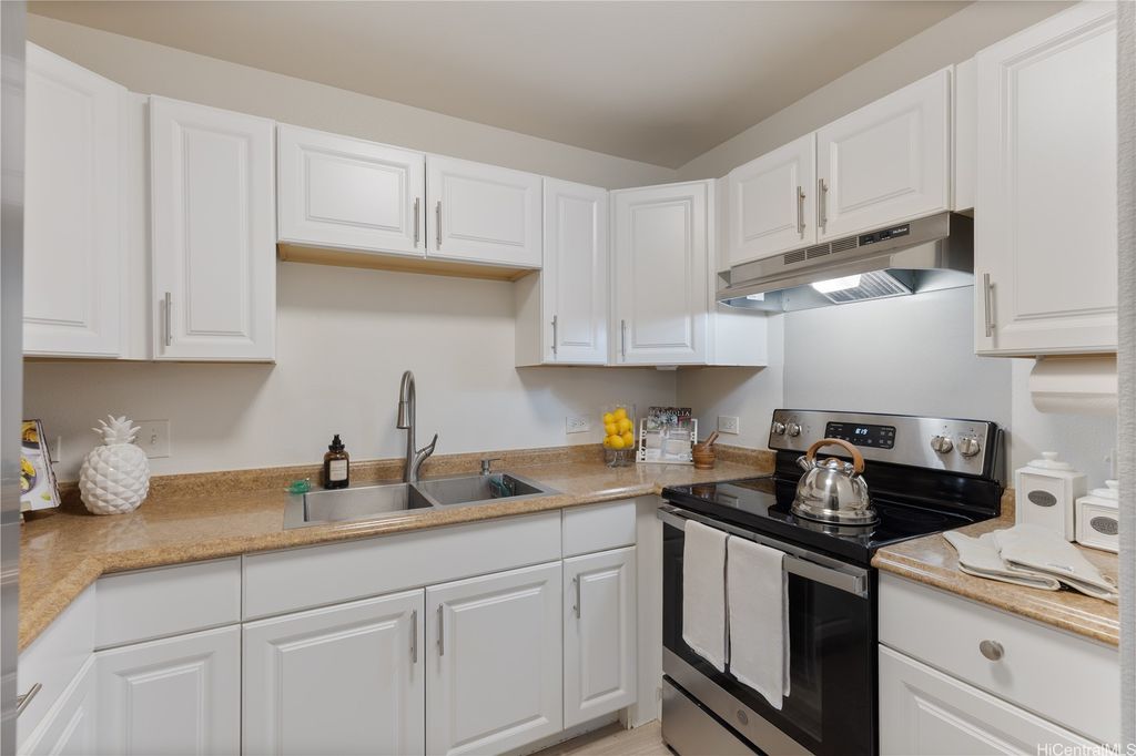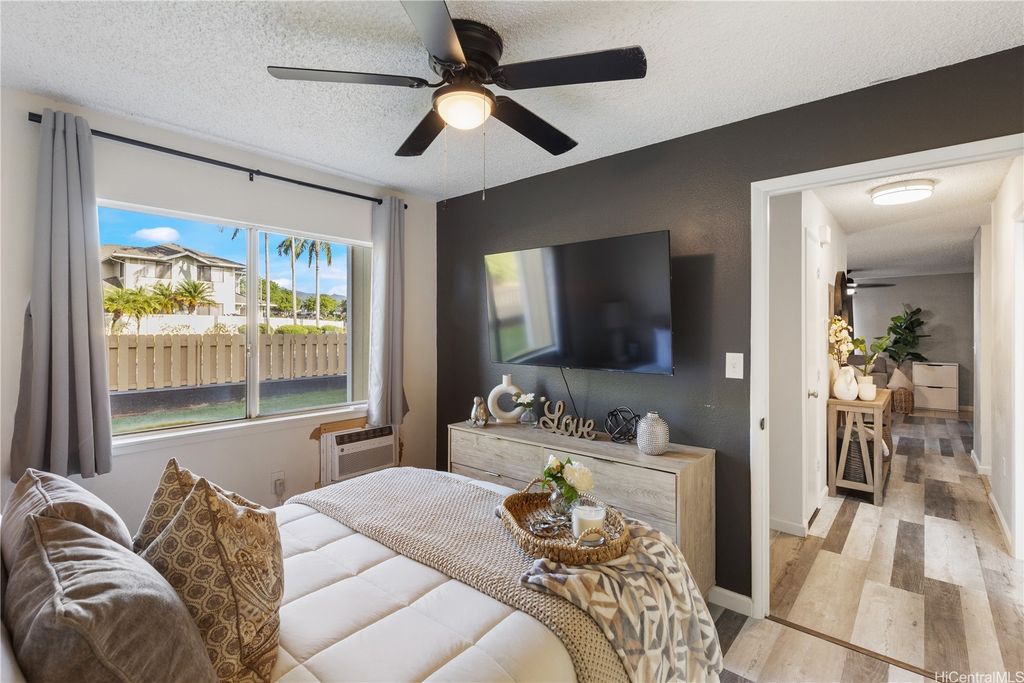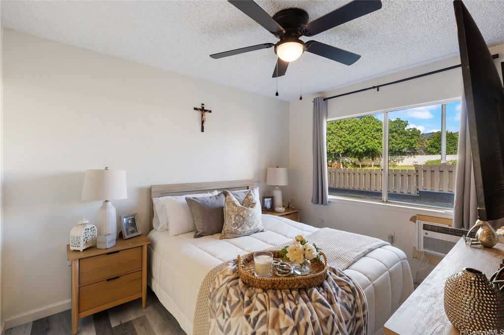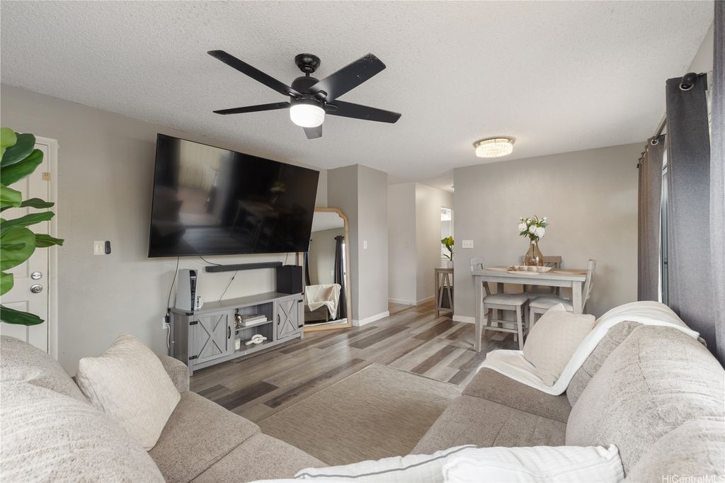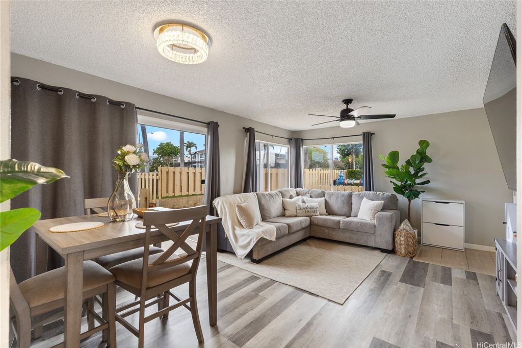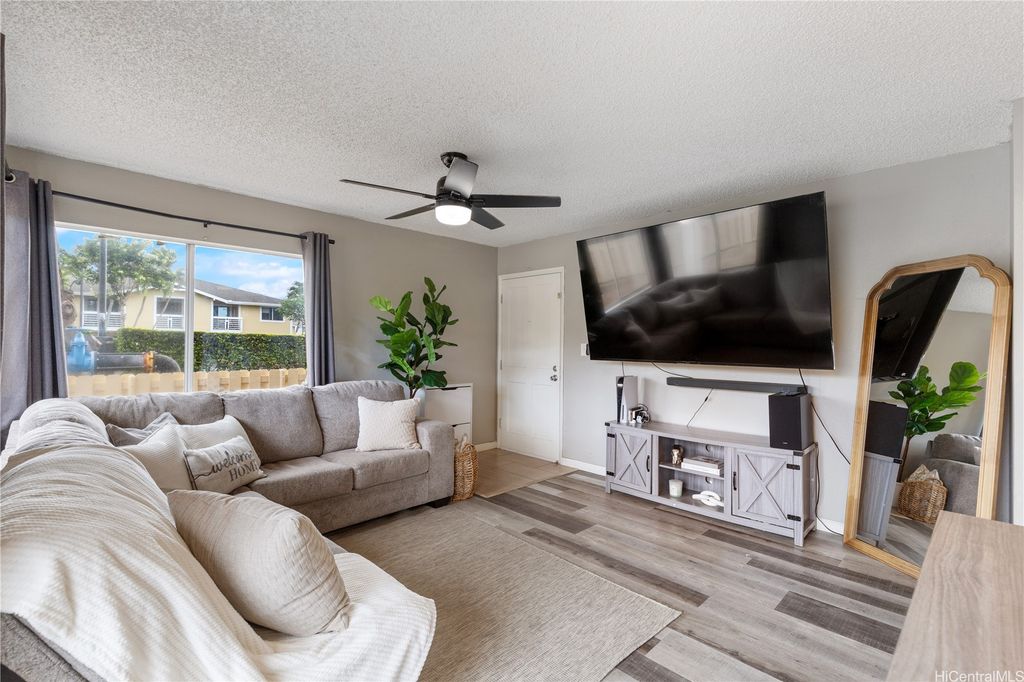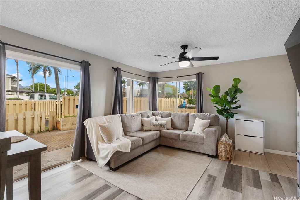 Corner Ground-Floor Unit in Gated Community - Kulana Knolls 2 Beautifully maintained 2-bedroom, 2-bathroom corner unit located on the ground floor of the desirable gated community, Kulana Knolls. This residence features an open-concept layout with gray, white-wash laminate wood flooring throughout, creating a modern and cohesive aesthetic. The spacious living area flows seamlessly into a private courtyard"”an ideal setting for outdoor entertaining. The kitchen is in excellent condition, showcasing white shaker cabinets, beige countertops, and an open layout that enhances connectivity to the living and outdoor spaces. Conveniently situated near a variety of shopping centers, restaurants, cafés, and retail stores, this home offers both comfort and accessibility in a sought-after location