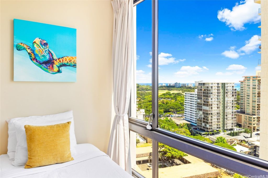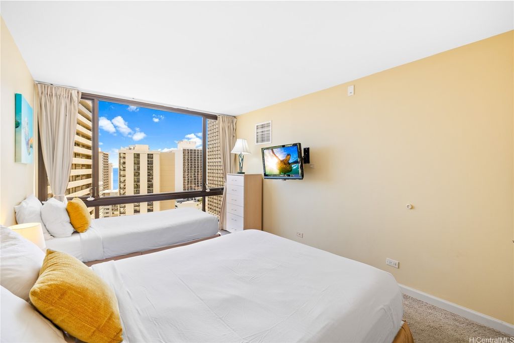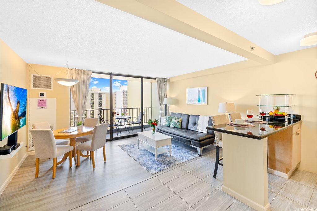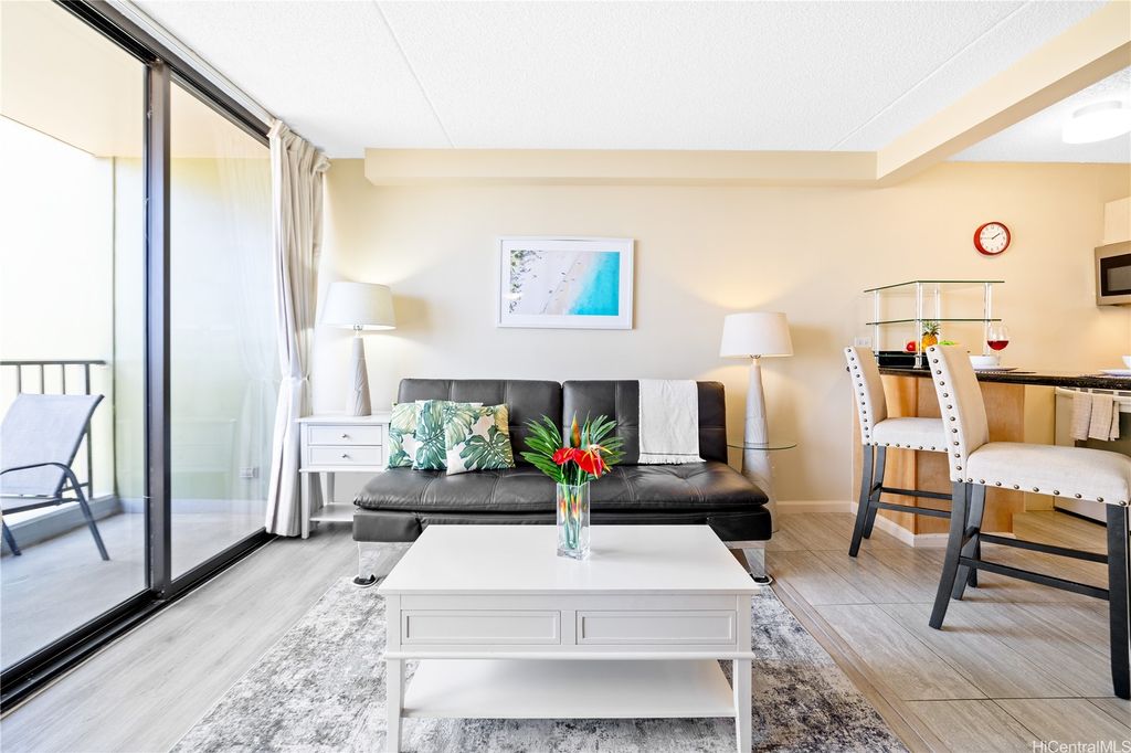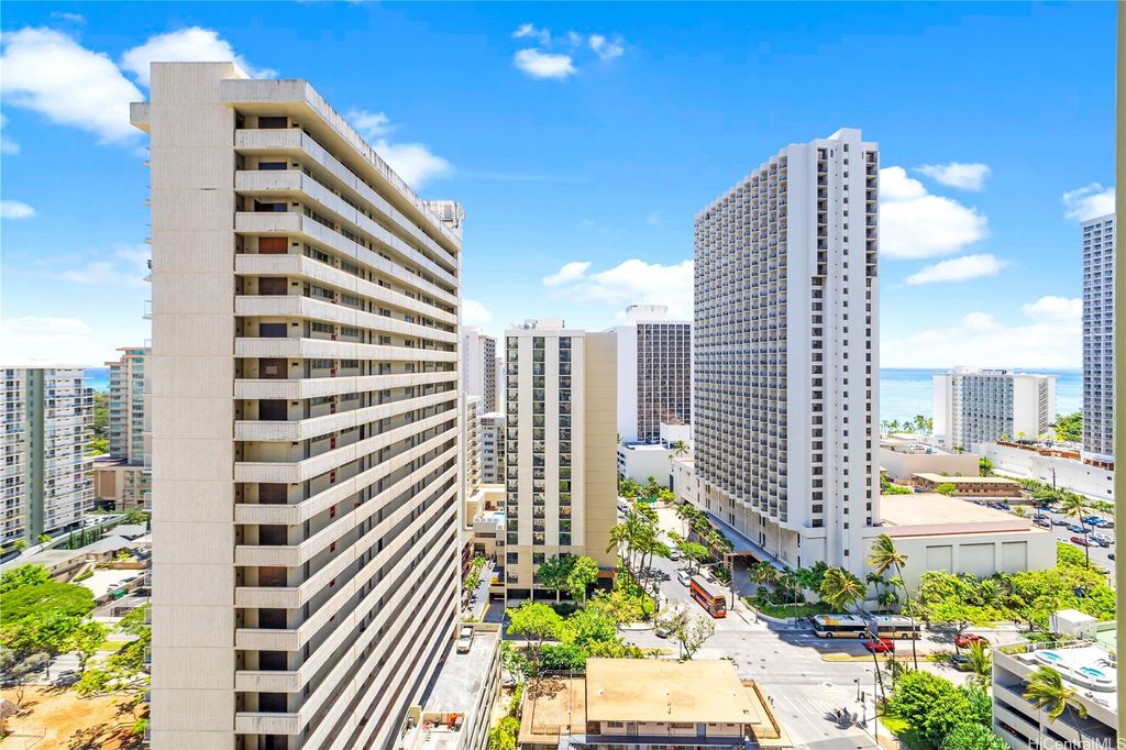 SELLER TO PAY OFF THE REMAINING BALANCE OF SPECIAL ASSESSMENT AT CLOSING! Fully furnished 1-bedroom, 1-bath condo in the heart of Waikiki with an unassigned covered parking stall. Enjoy panoramic views of the ocean and Diamond Head, and the city from your private lanai. This move-in-ready unit has been recently updated with new flooring, upgraded furnishings, and a brand-new AC fan coil system installed by the AOAO in October 2024. Features include granite countertops, essential appliances, and a fully equipped kitchen. Currently managed by Midway Vacations, the property is actively generating rental income and includes a legal NUC permit, making it short-term rental ready (Airbnb-friendly). Building amenities include a swimming pool, BBQ area, recreation deck, community laundry, 24-hour security, and an on-site minimart.