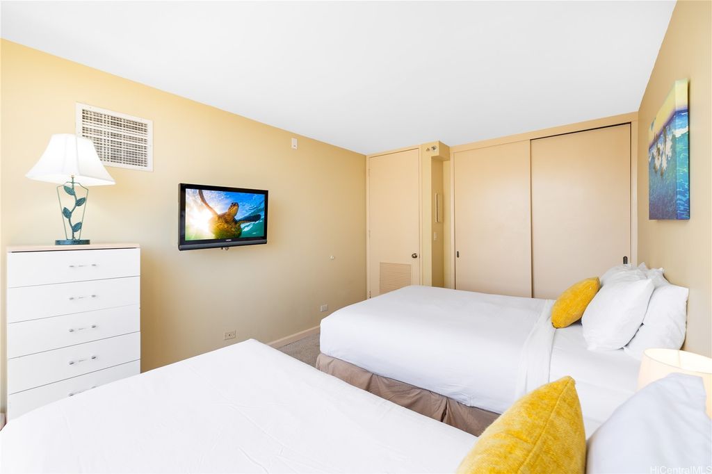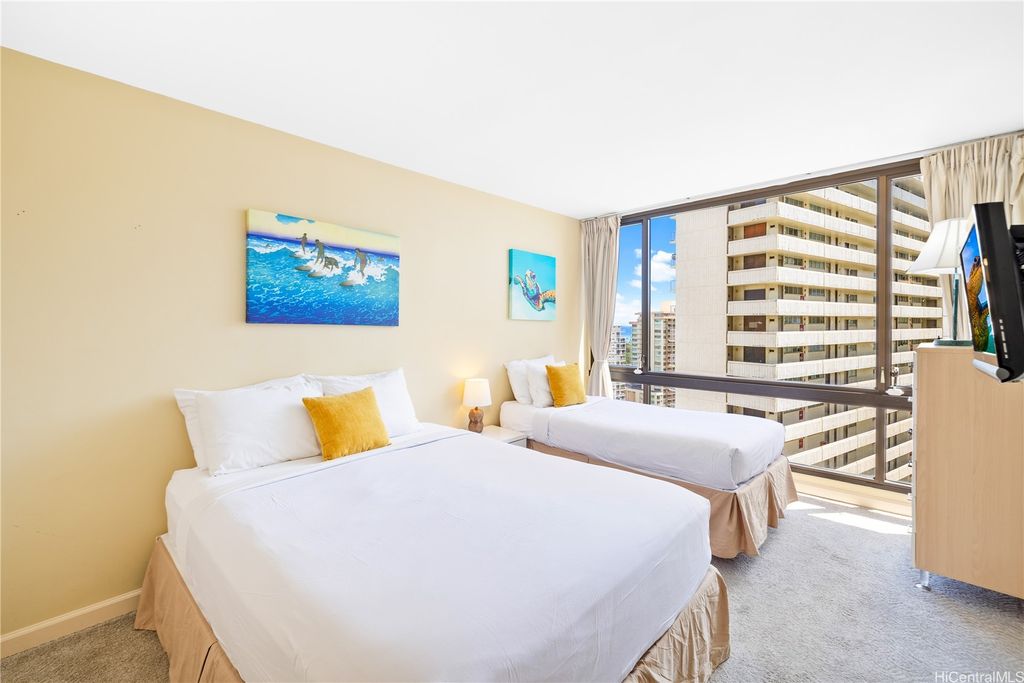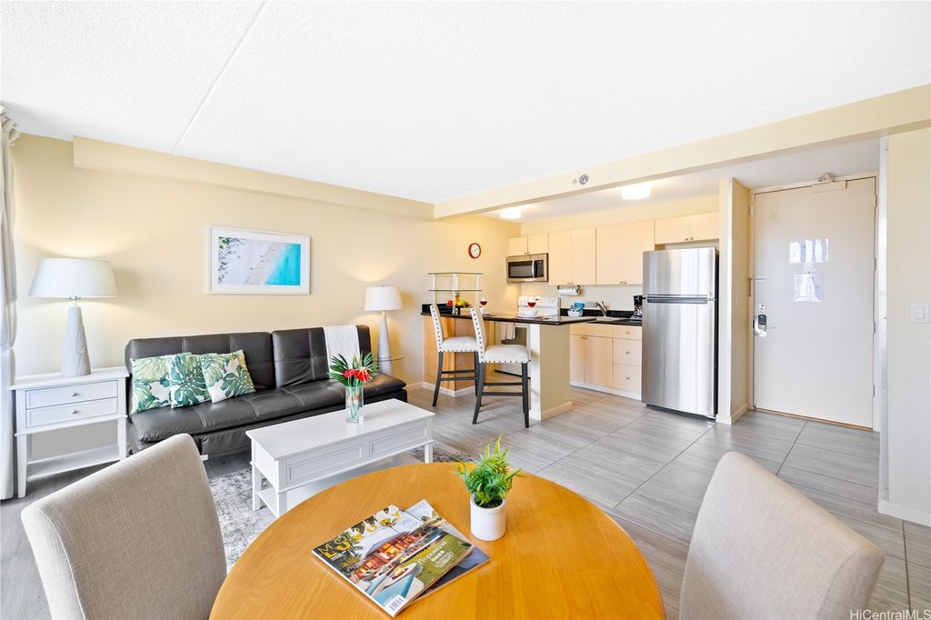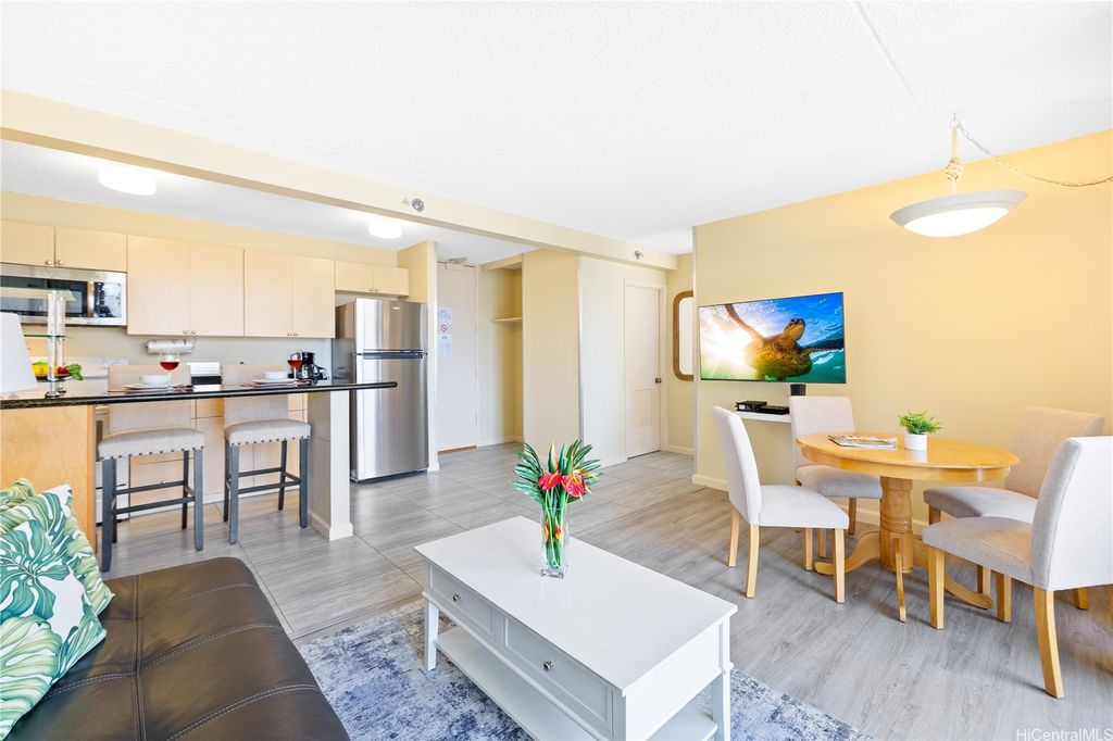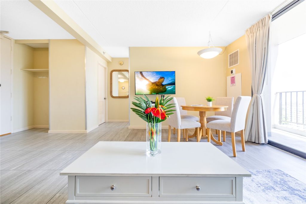 SELLER TO PAY OFF THE REMAINING BALANCE OF SPECIAL ASSESSMENT AT CLOSING! Fully furnished 1-bedroom, 1-bath condo in the heart of Waikiki with an unassigned covered parking stall. Enjoy panoramic views of the ocean and Diamond Head, and the city from your private lanai. This move-in-ready unit has been recently updated with new flooring, upgraded furnishings, and a brand-new AC fan coil system installed by the AOAO in October 2024. Features include granite countertops, essential appliances, and a fully equipped kitchen. Currently managed by Midway Vacations, the property is actively generating rental income and includes a legal NUC permit, making it short-term rental ready (Airbnb-friendly). Building amenities include a swimming pool, BBQ area, recreation deck, community laundry, 24-hour security, and an on-site minimart.