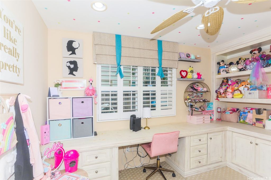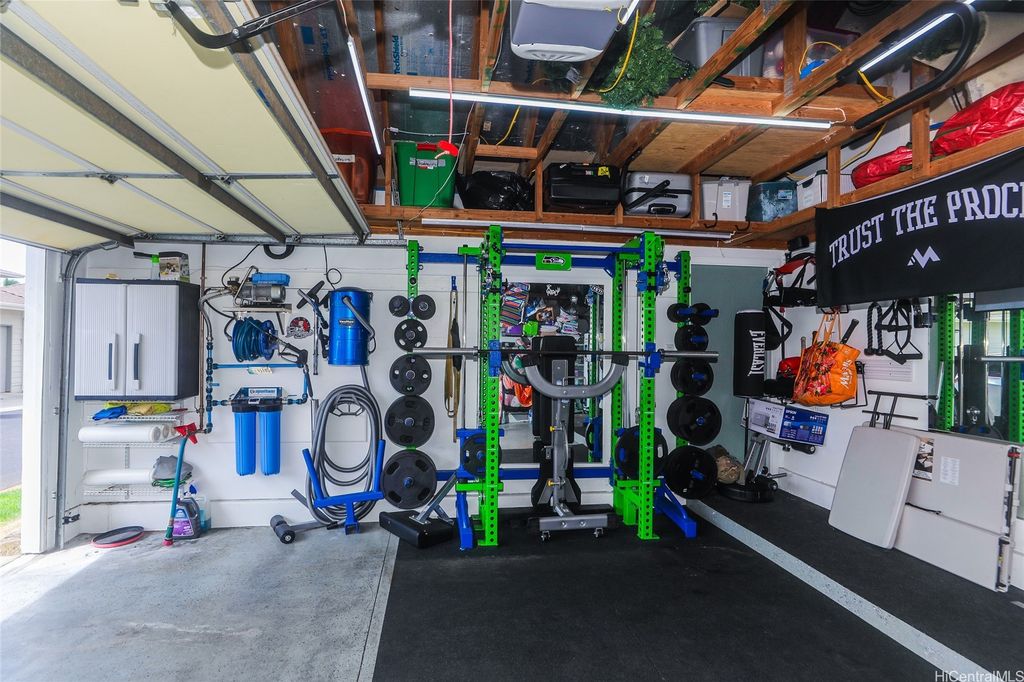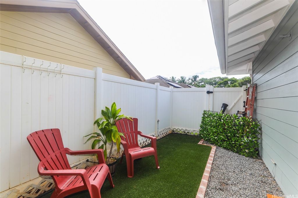 VA ASSUMABLE Available To All Buyers!!! LOW GAP! Experience resort-style living in Kamakana at Hoakalei! This beautifully kept single-level home offers 3 bedrooms, 2 full baths, and a 2-car garage within a light-filled, open layout. Enjoy energy savings with 20 owned solar panels, plantation shutters, and hickory engineered hardwood floors throughout. Every room features ceiling fans with lights. A stylish built-in entertainment center with surround sound and home office adds elegance and utility, and the freshly painted exterior enhances curb appeal. Recent upgrades include a smart irrigation system with Wi-Fi control, a covered concrete BBQ area with ambient LED lighting, timer-controlled LED landscape lighting, and a solar-powered battery-backup sunscreen on the lanai"”perfect for outdoor comfort. The garage has built-in shelving. A transferable Terminix Bait Barrier warranty provides added peace of mind. The HOA covers high-speed internet, home phone, basic cable TV, and access to the pool, tennis courts, and fitness center. Island living at its best"”garage gym or car-wash setup negotiable for the right offer.